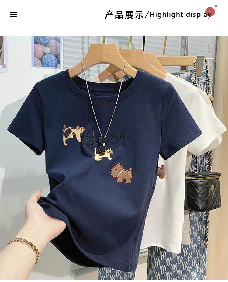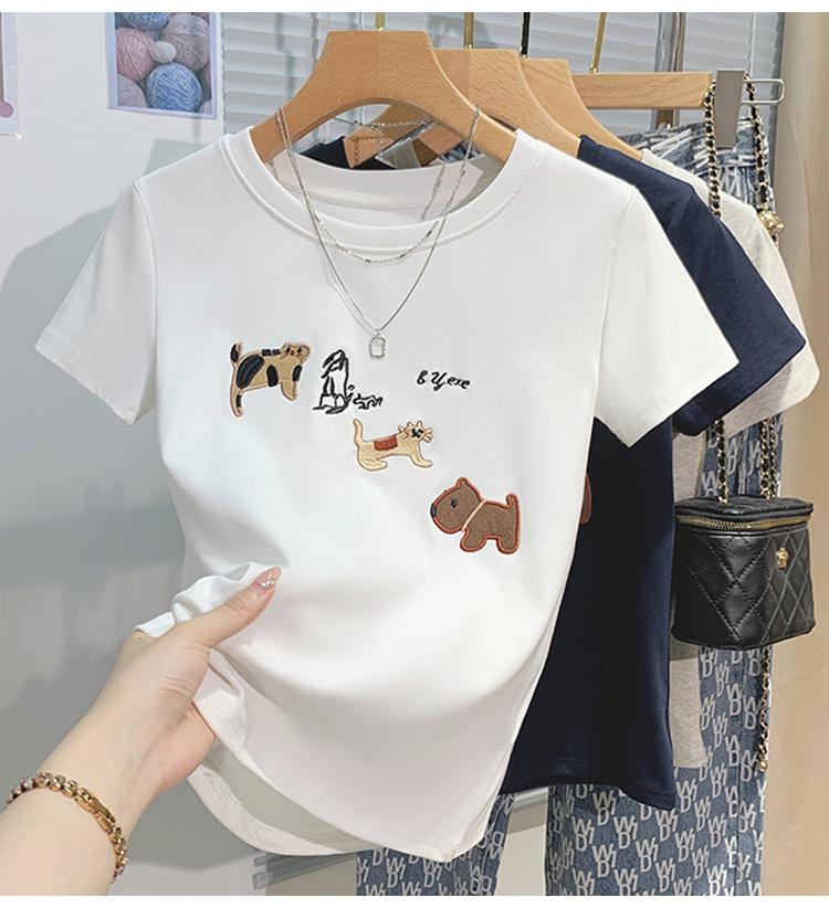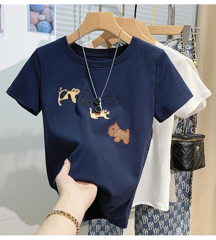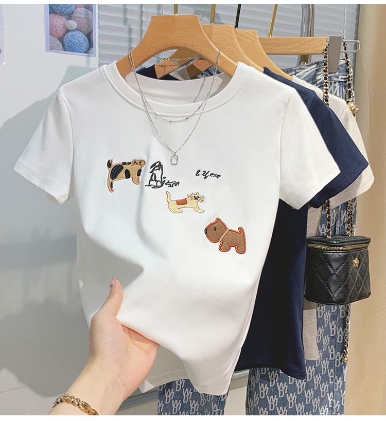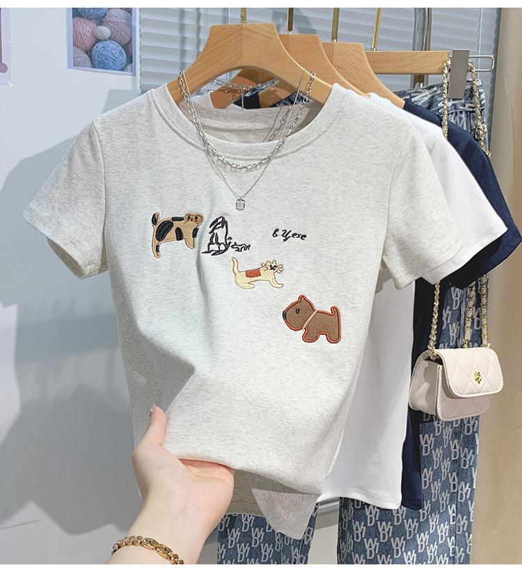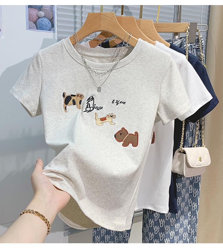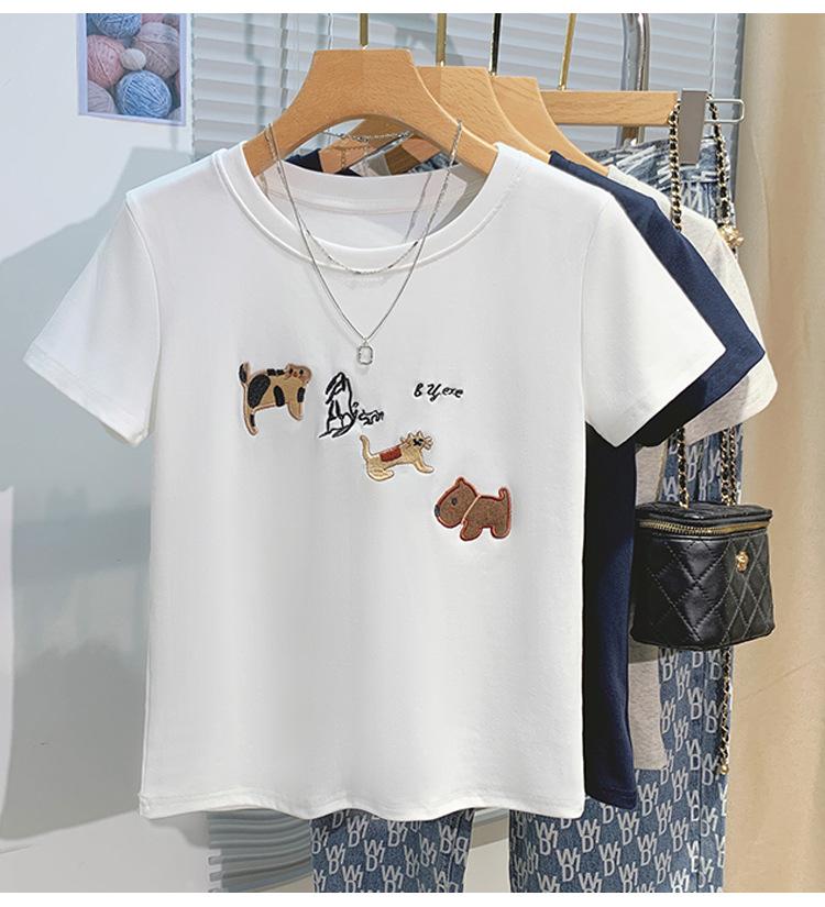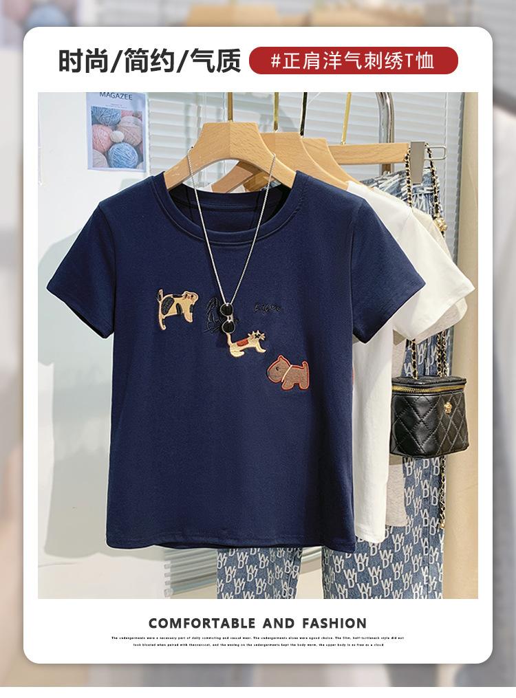 Compre Nova camiseta feminina de manga curta 2025, verão, resistente, bordada, estilo coreano, ombro de estudante, camiseta da moda no atacado no Joom.pro