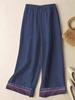 Pingente Bordado Geométrico Calças de Perna Larga Bordadas de Algodão e Linho Verão Feminino Soltas Retas Versátil Cintura Alta Emagrecimento Calças Casuais para Mulheres
