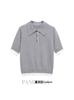 Camisa polo feminina transfronteiriça europeia e americana, nova moda primavera 2025, com costura de malha, gola alta w085 250136