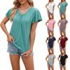 Amazon Cross-border Comércio Exterior Europeu e Americano 2025 Primavera e Verão Nova Camiseta de Cor Sólida Top Feminino Sexy Decote em V Manga Curta