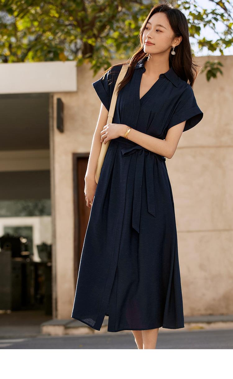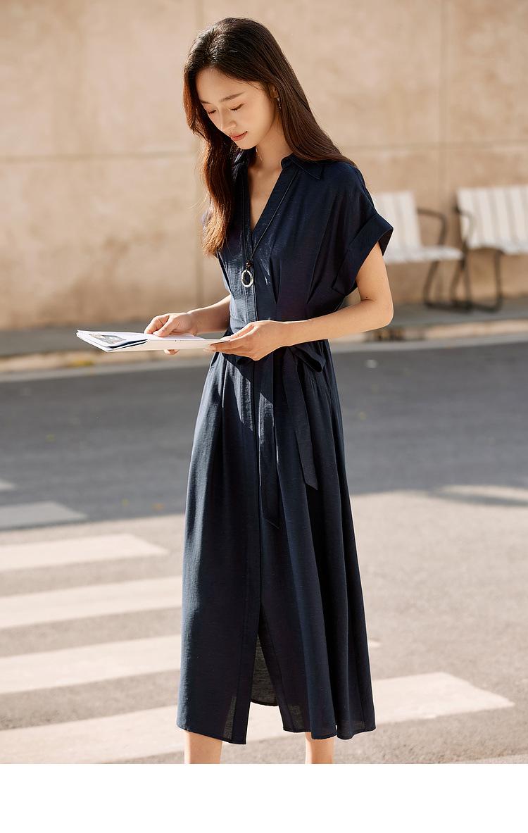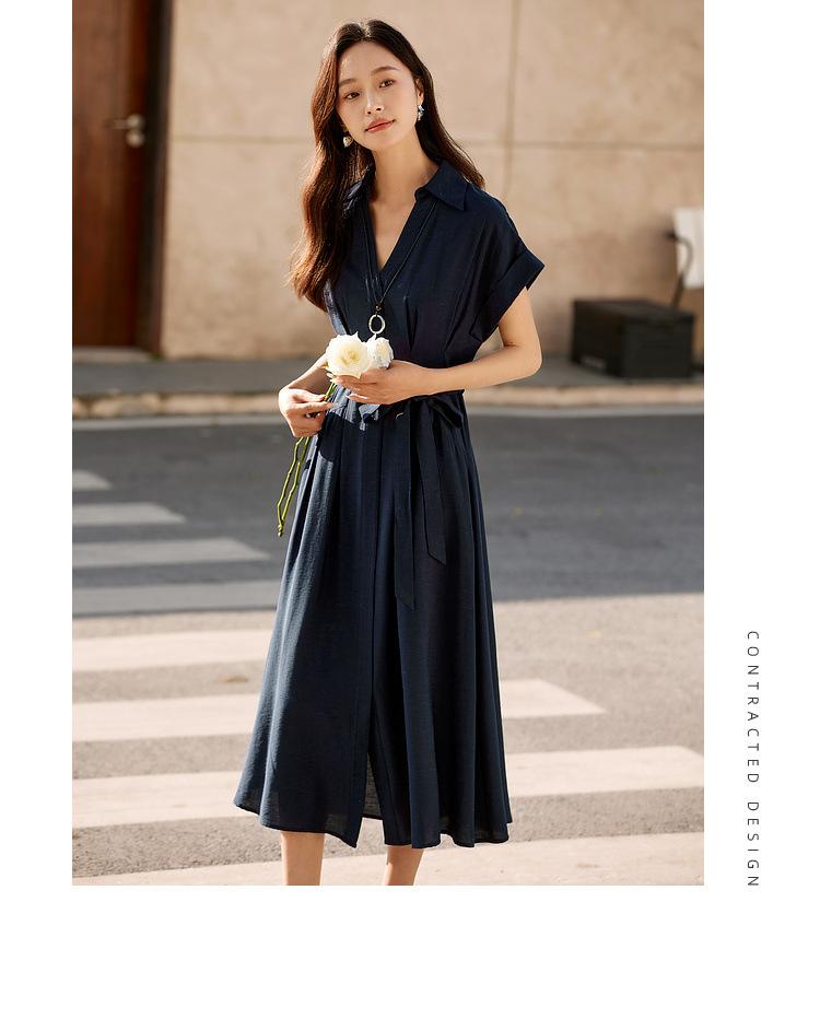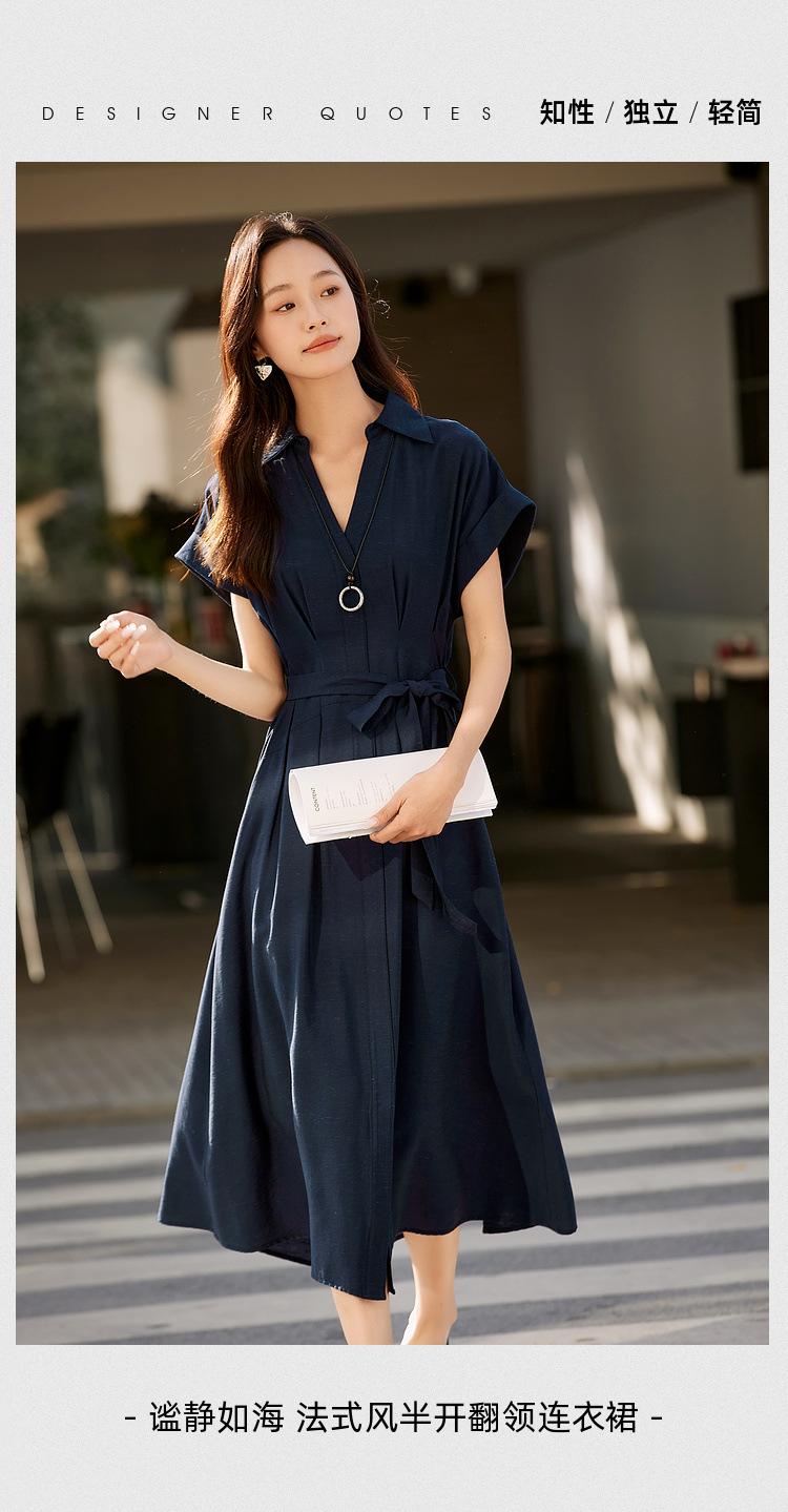 Compre Vestido feminino Zhen Xi, novo estilo francês, decote em V, manga curta, cintura justa, elegante, camisa e saia DQ628 no atacado no Joom.pro