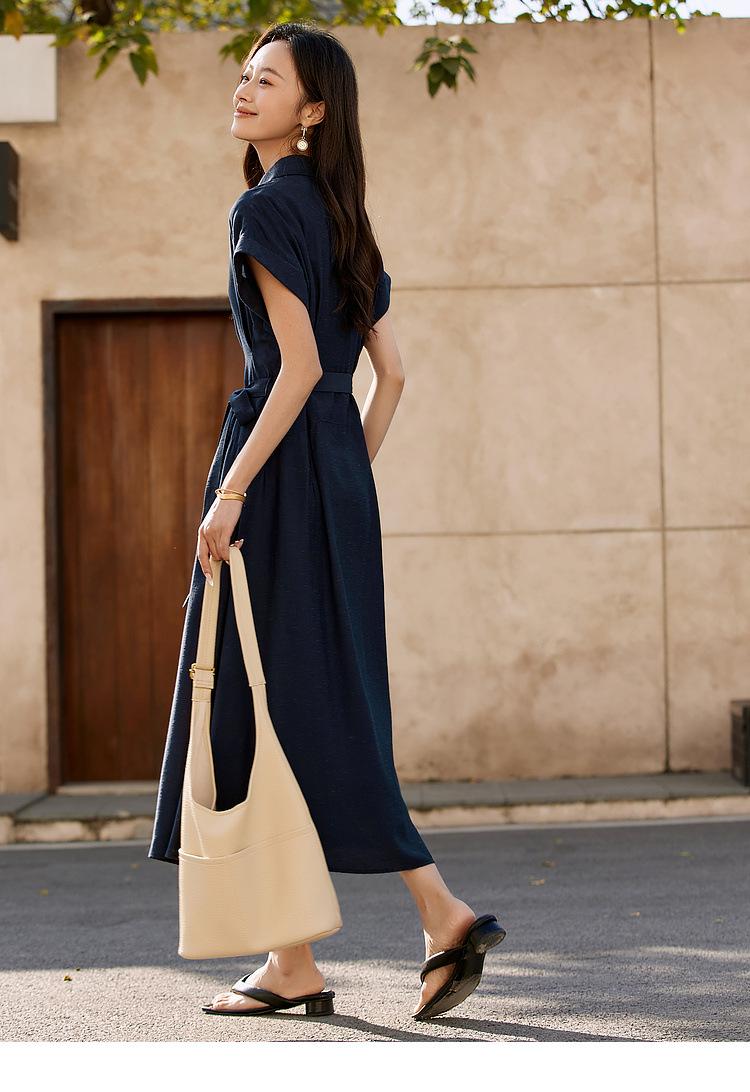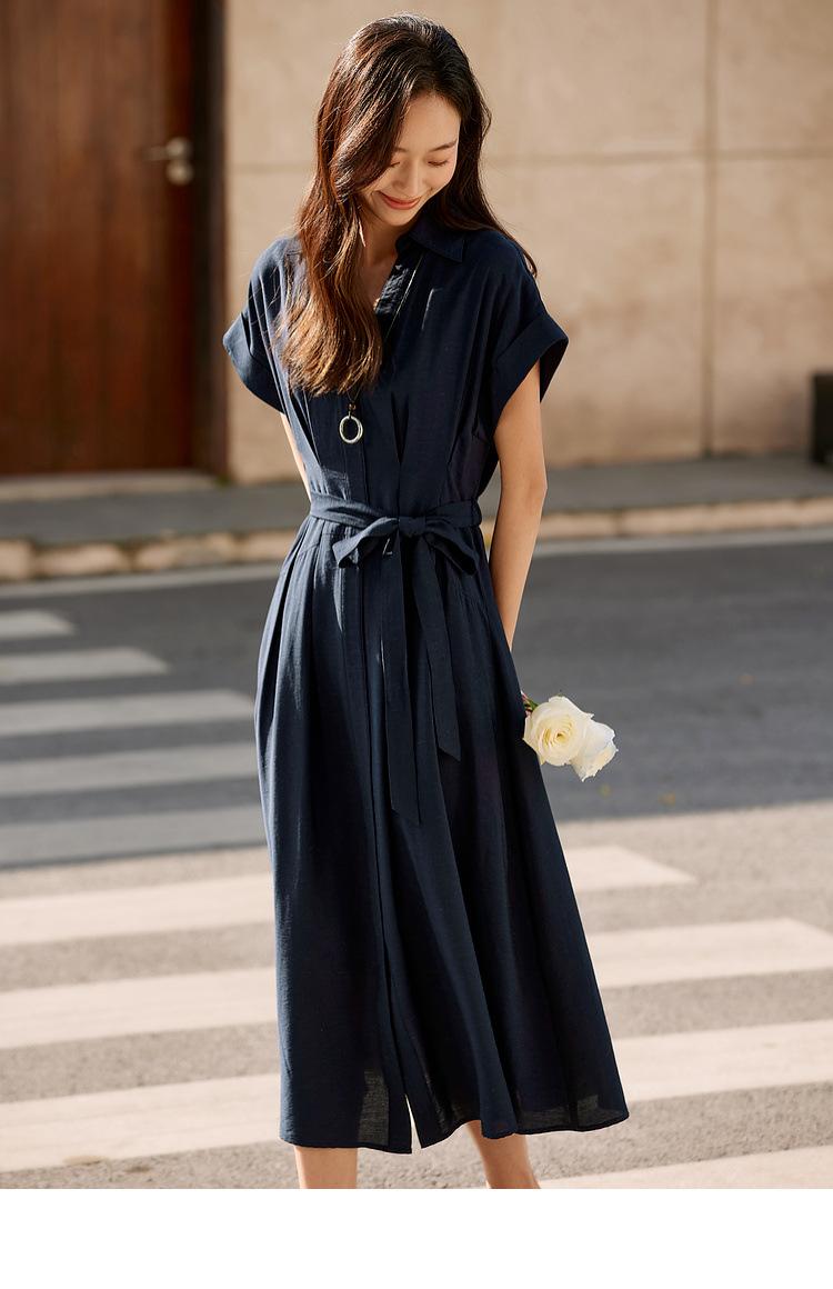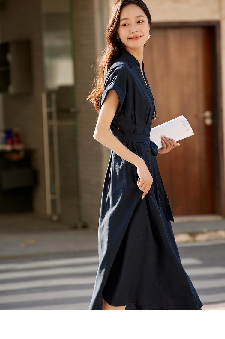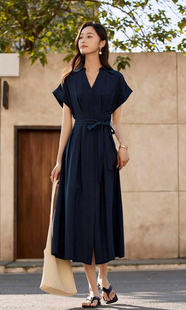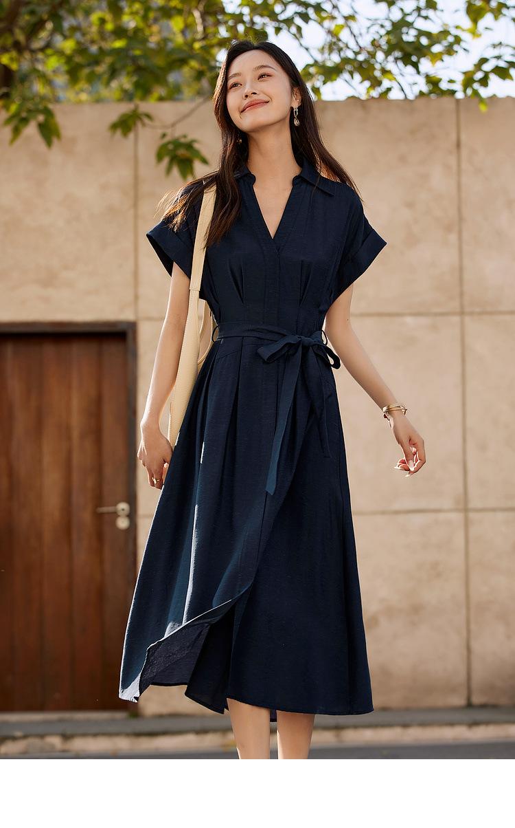 Compre Vestido feminino Zhen Xi, novo estilo francês, decote em V, manga curta, cintura justa, elegante, camisa e saia DQ628 no atacado no Joom.pro