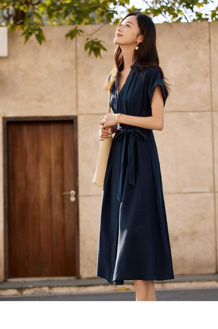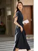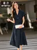 Vestido feminino Zhen Xi, novo estilo francês, decote em V, manga curta, cintura justa, elegante, camisa e saia DQ628