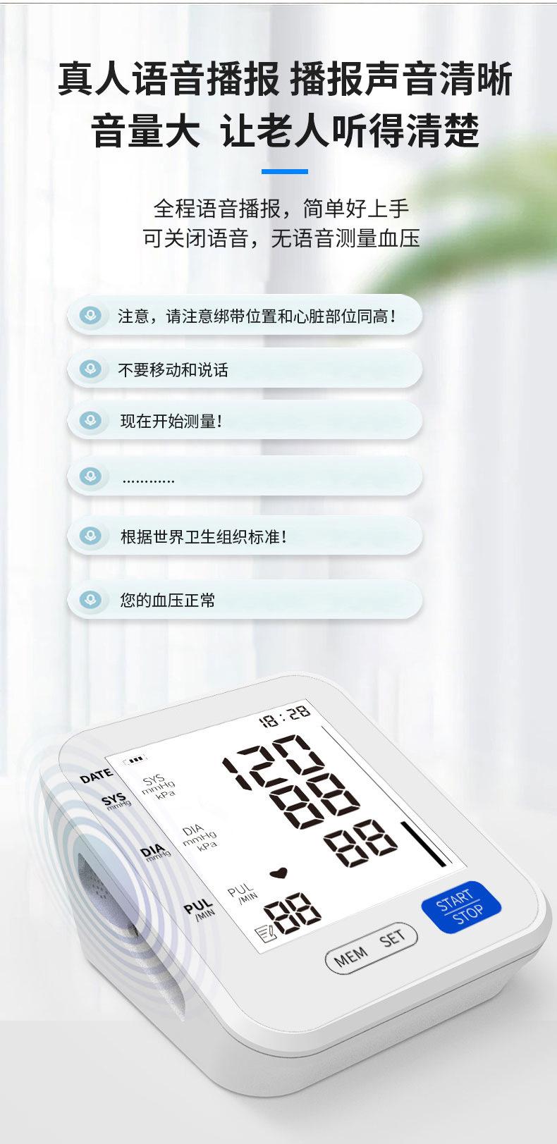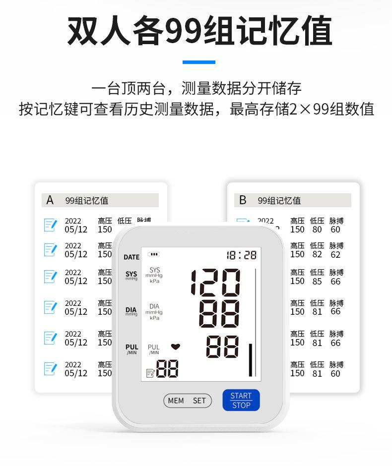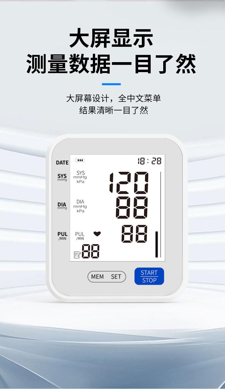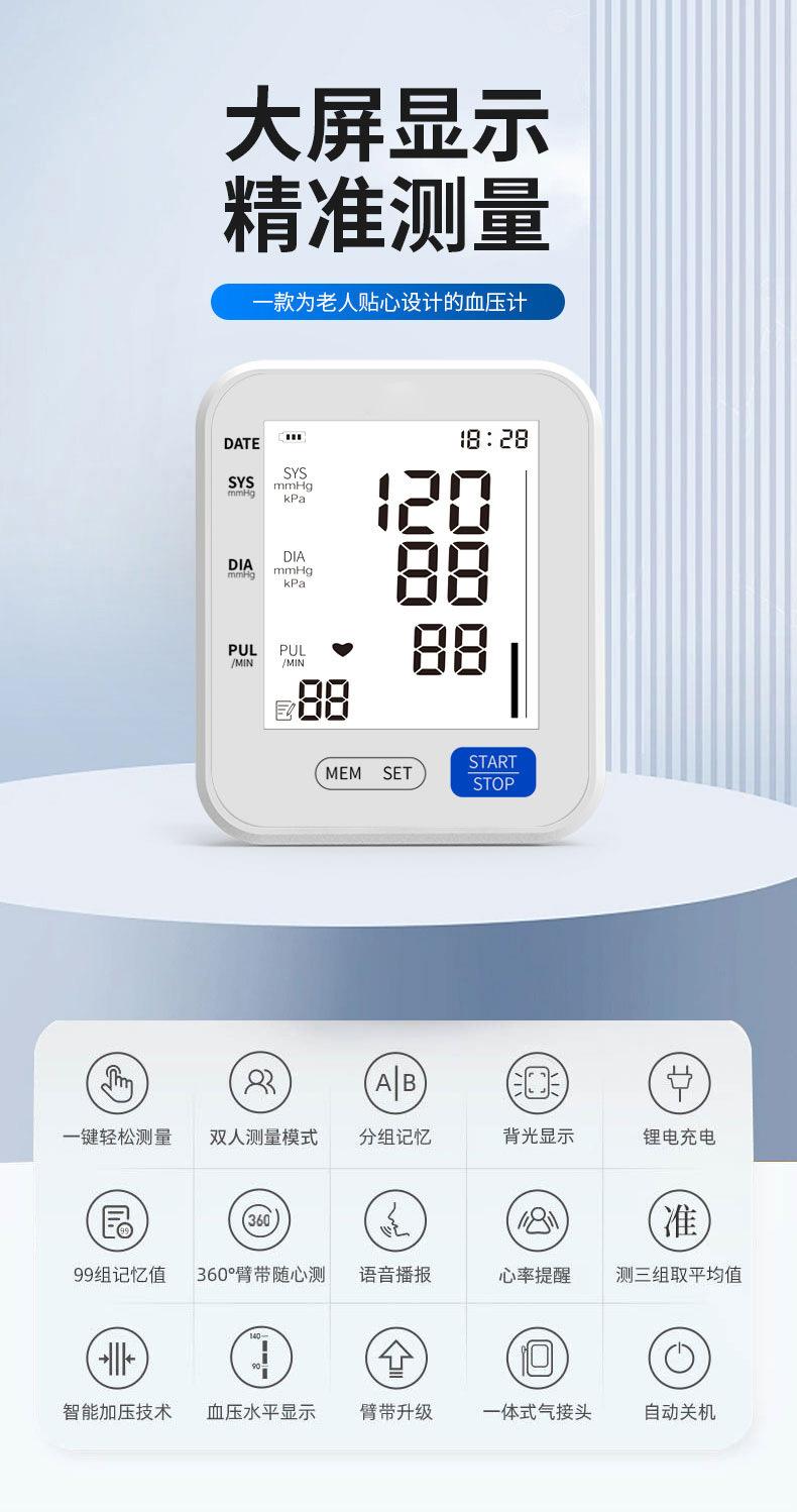 Monitor de Pressão Arterial Inteligente para Casa, Medição com um Clique, Instrumento de Medição de Pressão Arterial de Grau Médico, Monitor Eletrônico de Pressão Arterial de Tela Grande para Comércio Exterior