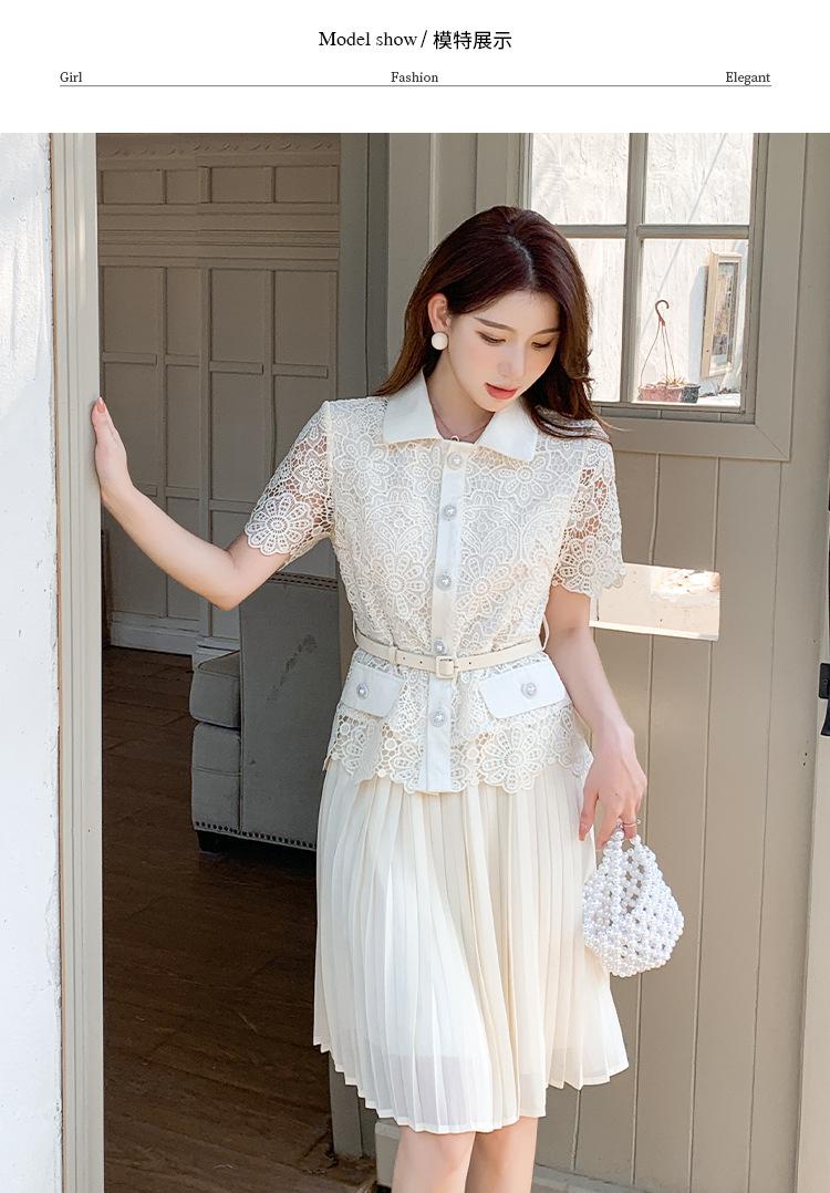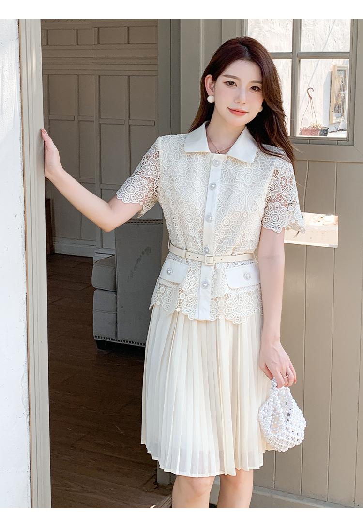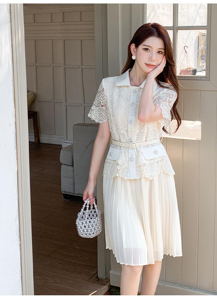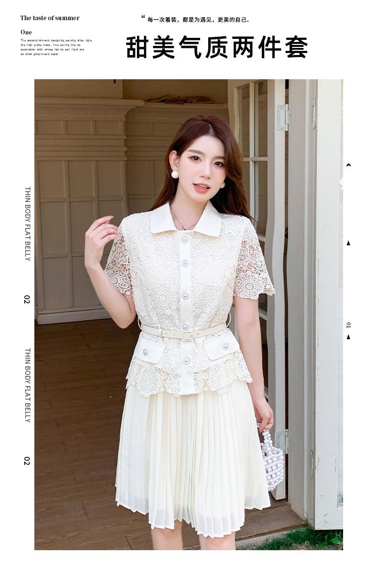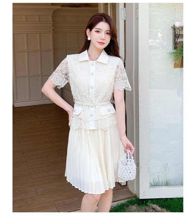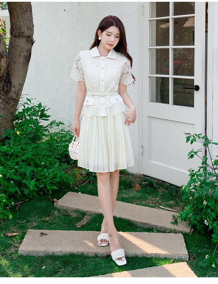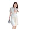Conjunto de duas peças com saia bege e saia plissada, novo conjunto de verão 2023 para mulheres, top de renda de alta qualidade com saia plissada