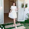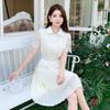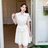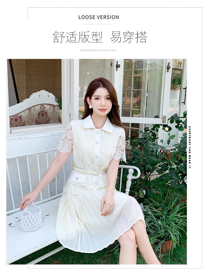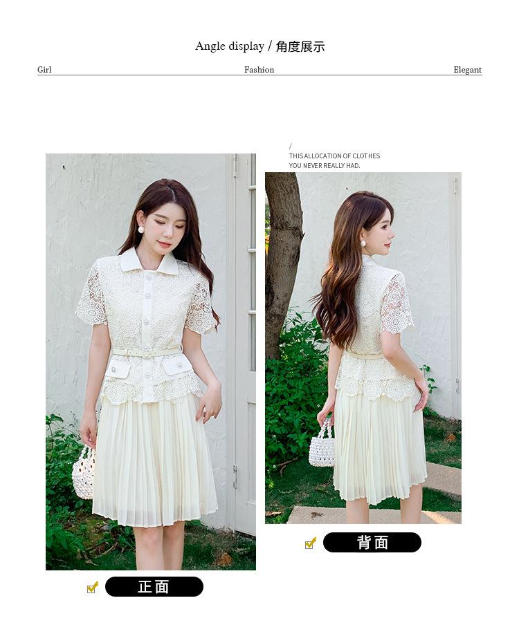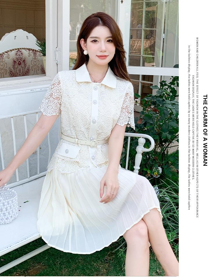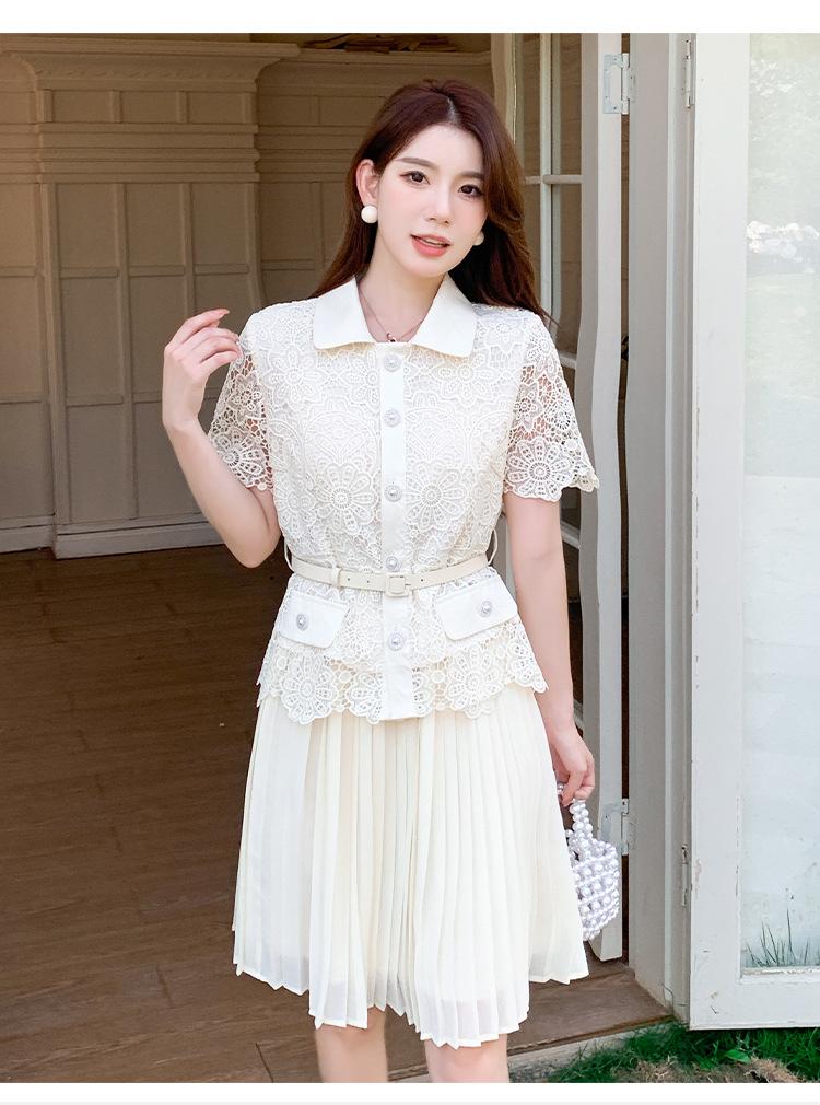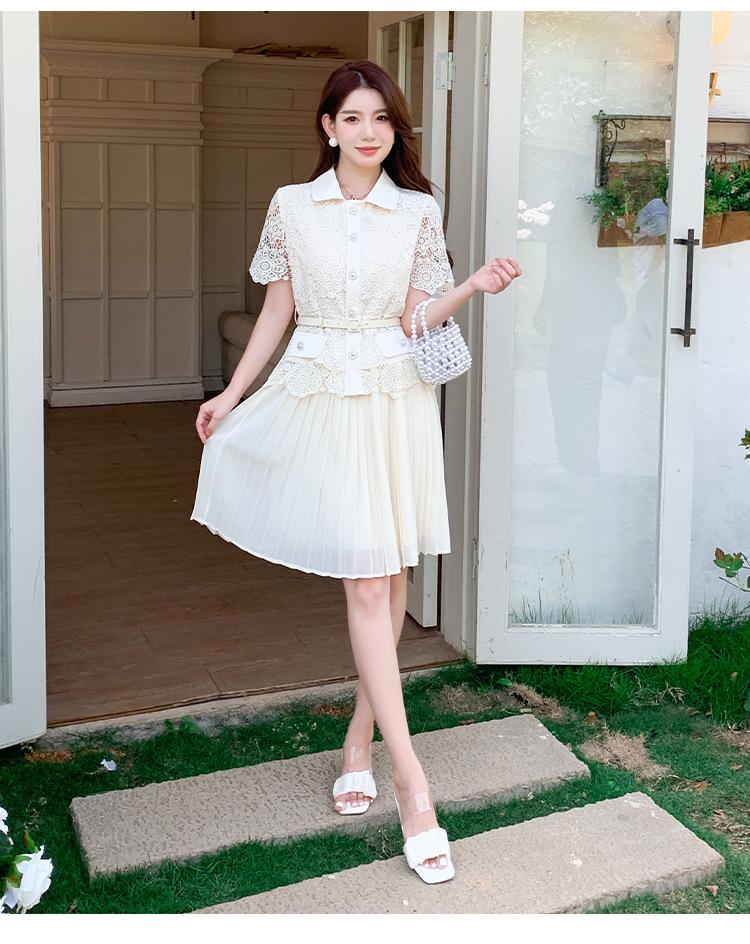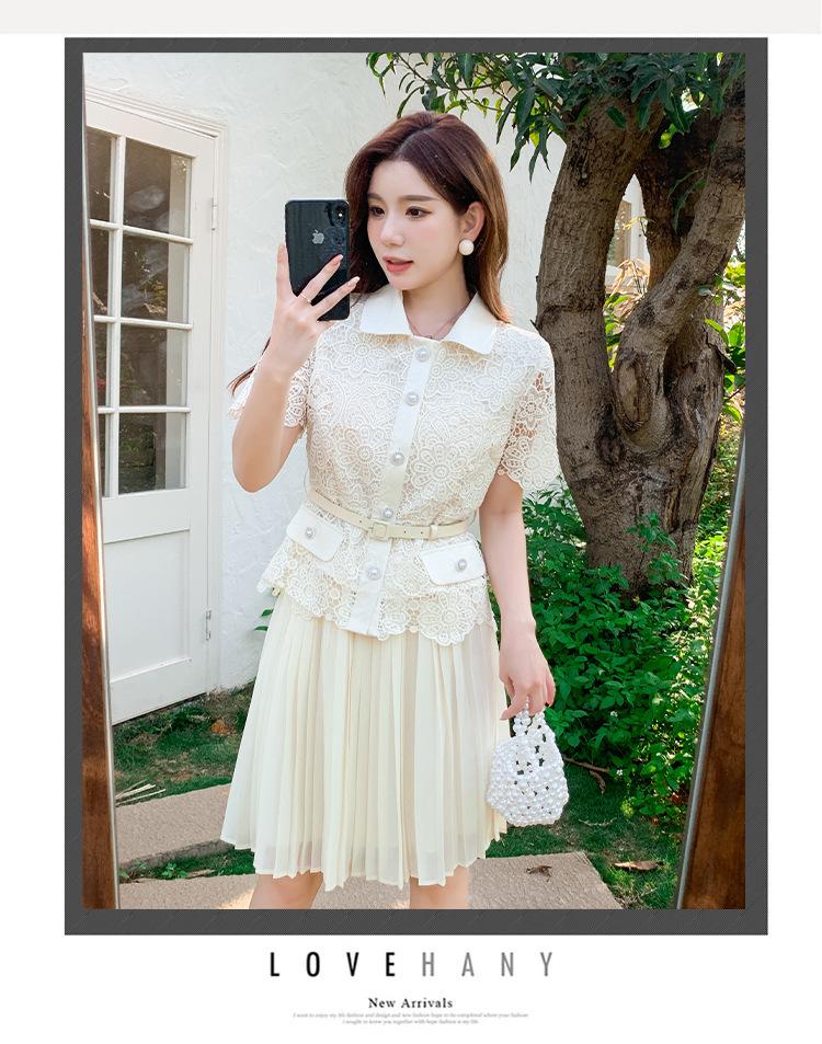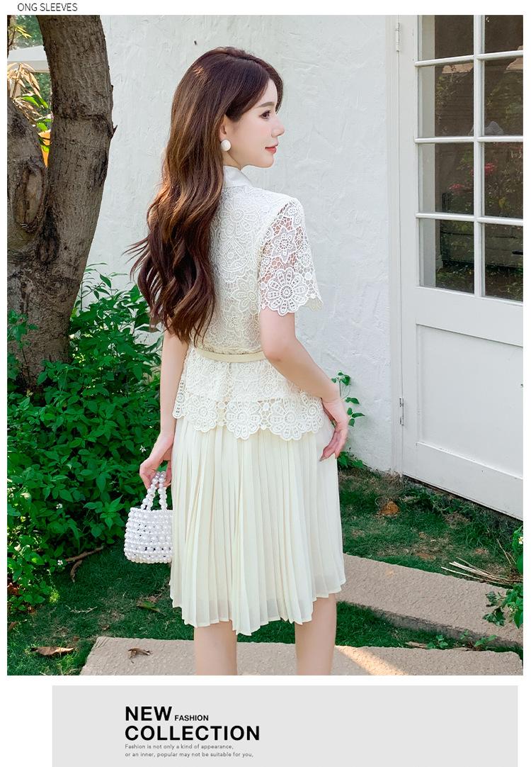 Conjunto de duas peças com saia bege e saia plissada, novo conjunto de verão 2023 para mulheres, top de renda de alta qualidade com saia plissada