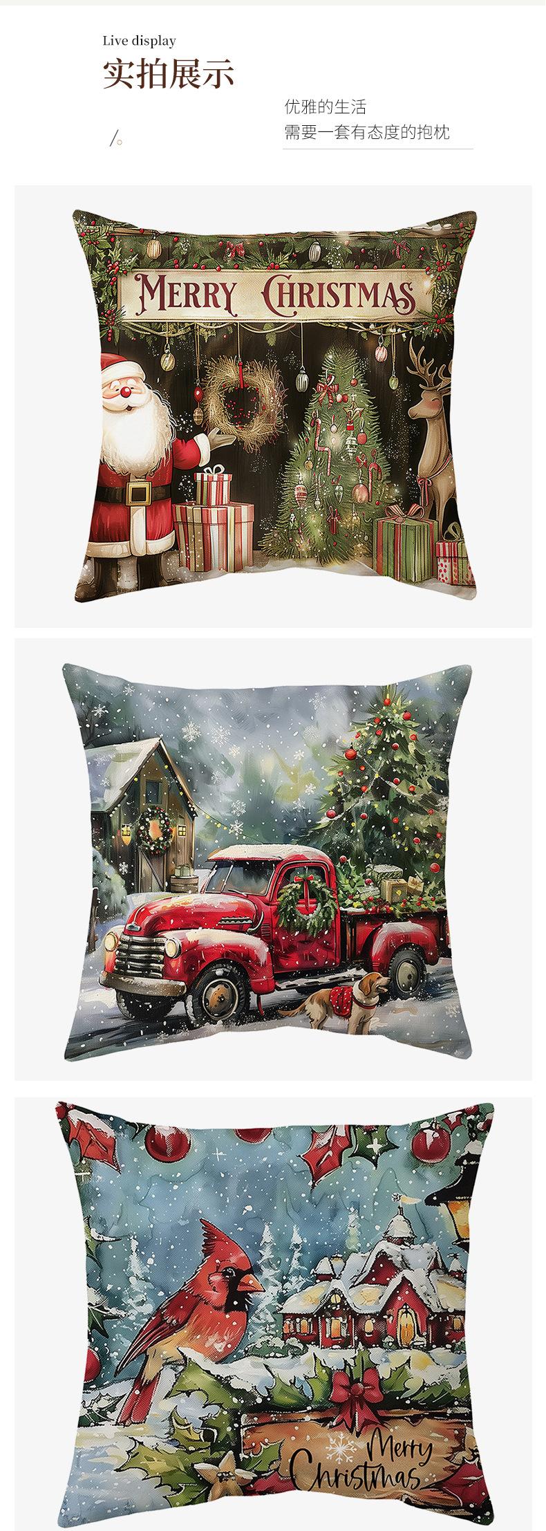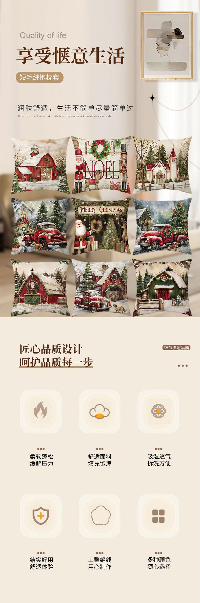Fronha de Natal Transfronteiriça da Amazon Fronha Vermelha Capa de Almofada para Sofá Pelúcia Curta Estampada