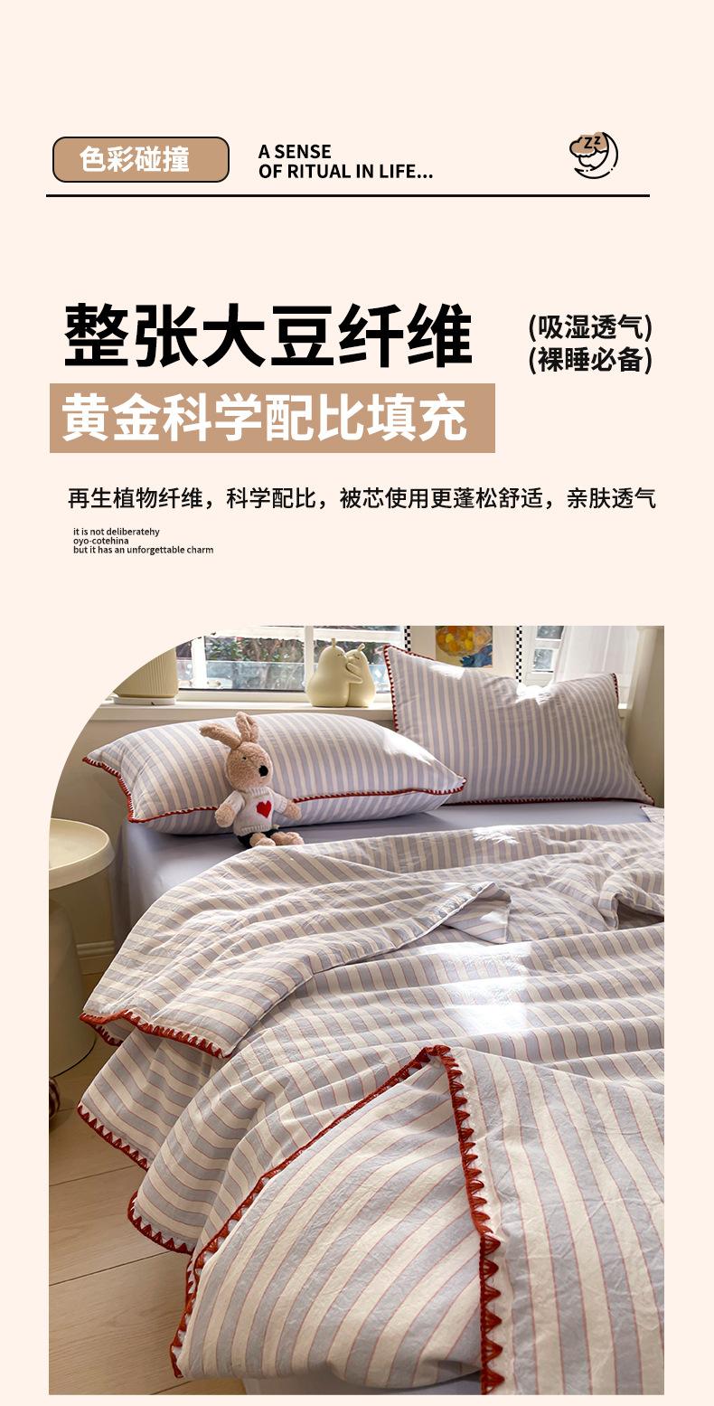 Colcha de verão de fibra de algodão e soja, colcha de verão de algodão fresco, quatro peças, lavável à máquina, para uso doméstico e com ar-condicionado, para uma pessoa