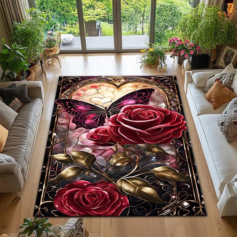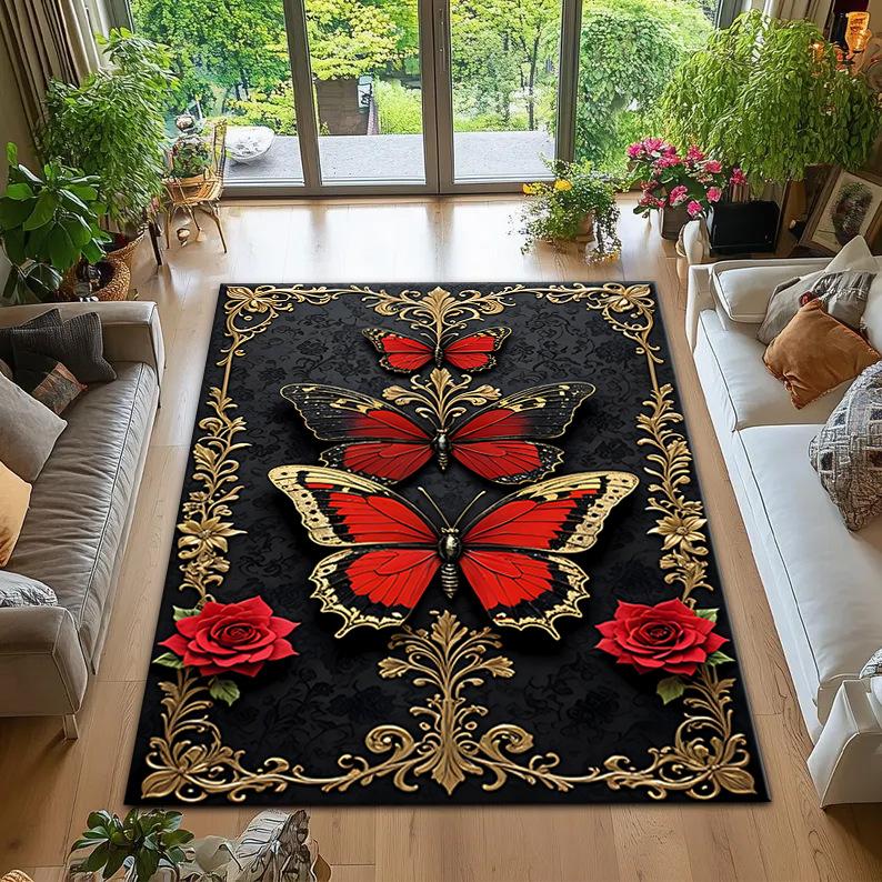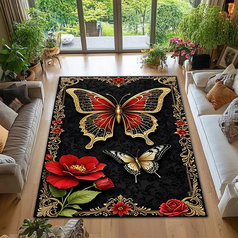 Tapetes de Chão de Veludo Cristal Transfronteiriço Borboleta Resistente a Manchas e de Fácil Cuidado para Tapetes de Porta de Entrada de Casa, Tapetes para Sala de Estar e Quarto