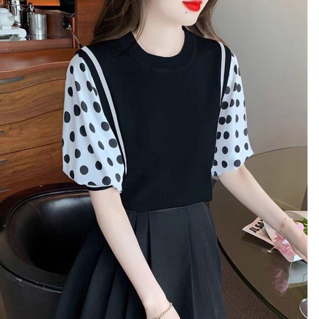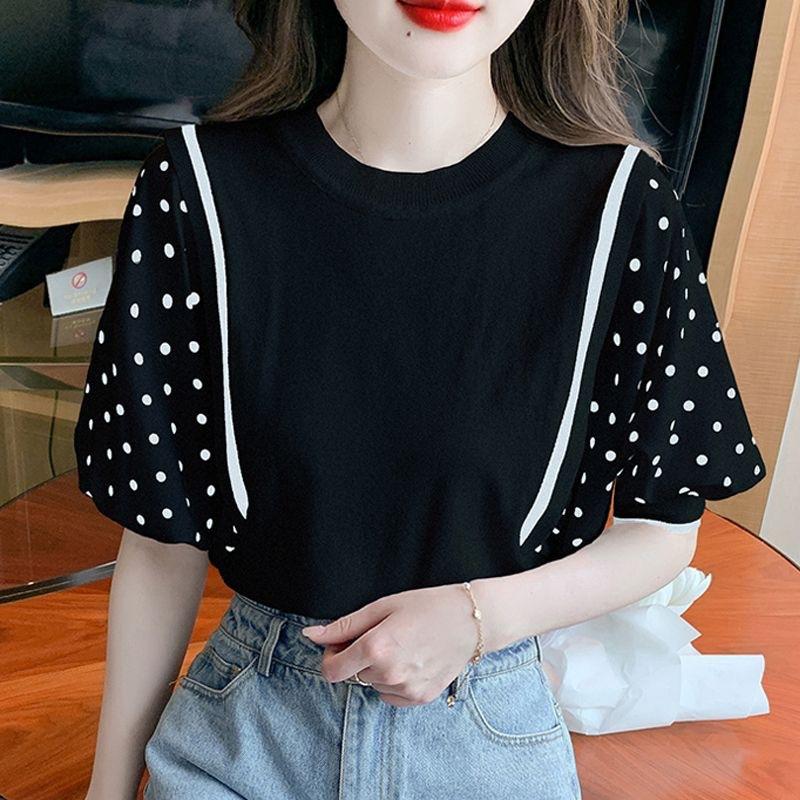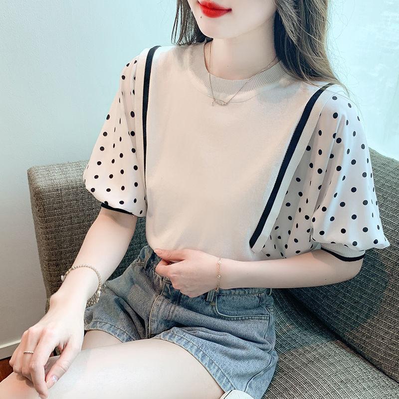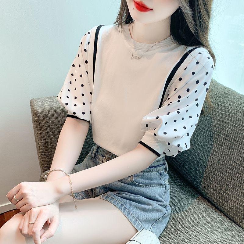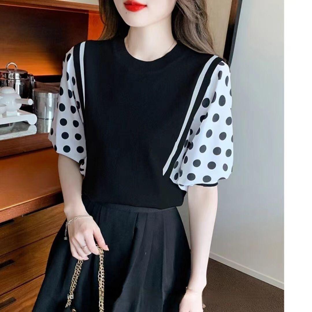 Compre Camiseta feminina de manga curta estampada, slim fit, folgada e moderna, verão 2024, nova blusa de malha com manga morcego e seda gelada, para todos os tipos de ocasiões no atacado no Joom.pro