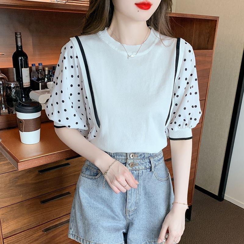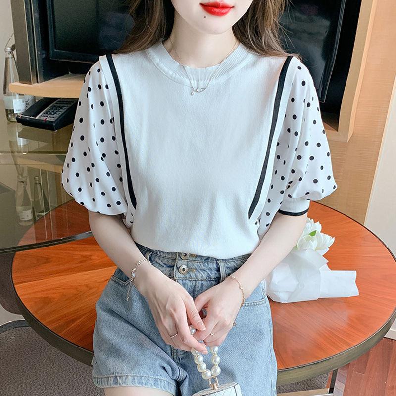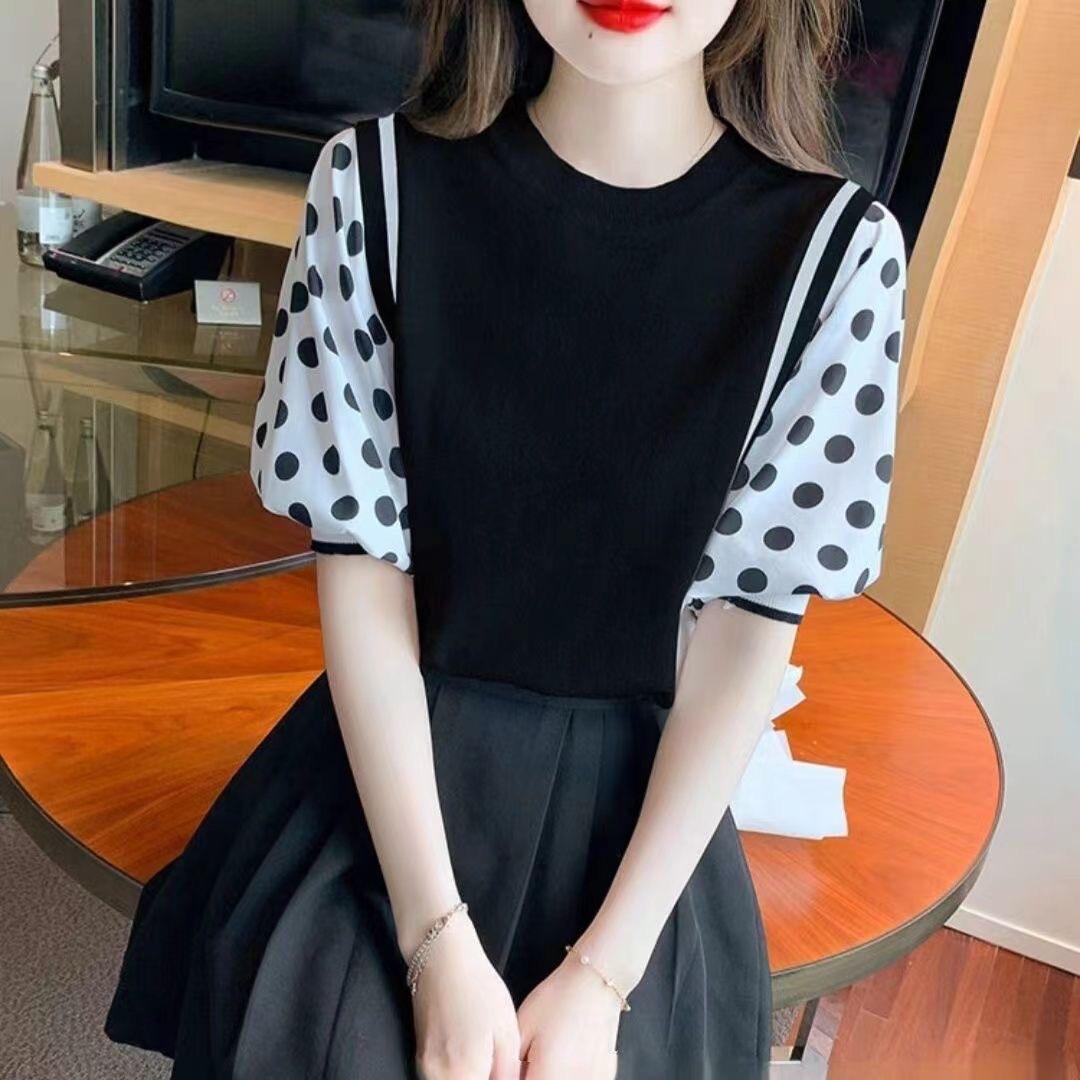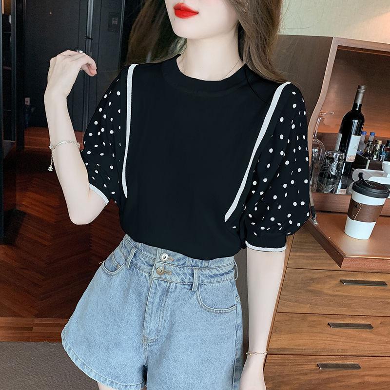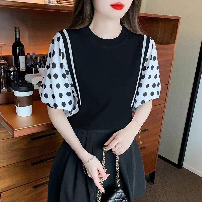 Compre Camiseta feminina de manga curta estampada, slim fit, folgada e moderna, verão 2024, nova blusa de malha com manga morcego e seda gelada, para todos os tipos de ocasiões no atacado no Joom.pro