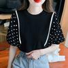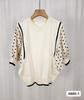 Camiseta feminina de manga curta estampada, slim fit, folgada e moderna, verão 2024, nova blusa de malha com manga morcego e seda gelada, para todos os tipos de ocasiões