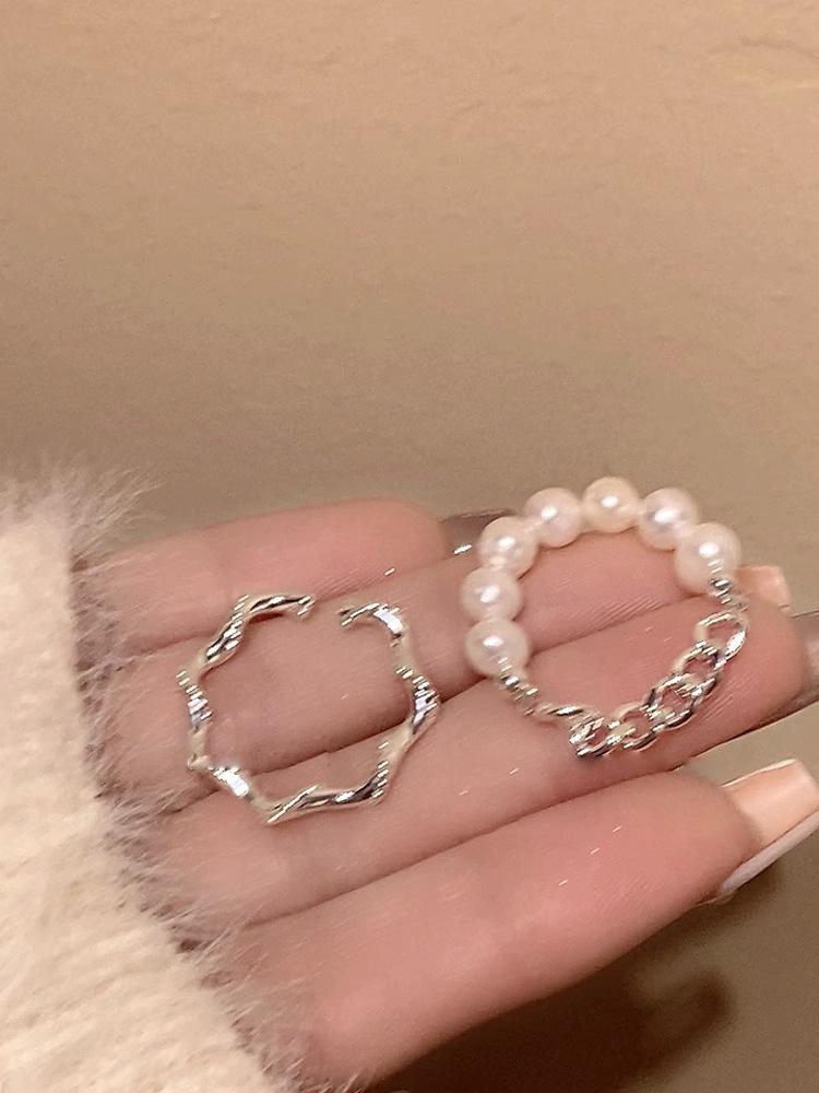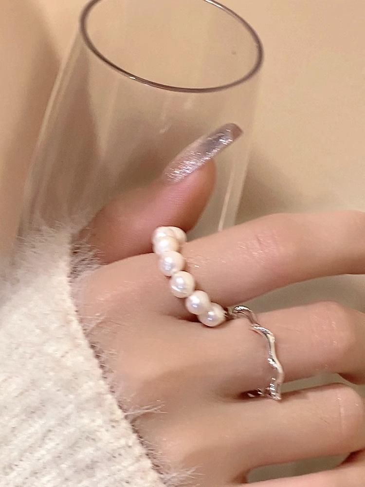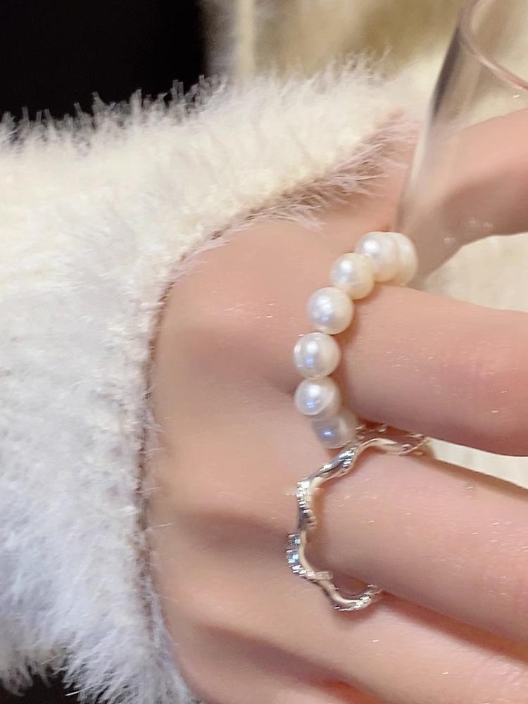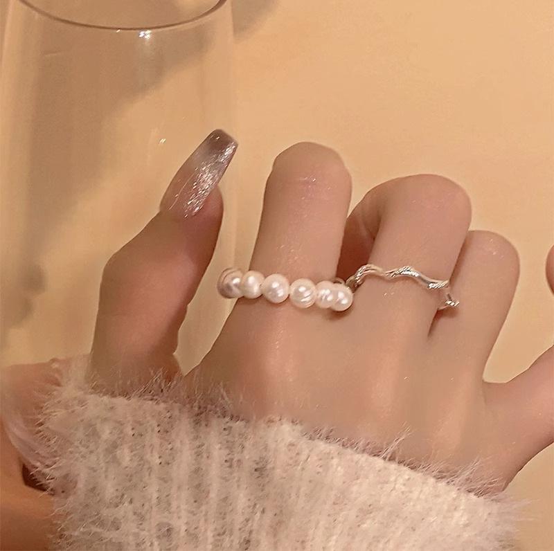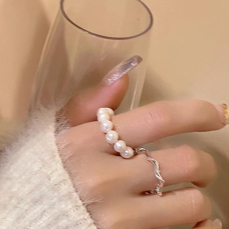 Compre Anel de pérola com costura estilo frio feminino, design de nicho, temperamento de alta qualidade, anel de dedo indicador leve e luxuoso, novo, 2023 no atacado no Joom.pro