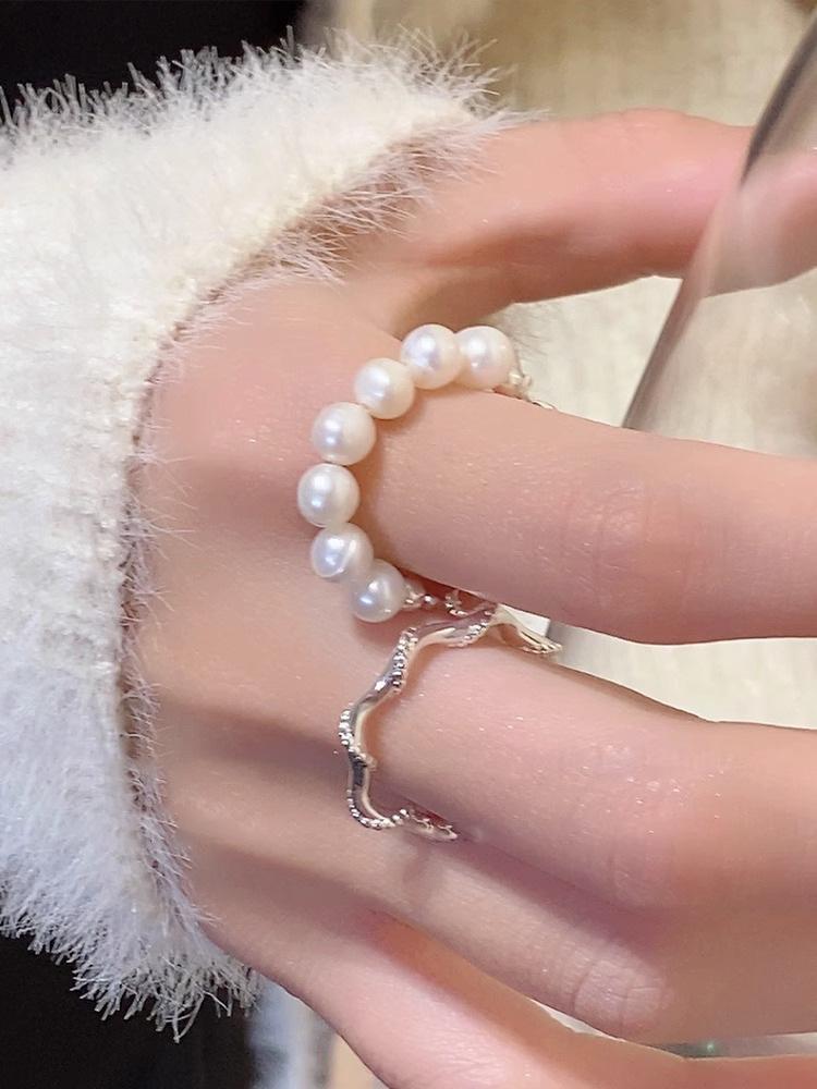 Anel de pérola com costura estilo frio feminino, design de nicho, temperamento de alta qualidade, anel de dedo indicador leve e luxuoso, novo, 2023