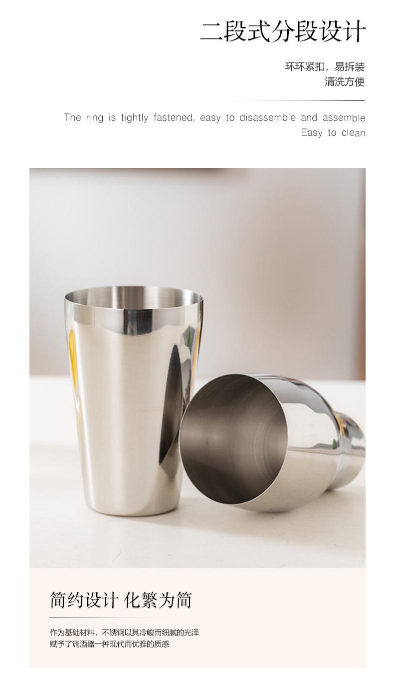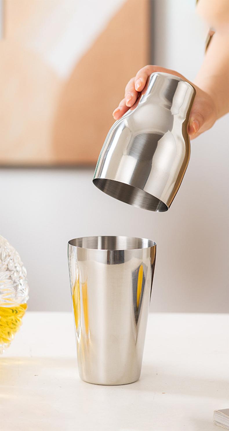 Fornecimento Transfronteiriço de Coqueteleira de Aço Inoxidável Copo Boston Coqueteleira de Dois Estágios 650ml Copo Coqueteleira