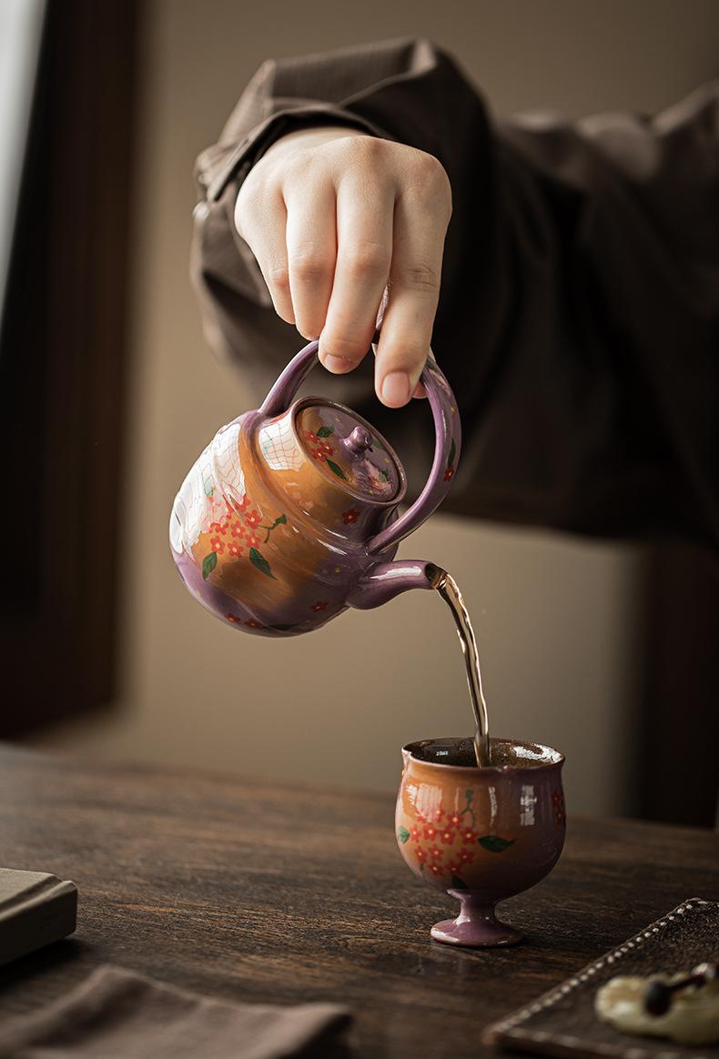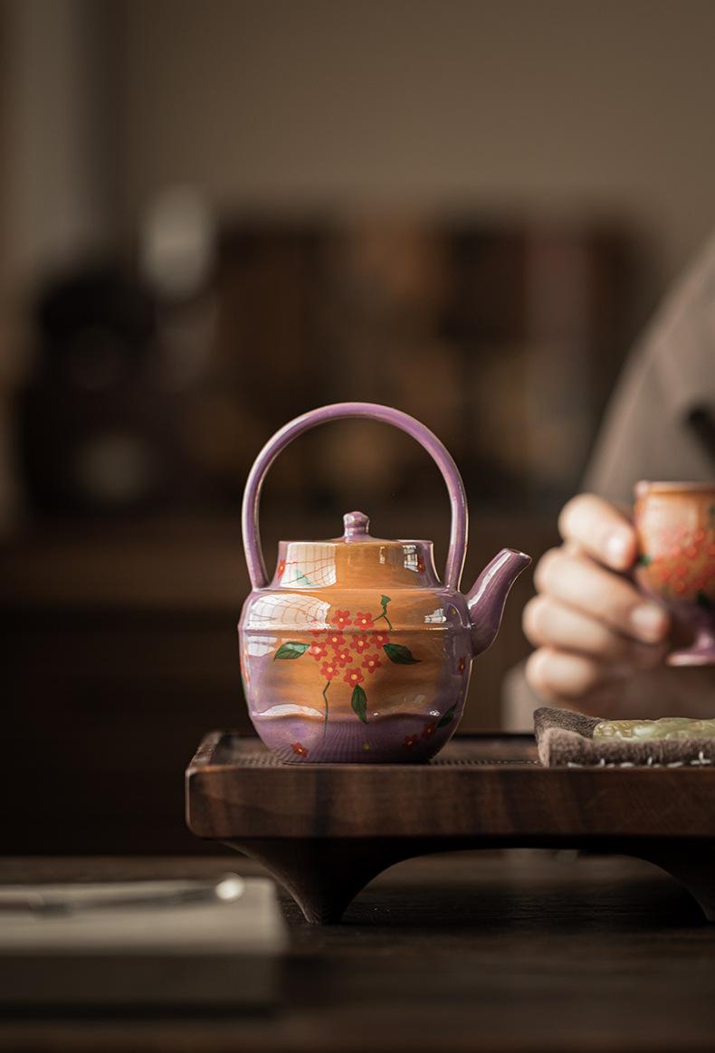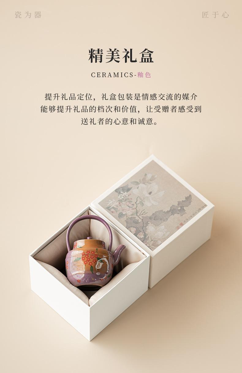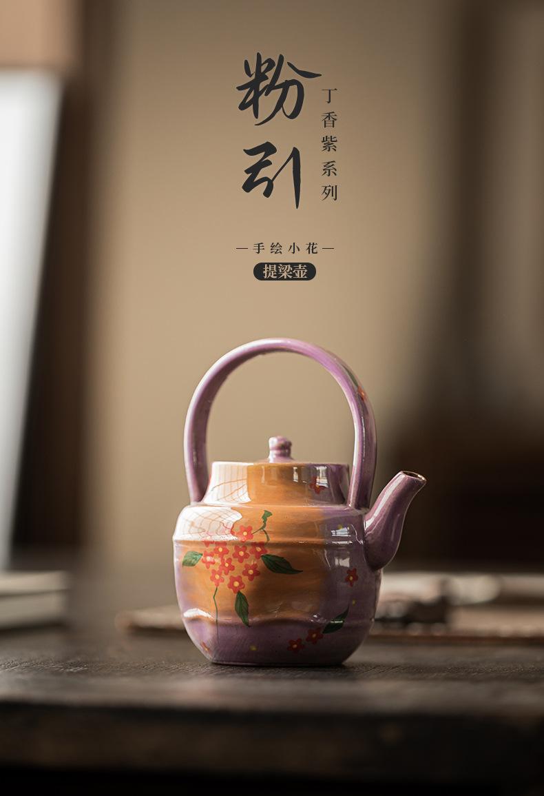 Roxo Lilás Pó Pintado à Mão Vaso Pequeno de Flores Gravata Bule de Cerâmica Doméstico Jogo de Chá Kung Fu Tamanho Pequeno Bule Único Caixa de Presente