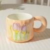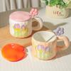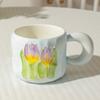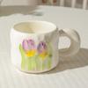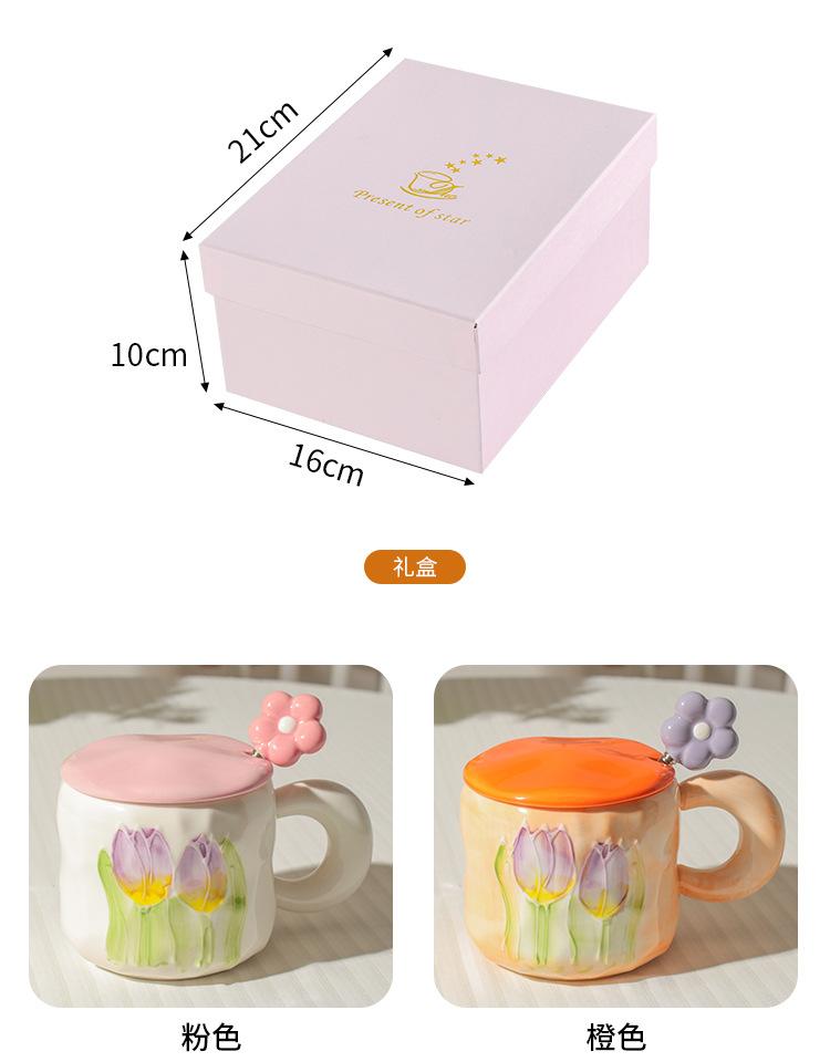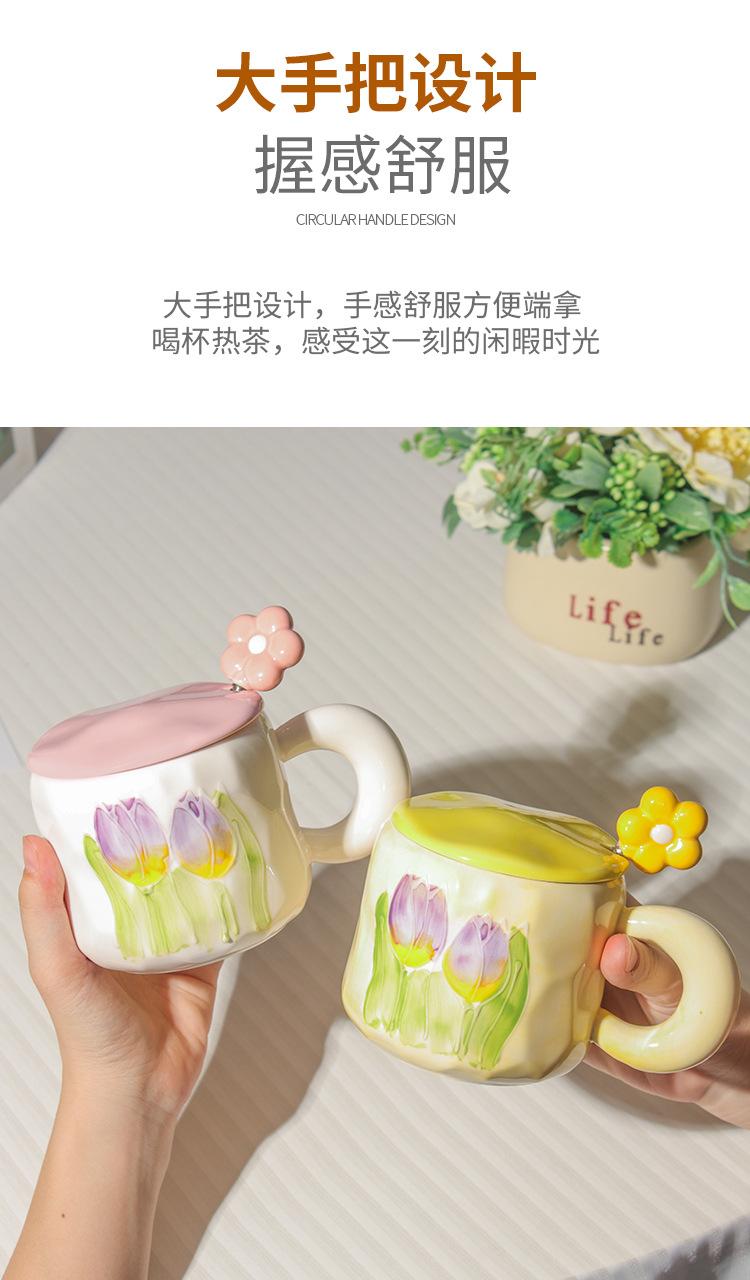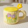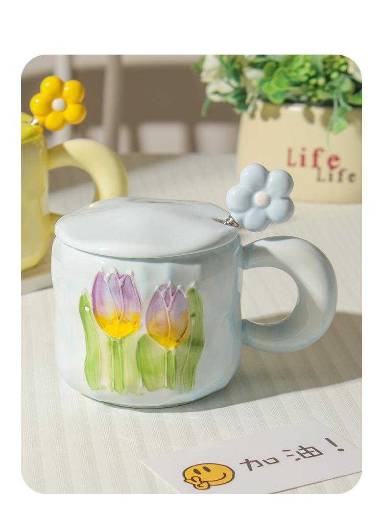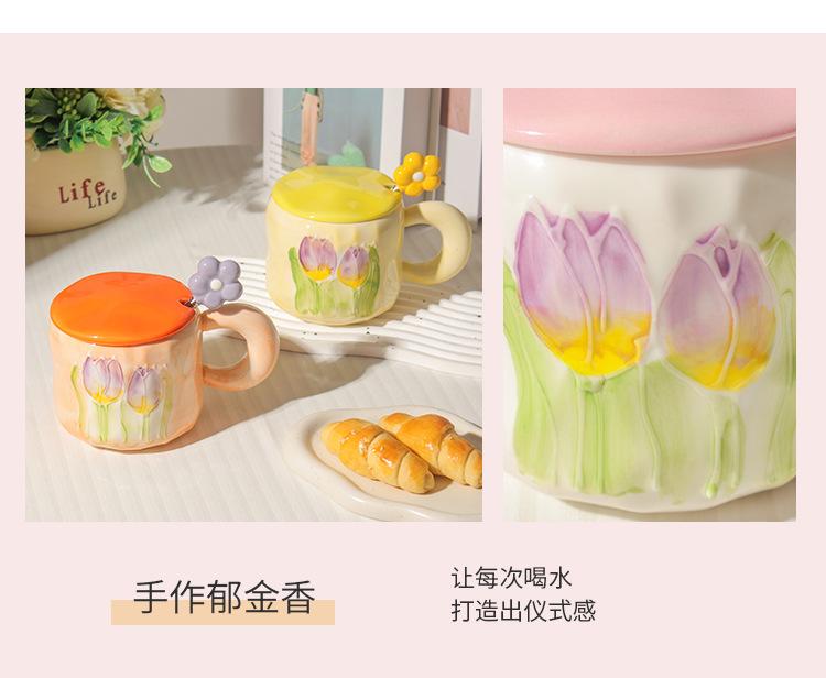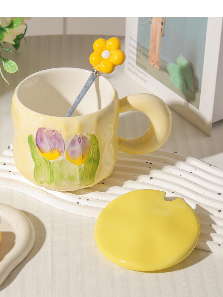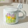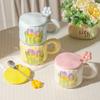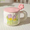 Copo Tulipa de Alto Valor Estético Estilo Ins Caneca de Menina com Tampa e Colher Copo de Água de Cerâmica para Casal para Uso Doméstico Xícara de Café