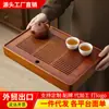 Bandeja de Chá de Madeira Maciça por Atacado para Uso Doméstico, Mesa de Chá com Armazenamento de Água, Pequena Mesa de Preparo a Seco para Uma Pessoa, Bandeja de Chá de Madeira Portátil com Drenagem
