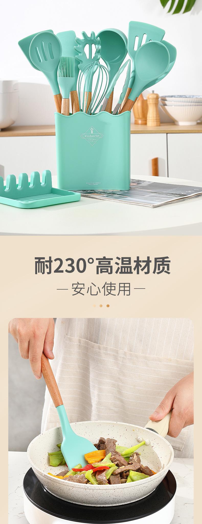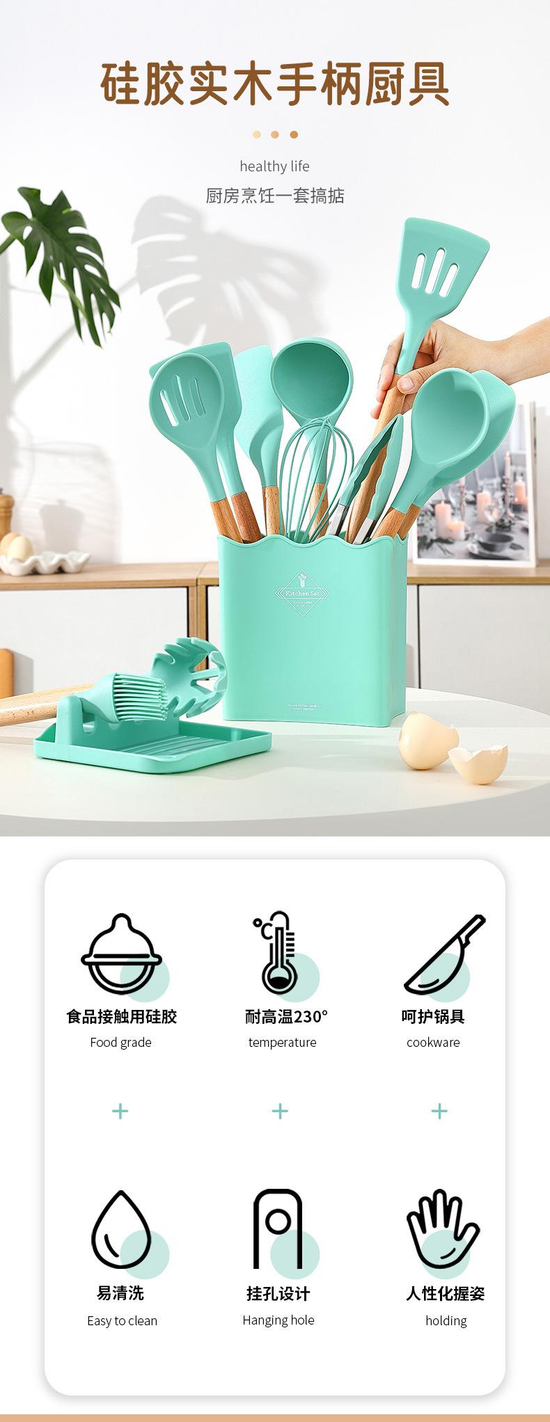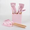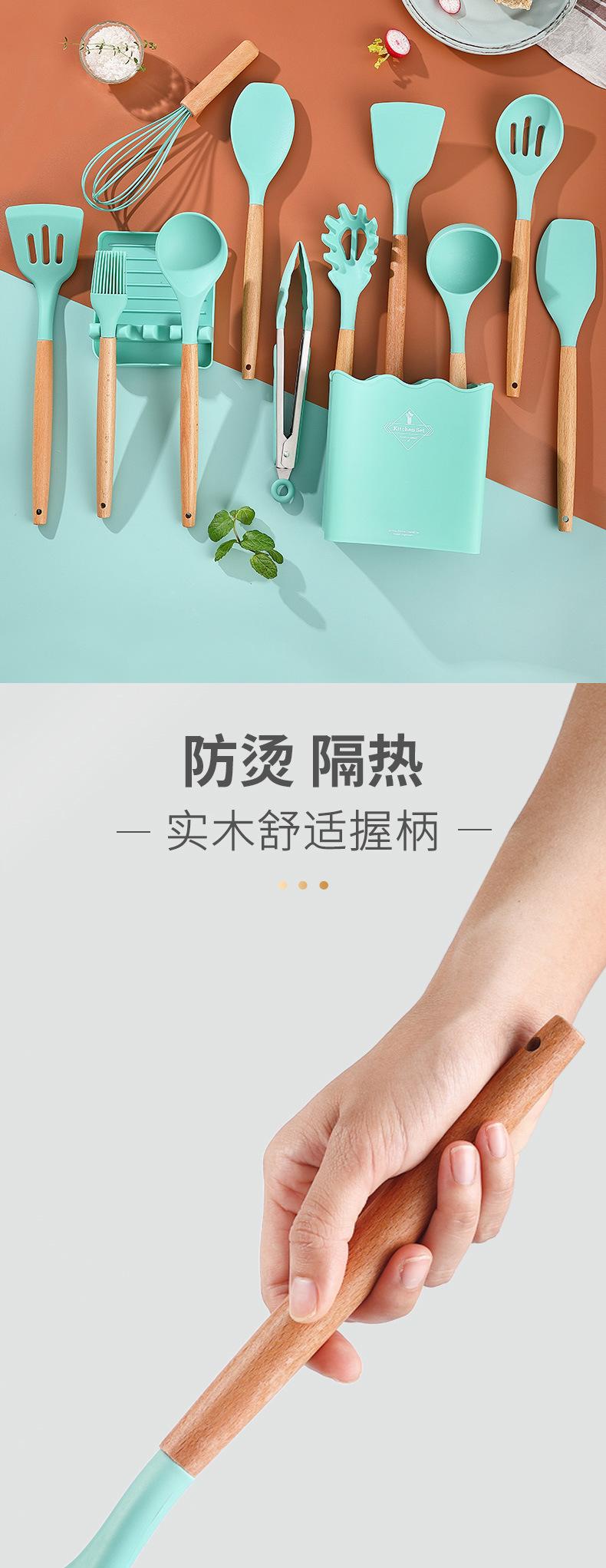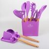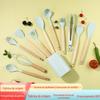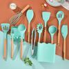 Conjunto de Utensílios de Cozinha Criativos de Silicone Mais Vendidos Transfronteiriços Cabo de Madeira com Balde 13 Peças Espátula de Silicone Colher Ferramentas de Cozinha de Silicone