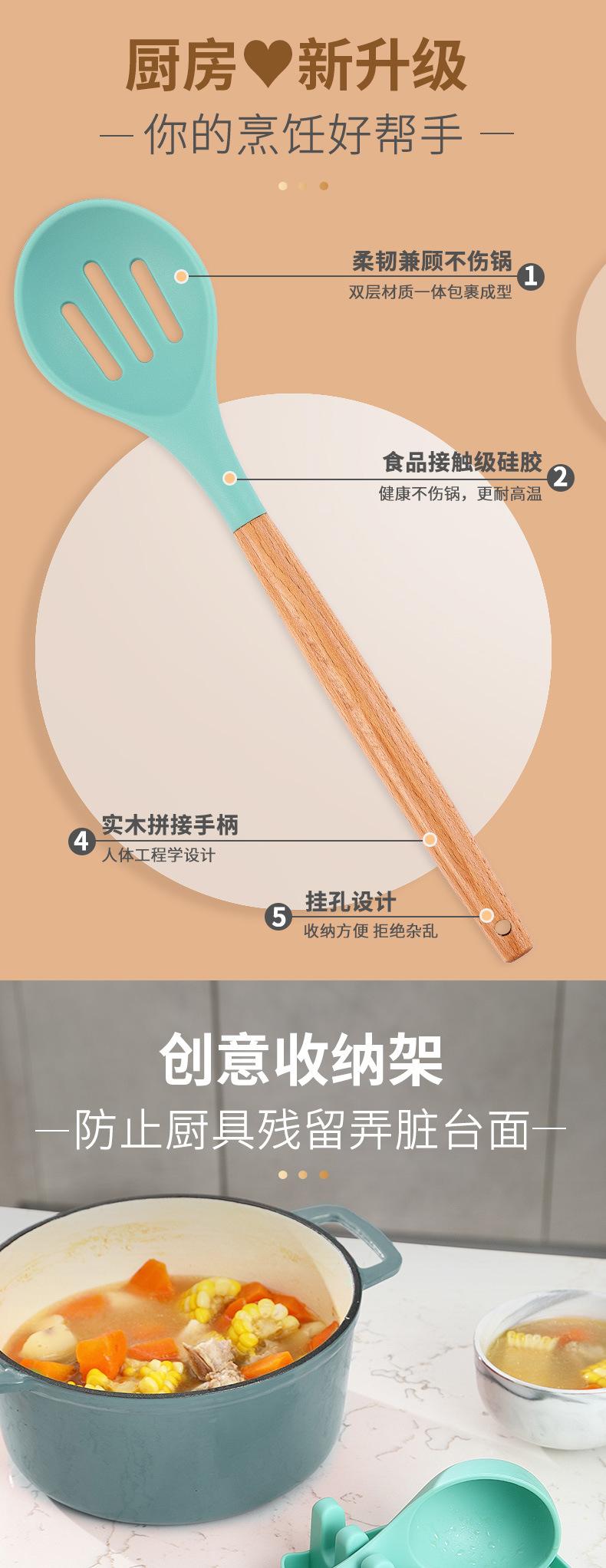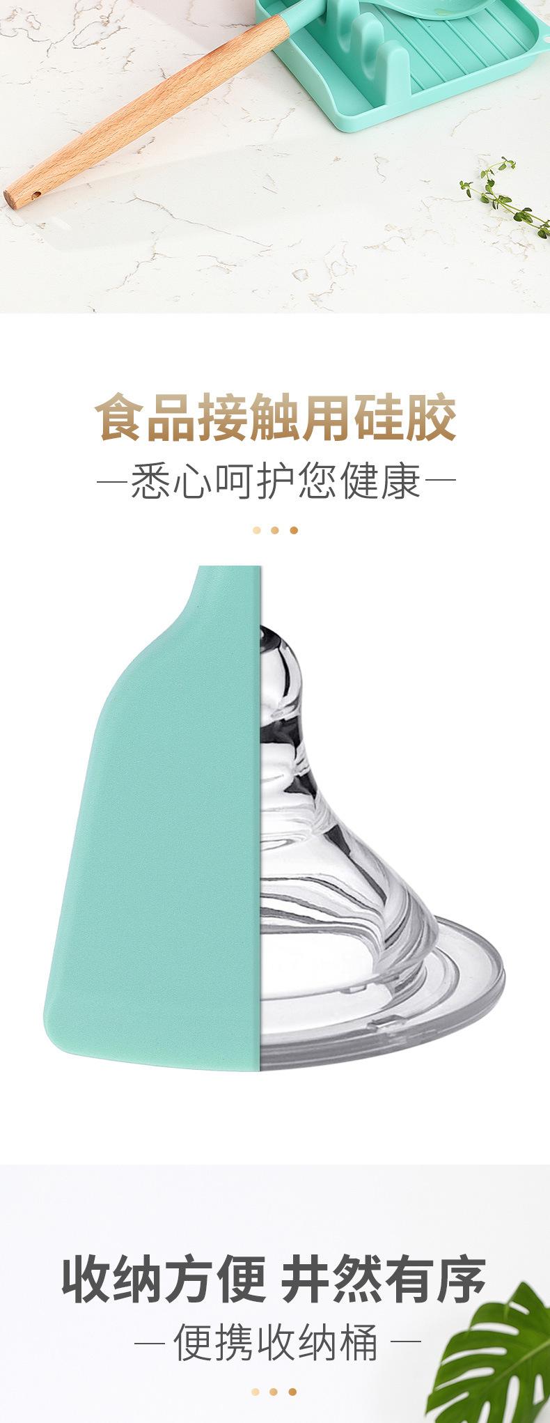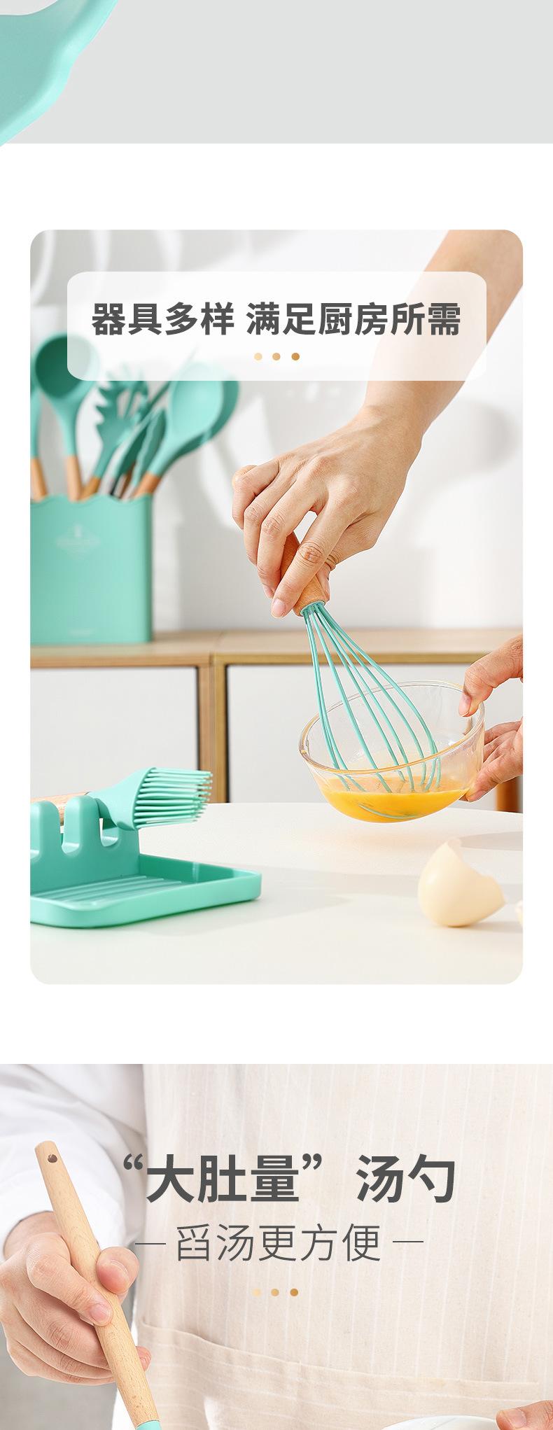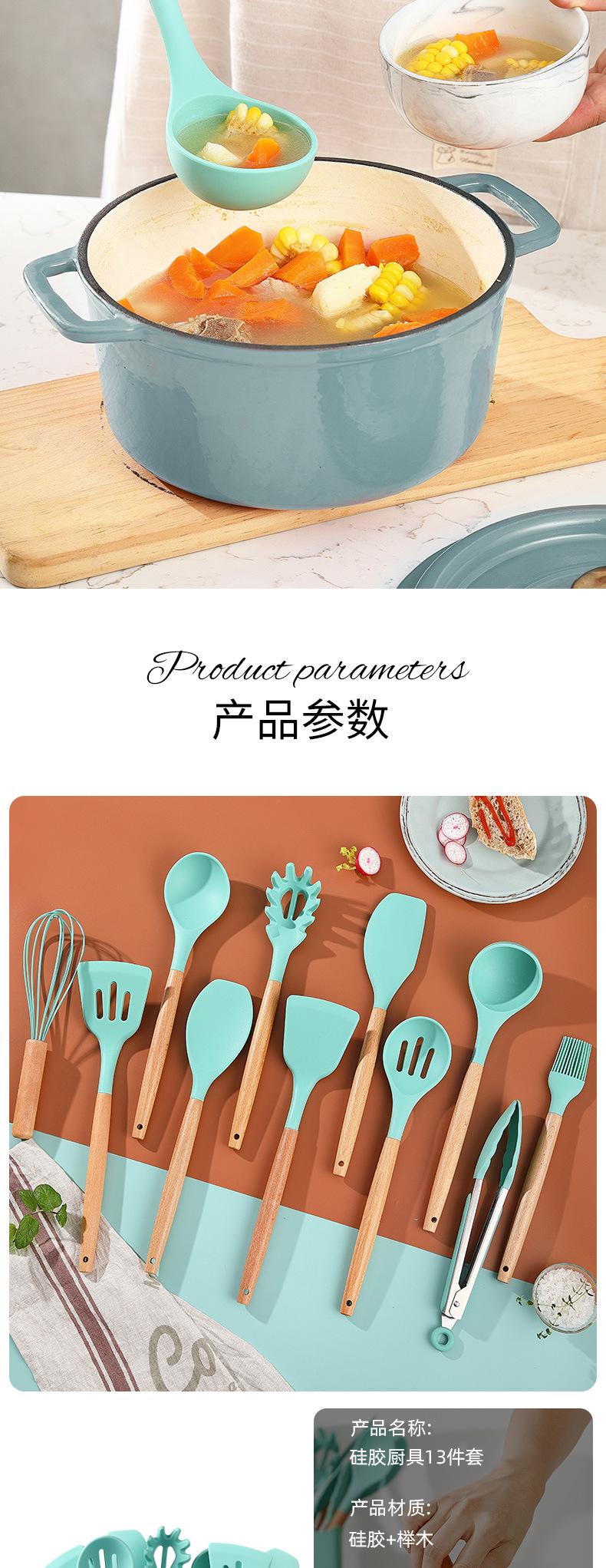 Conjunto de Utensílios de Cozinha Criativos de Silicone Mais Vendidos Transfronteiriços Cabo de Madeira com Balde 13 Peças Espátula de Silicone Colher Ferramentas de Cozinha de Silicone
