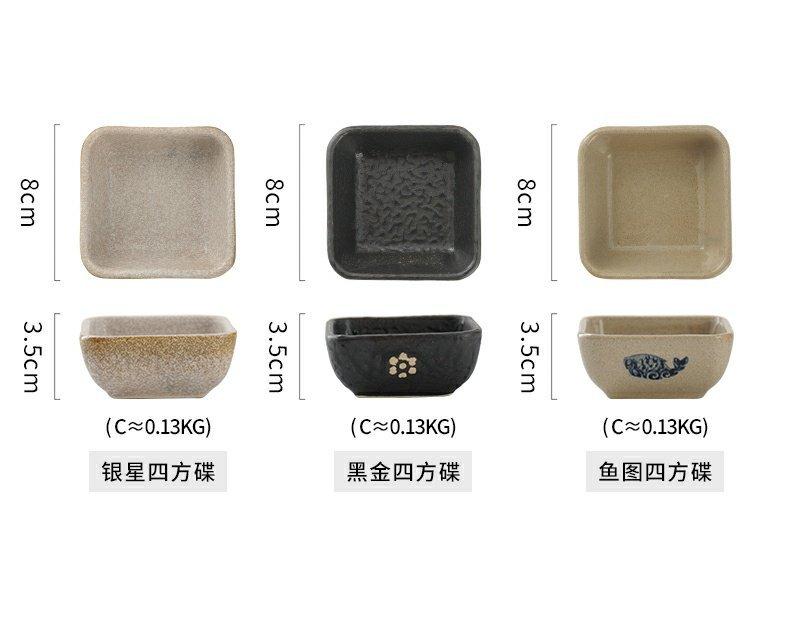 Stoneware fish pattern square plate 1 set, Stoneware black gold square dish 1 piece, Stoneware fish pattern sq...
