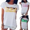Camiseta feminina europeia e americana de outono com estampa de flores e amor, estilo casual e de manga curta
