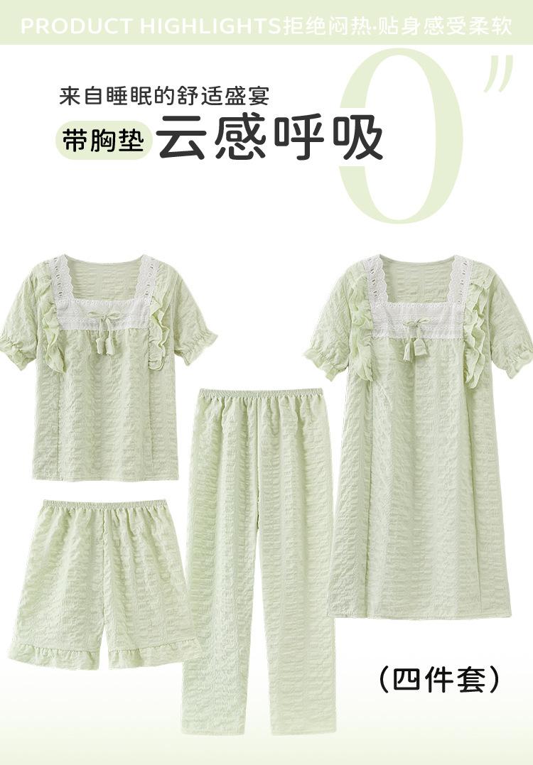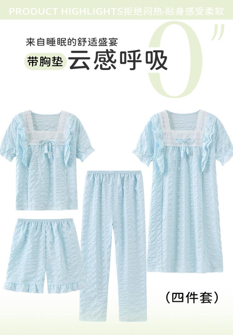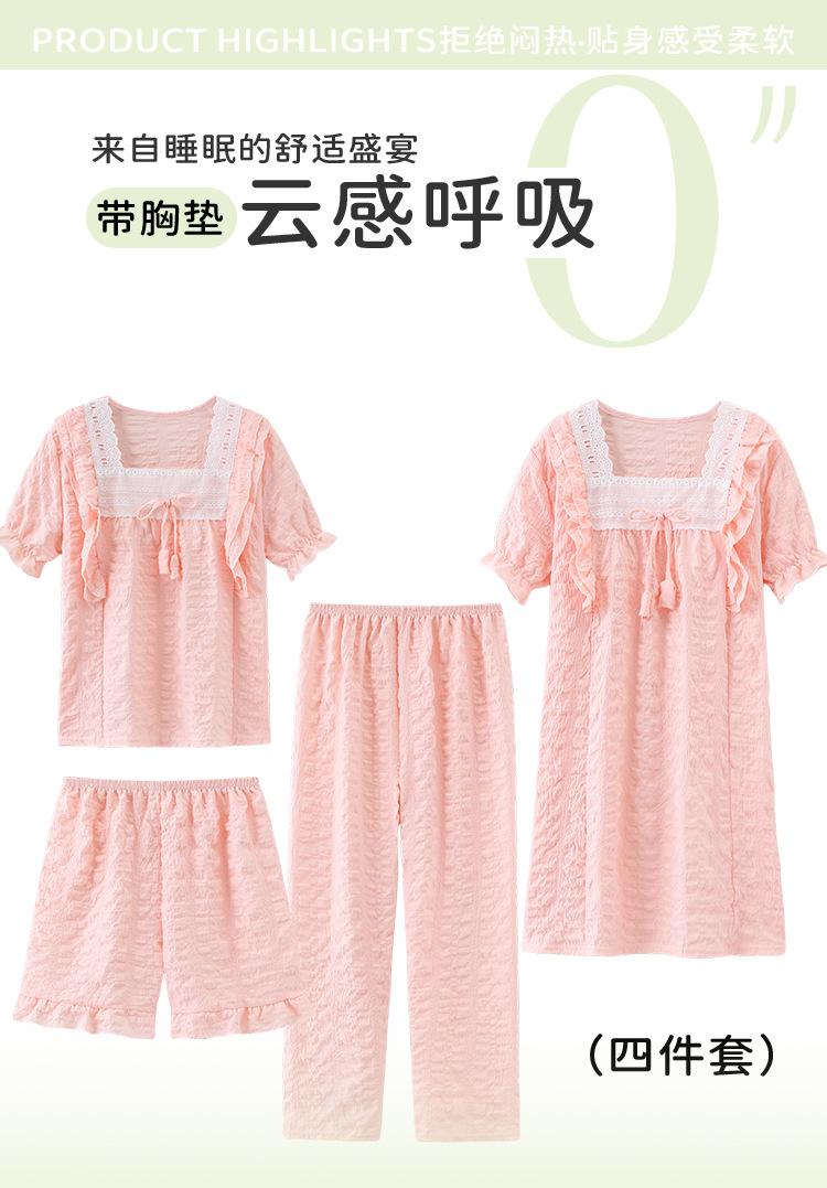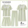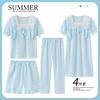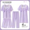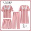 Pijamas infantis para meninas, verão, quatro peças, calças de manga curta, desenho animado fino, menina, bebê, verão, roupas infantis grandes para casa