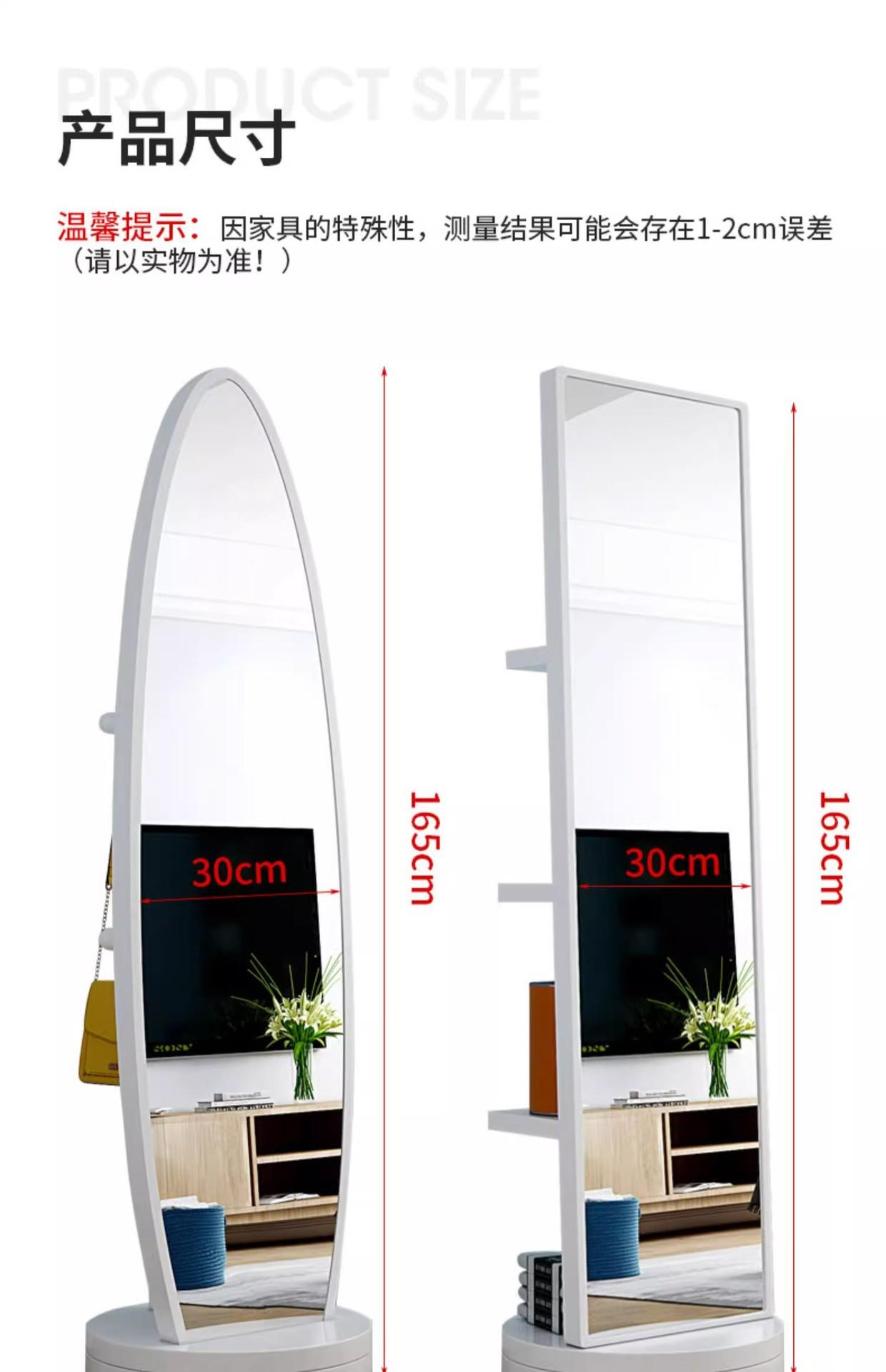 Espelho de chão de corpo inteiro espelho de armazenamento doméstico espelho giratório de encaixe quarto meninas espelho grande tridimensional simples