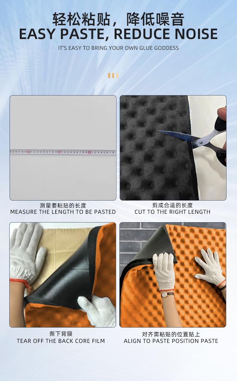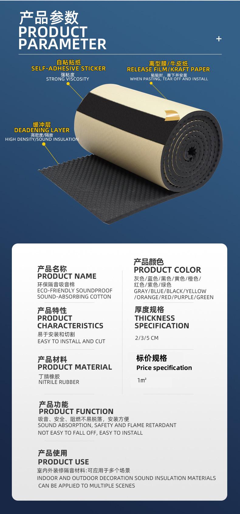 Algodão de Borracha e Plástico Algodão Acústico de Parede Algodão Ktv Doméstico Auto-Adesivo Material Silenciador Adesivo de Parede para Quarto Estúdio de Gravação Algodão de Isolamento Acústico Interno