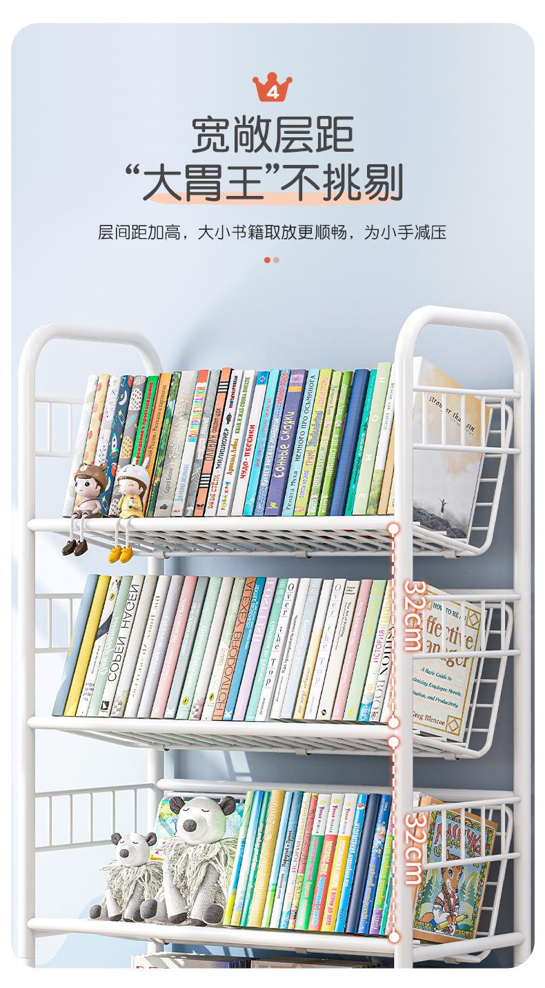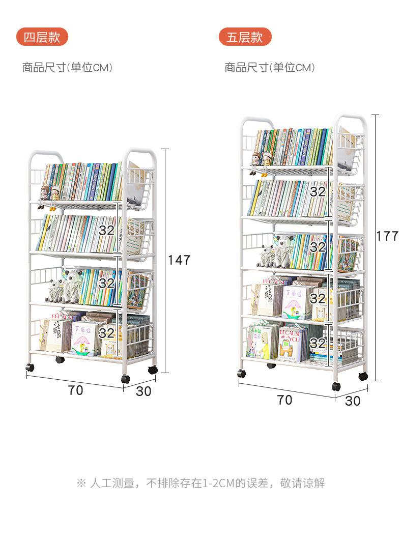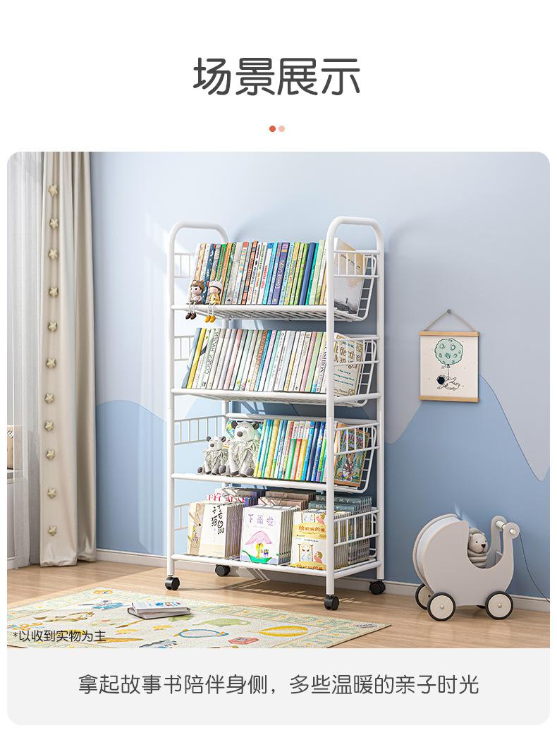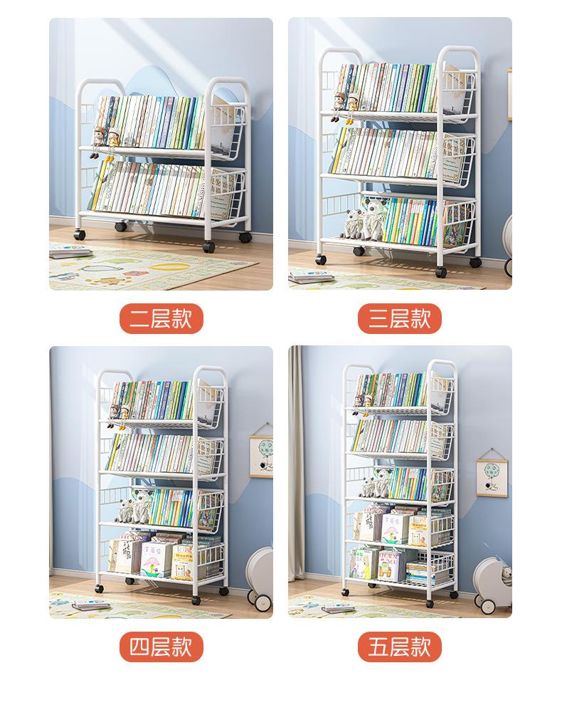 Estante de livros infantil, prateleira de chão, prateleira simples para livros ilustrados, prateleira de armazenamento de brinquedos multicamadas, livro móvel, pequena estante de ferro