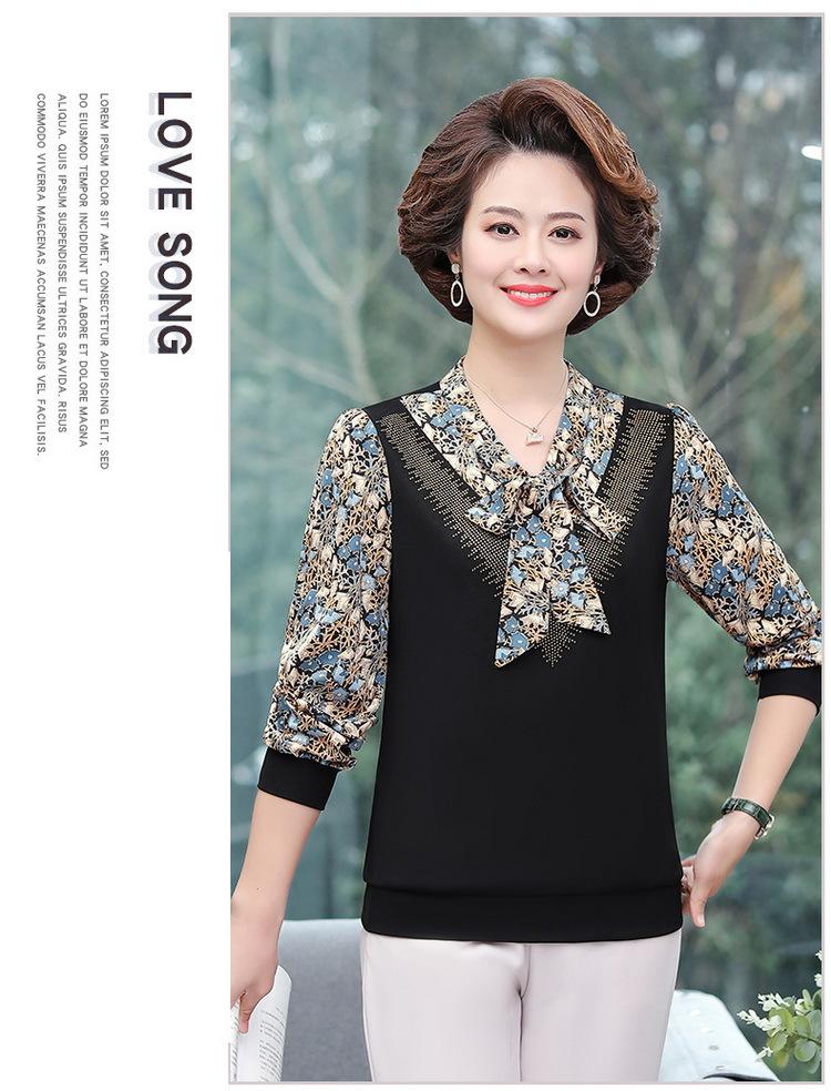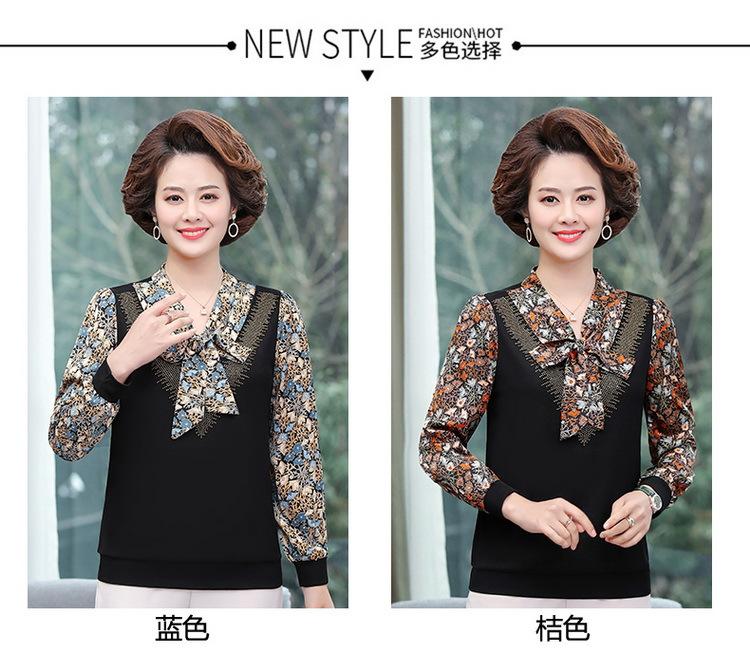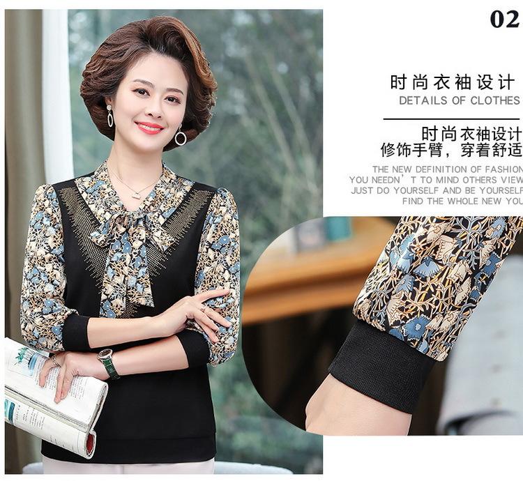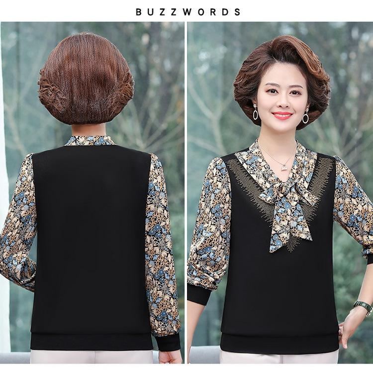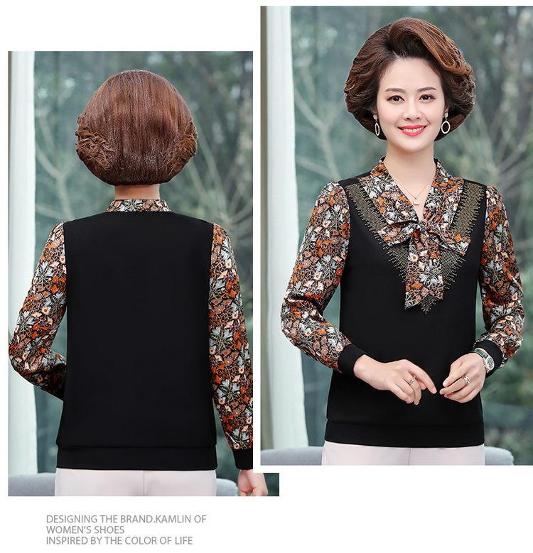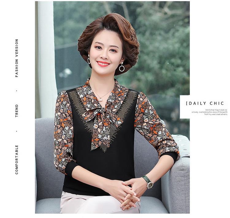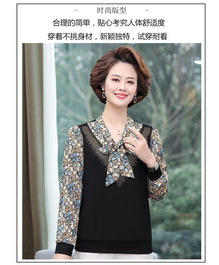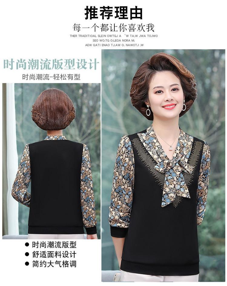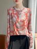 Camiseta de manga comprida estilo ocidental, camiseta pequena da moda, nova, para mulheres de 40 e 50 anos, primavera e outono