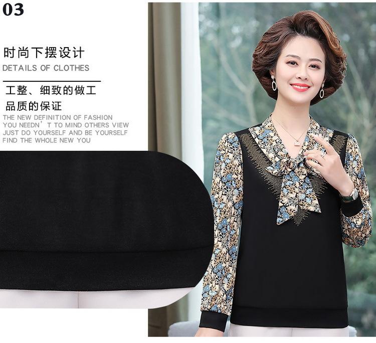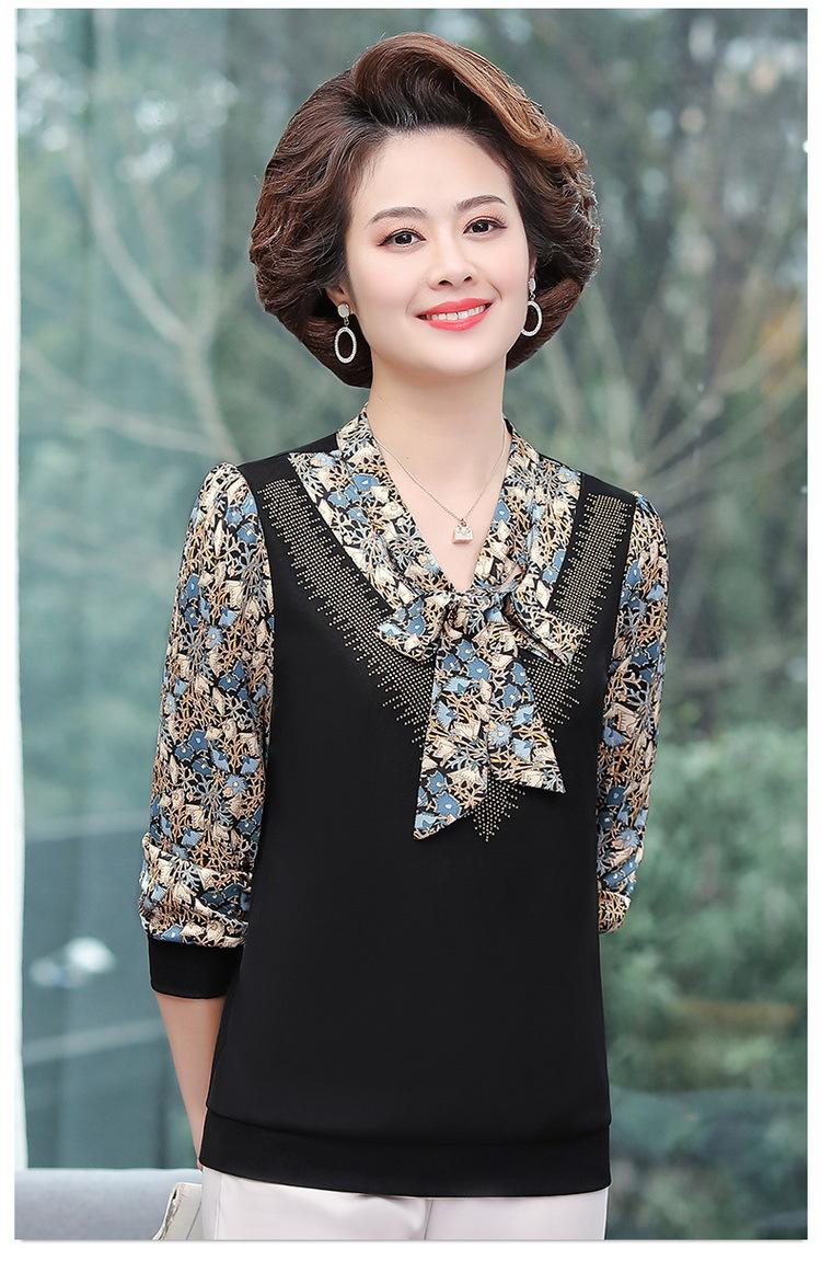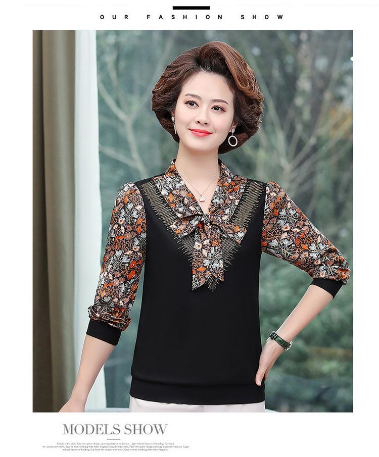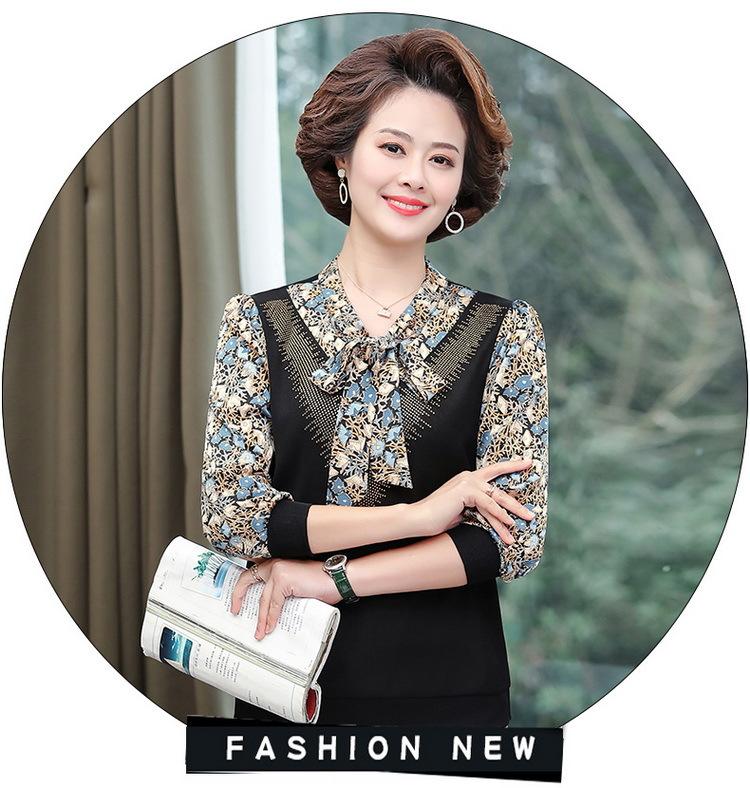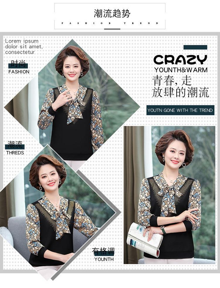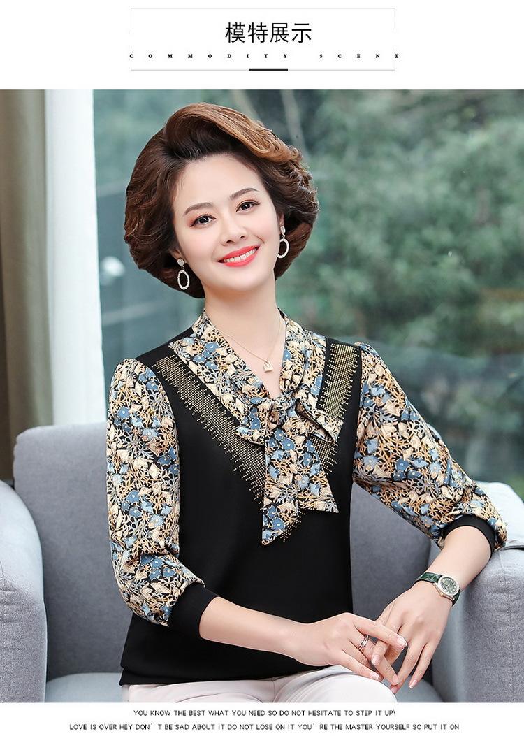 Camiseta de manga comprida estilo ocidental, camiseta pequena da moda, nova, para mulheres de 40 e 50 anos, primavera e outono