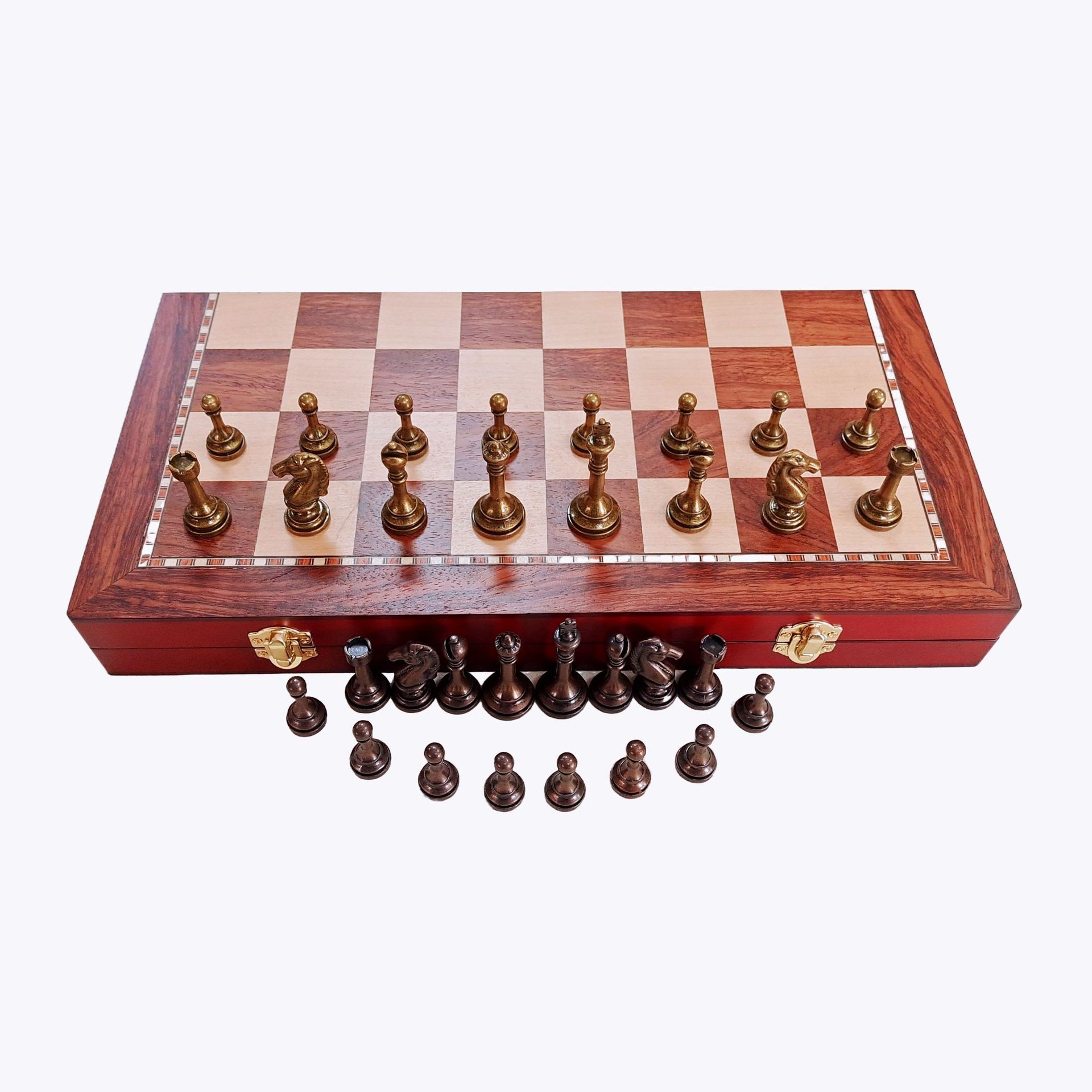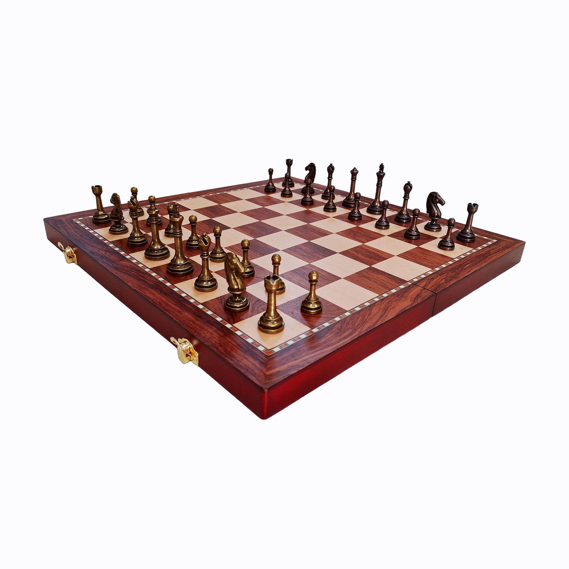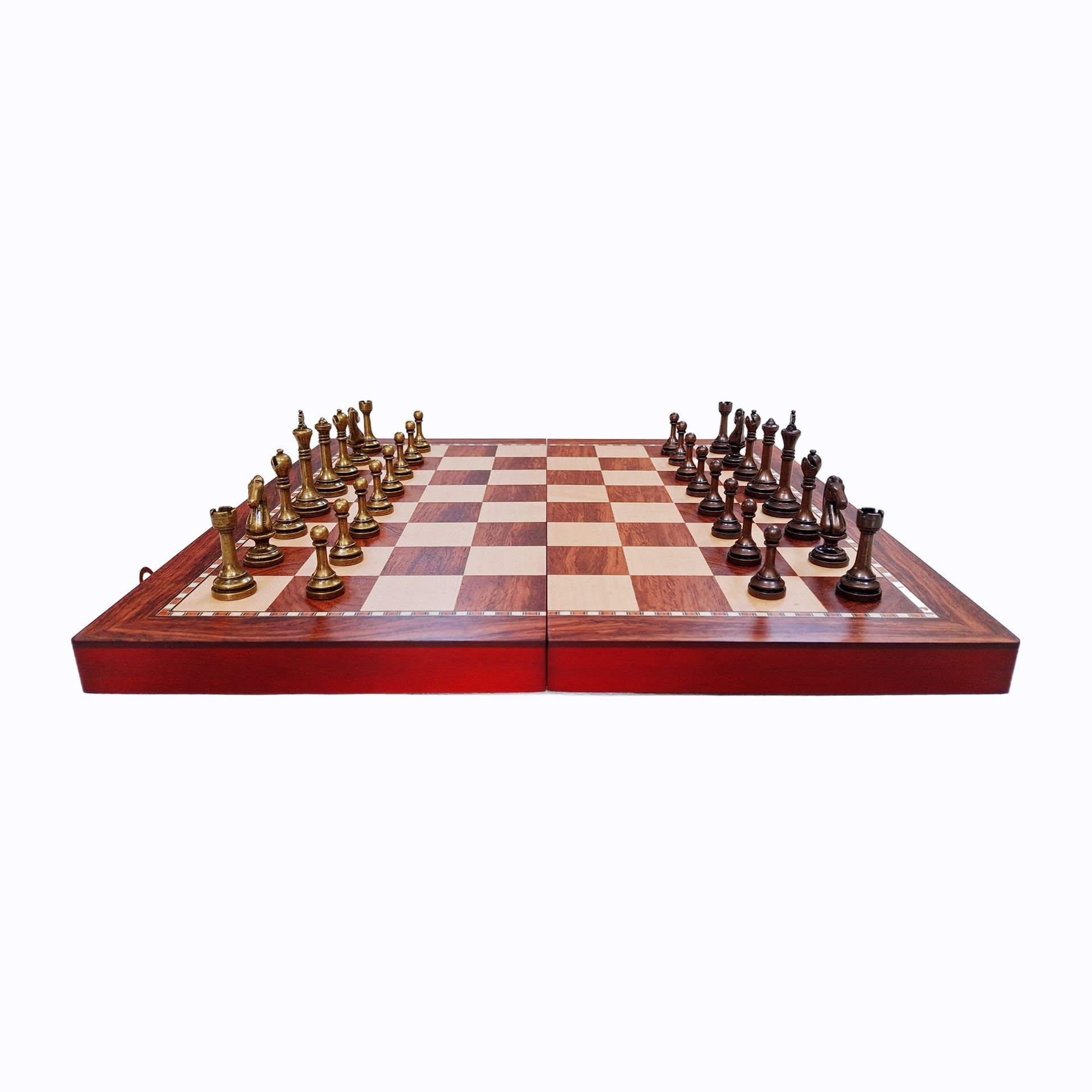 Compre Produção de fábrica de xadrez de madeira maciça personalizada e elegante, peças de xadrez de metal elegantes e jogos de tabuleiro dobráveis no atacado no Joom.pro