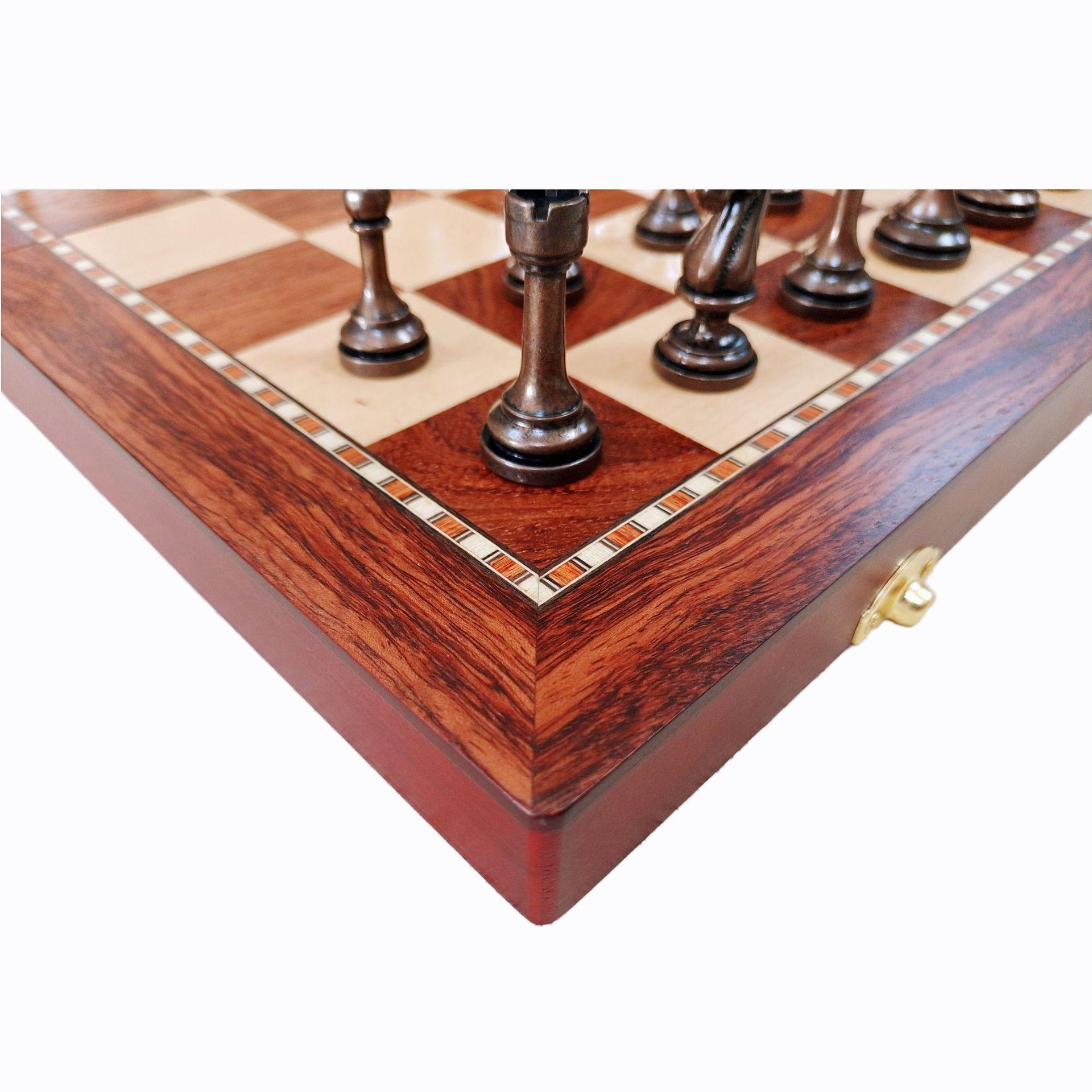 Produção de fábrica de xadrez de madeira maciça personalizada e elegante, peças de xadrez de metal elegantes e jogos de tabuleiro dobráveis