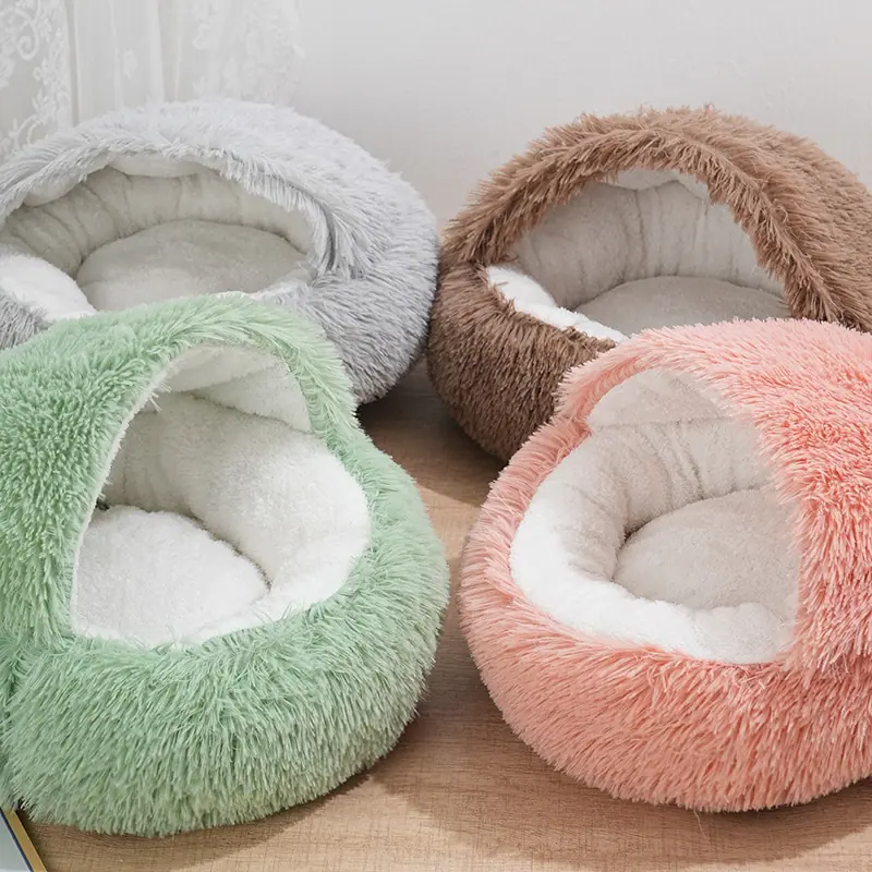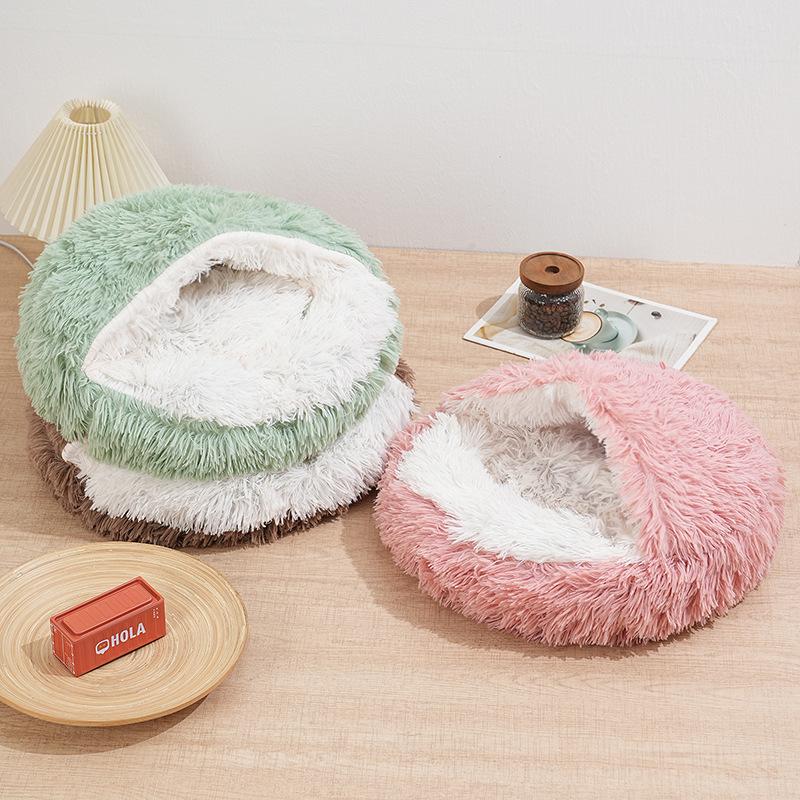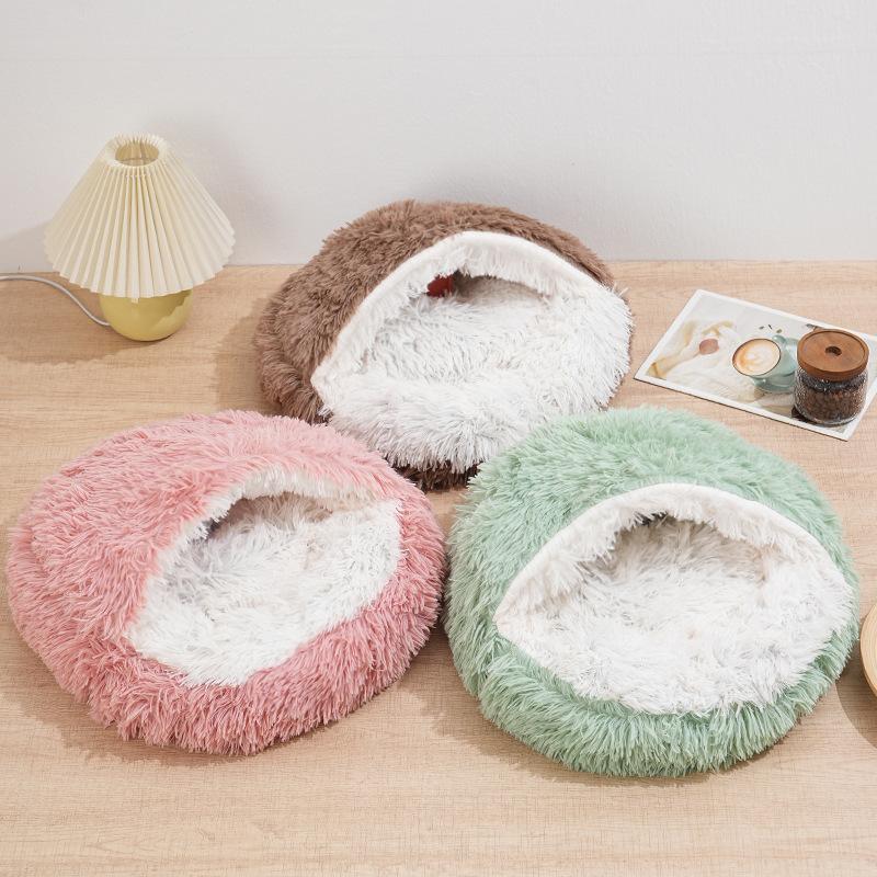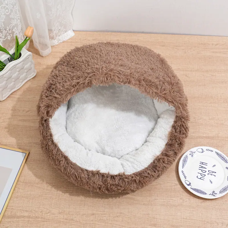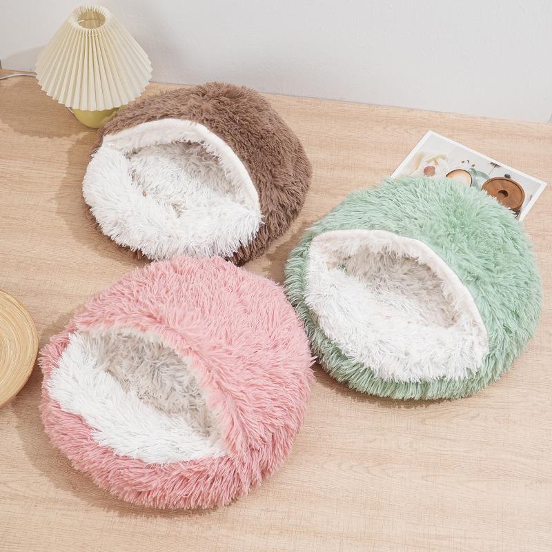 Compre Concha quente de inverno Ninho de gato semi-fechado Cama de gato de estimação Canil semi-fechado Cama de cão Ninho de gato fechado no atacado no Joom.pro