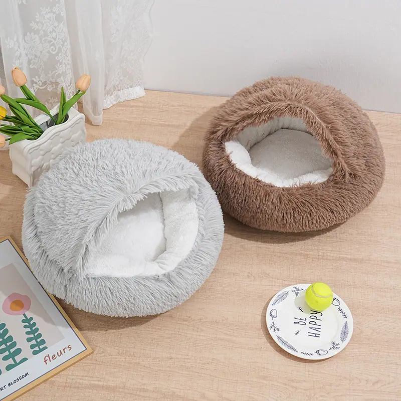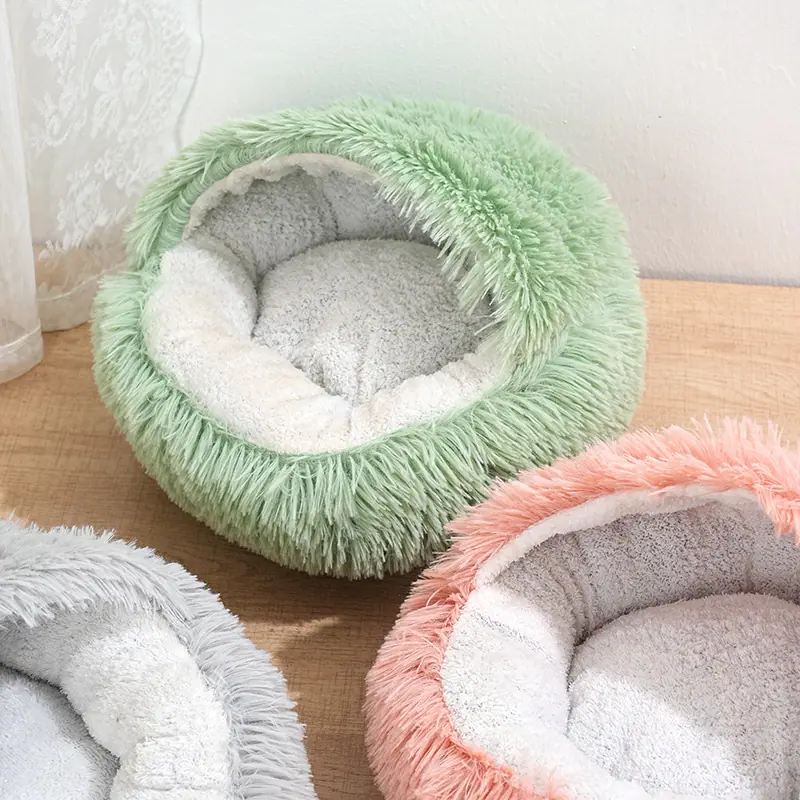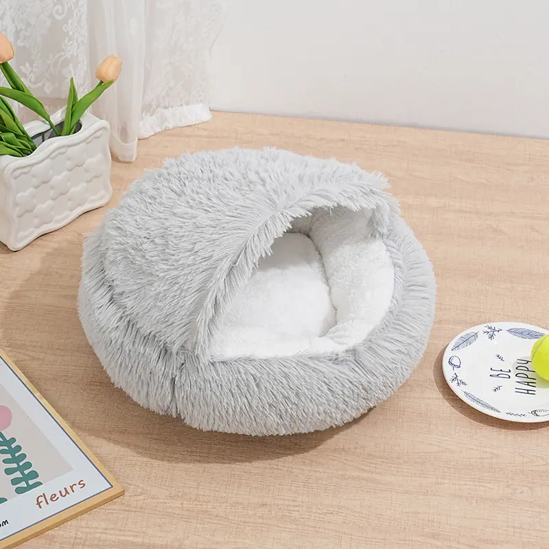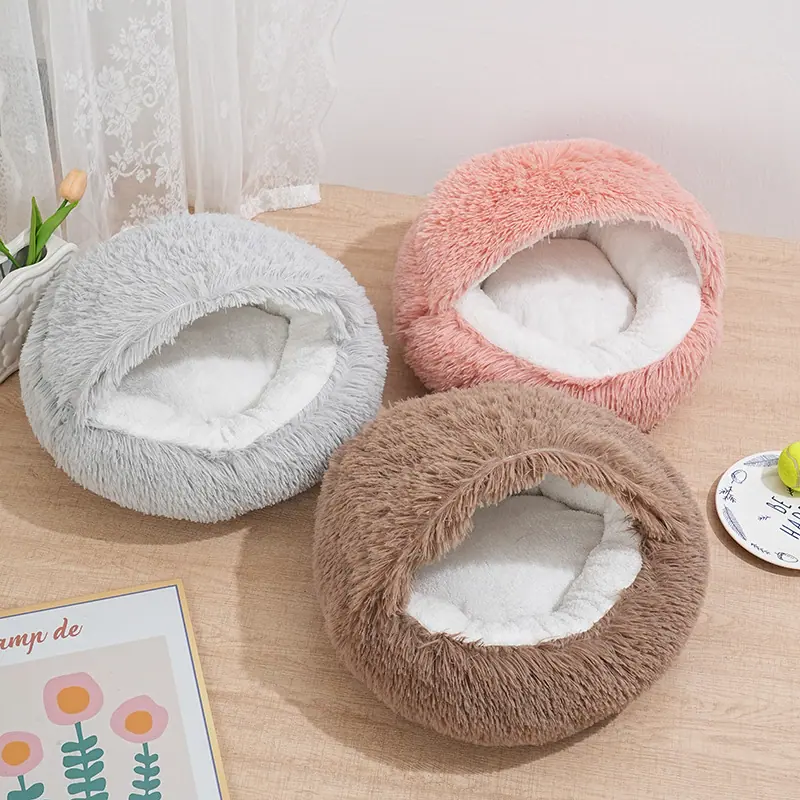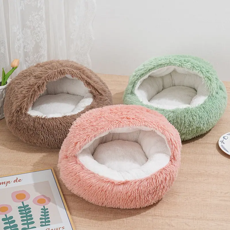Compre Concha quente de inverno Ninho de gato semi-fechado Cama de gato de estimação Canil semi-fechado Cama de cão Ninho de gato fechado no atacado no Joom.pro