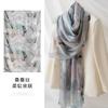 Cachecol de Seda de Hangzhou Cuidadosamente Selecionado para Mulheres, Xale de Seda de Amoreira de Comprimento Médio com Estampa de Magnólia em Pintura a Tinta, Cachecol de Seda Longo com um Toque Sofisticado