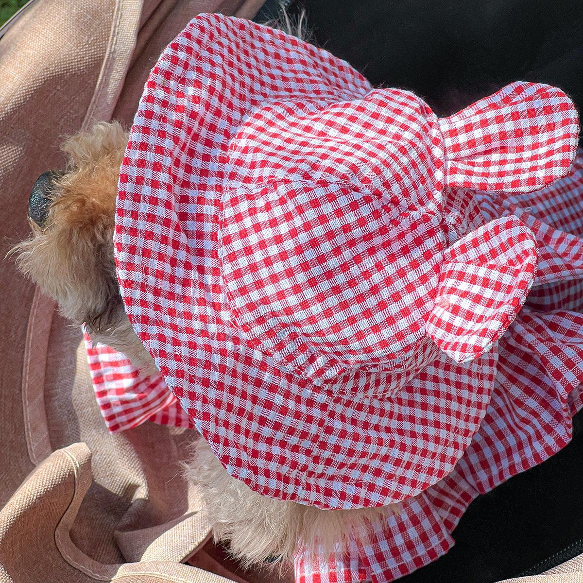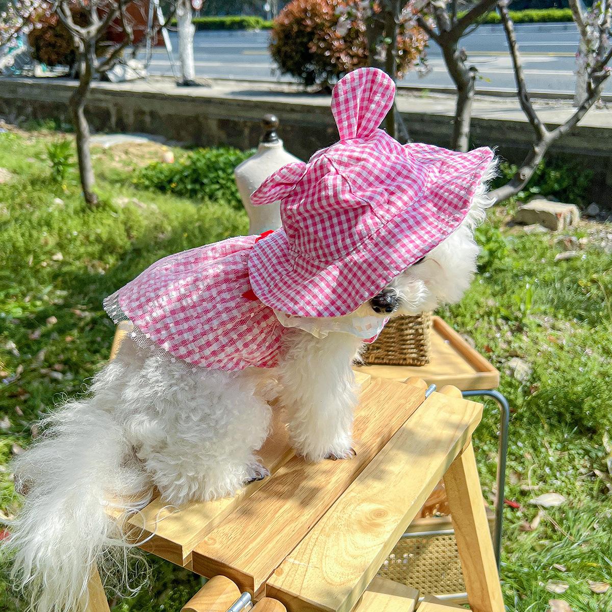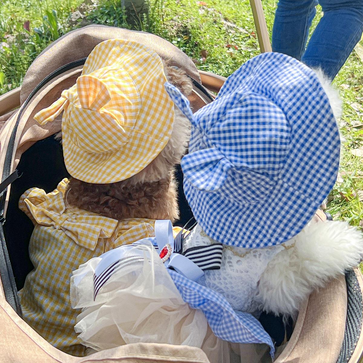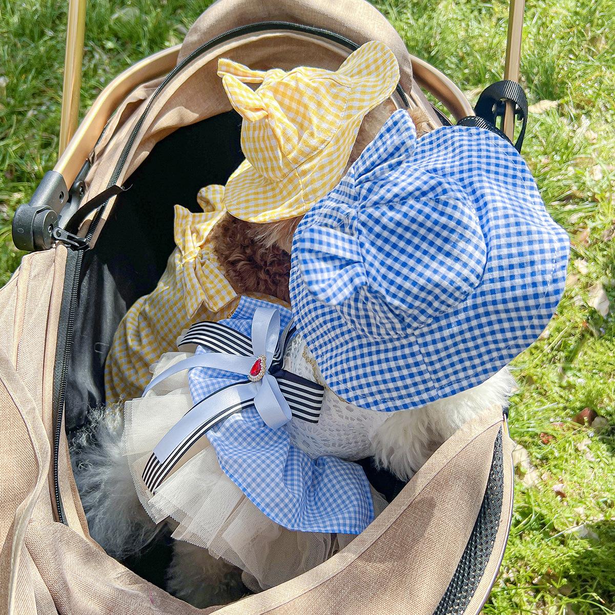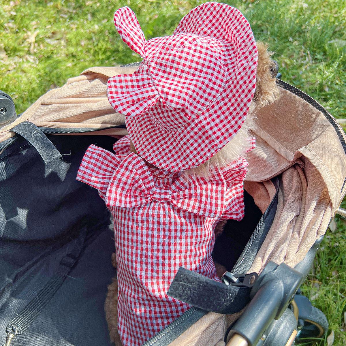 Roupas para animais de estimação Roupas para cães e gatos Roupas para cães pequenos para sair Bonito Moda casual Romântico Bonito Xadrez Chapéu de sol