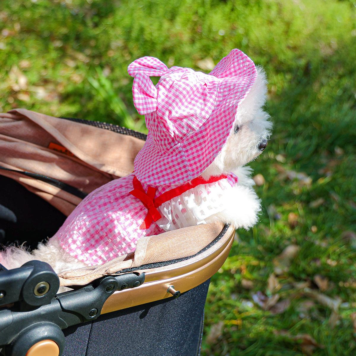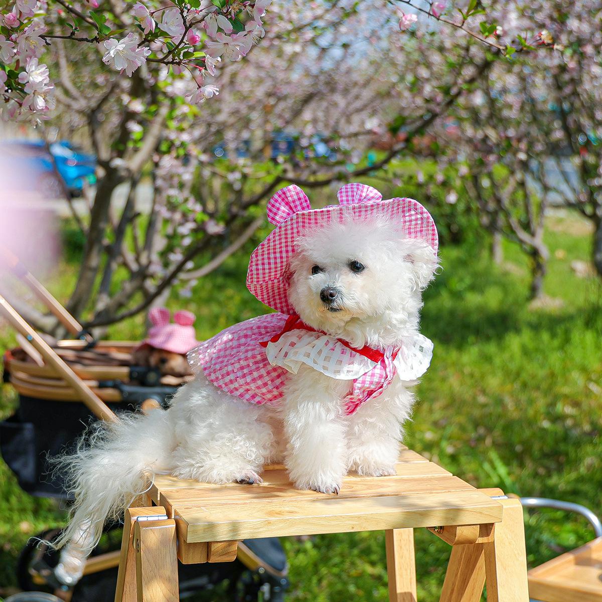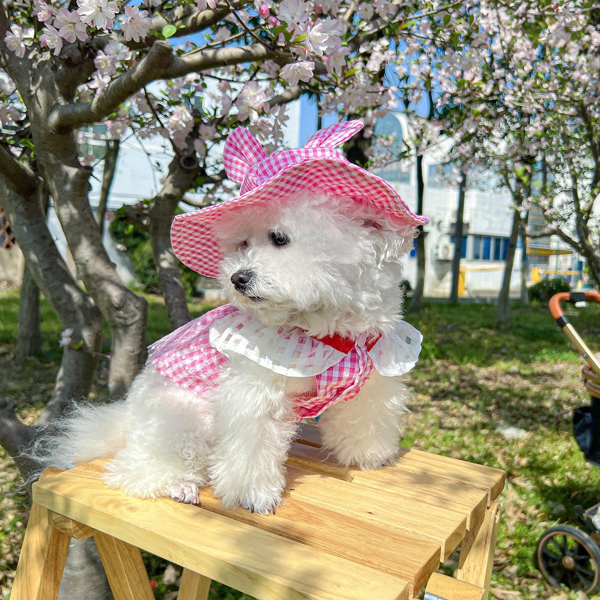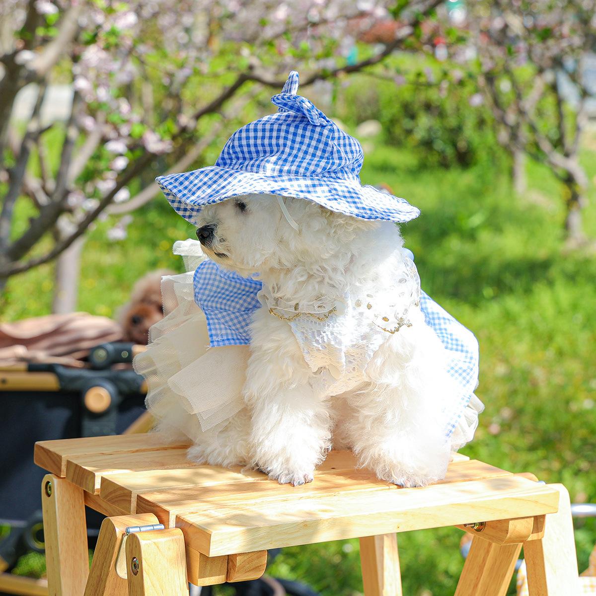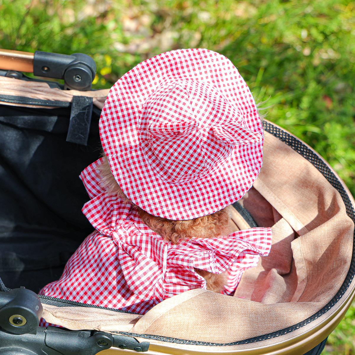 Roupas para animais de estimação Roupas para cães e gatos Roupas para cães pequenos para sair Bonito Moda casual Romântico Bonito Xadrez Chapéu de sol
