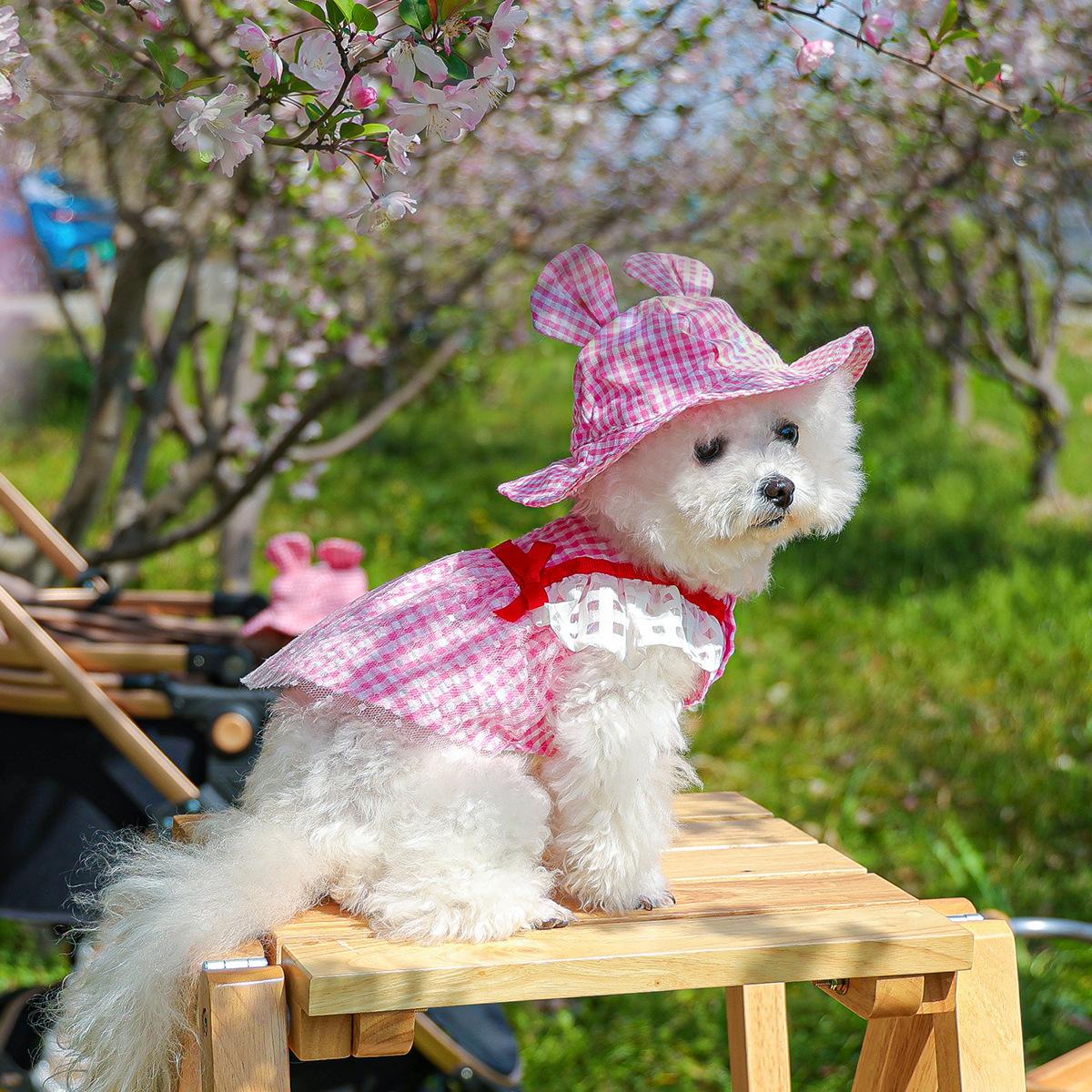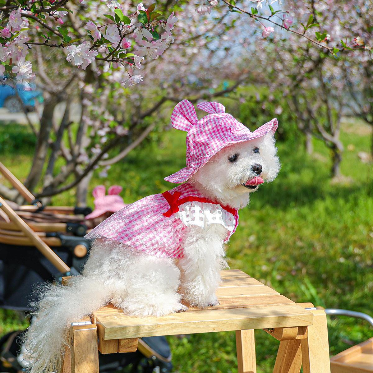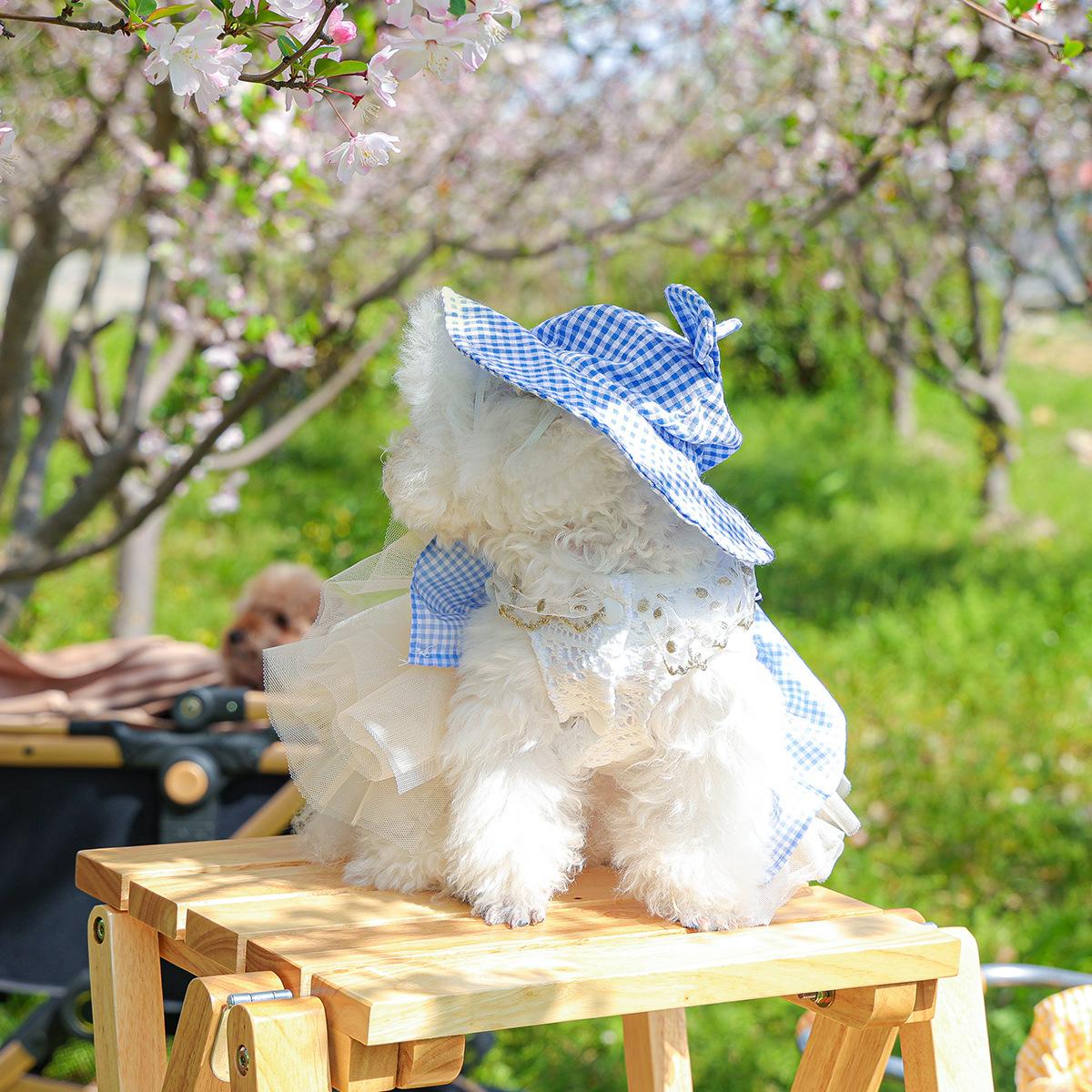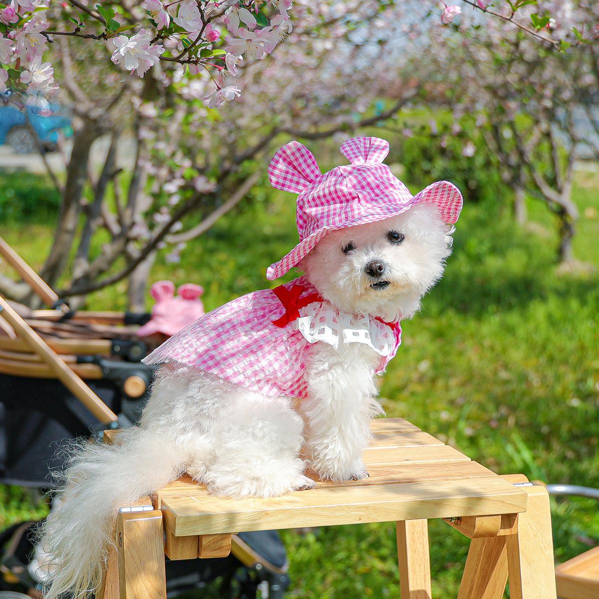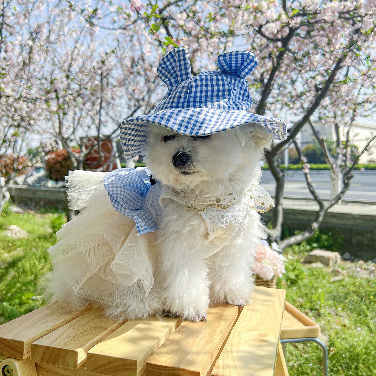 Roupas para animais de estimação Roupas para cães e gatos Roupas para cães pequenos para sair Bonito Moda casual Romântico Bonito Xadrez Chapéu de sol
