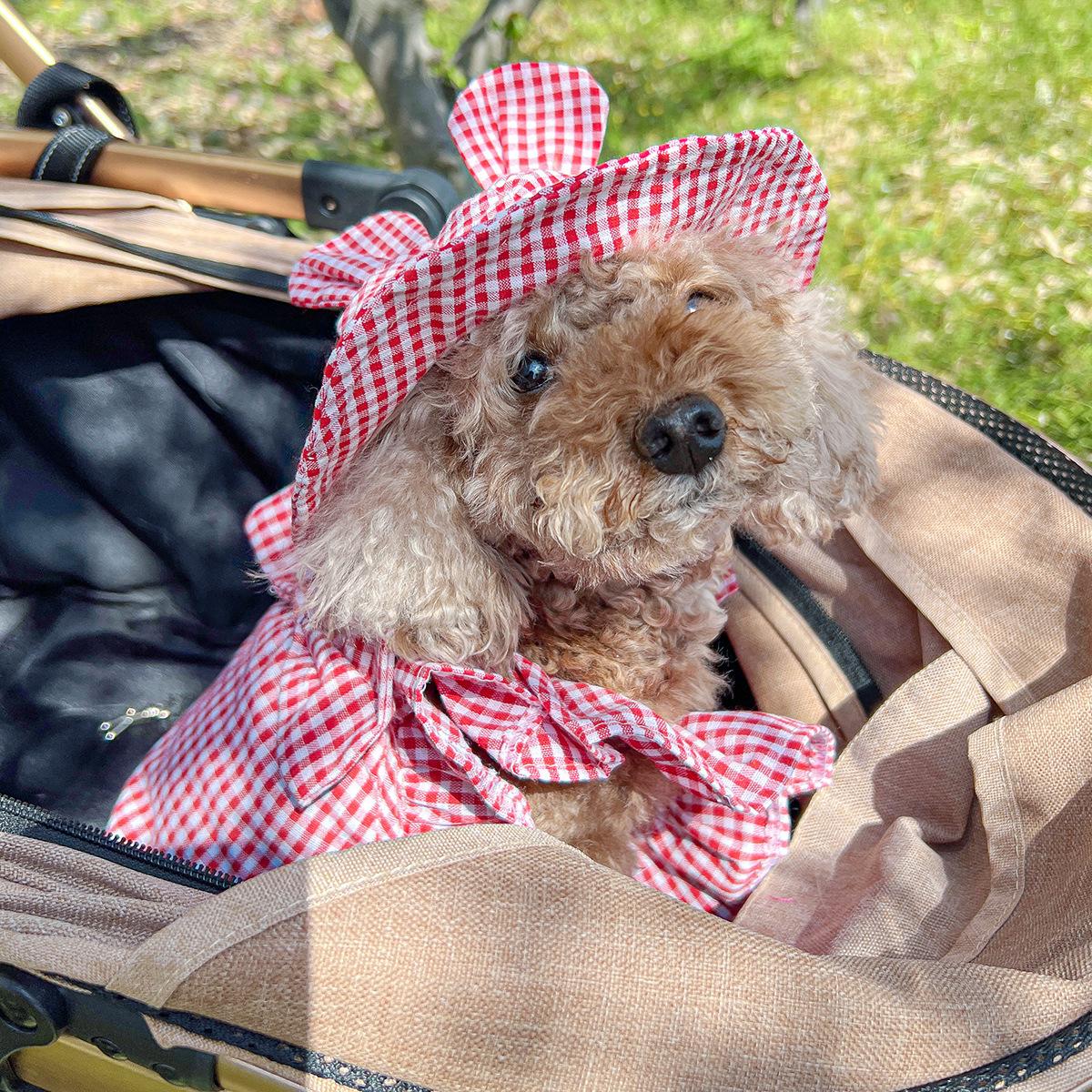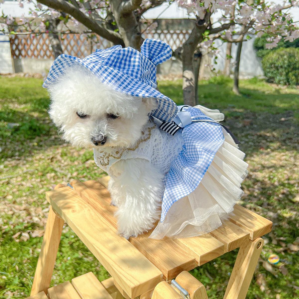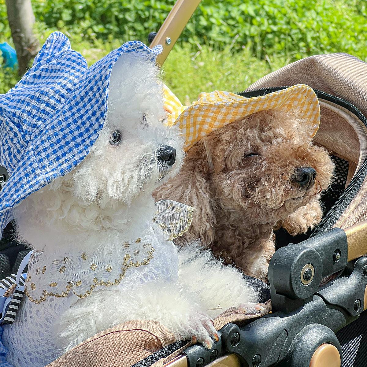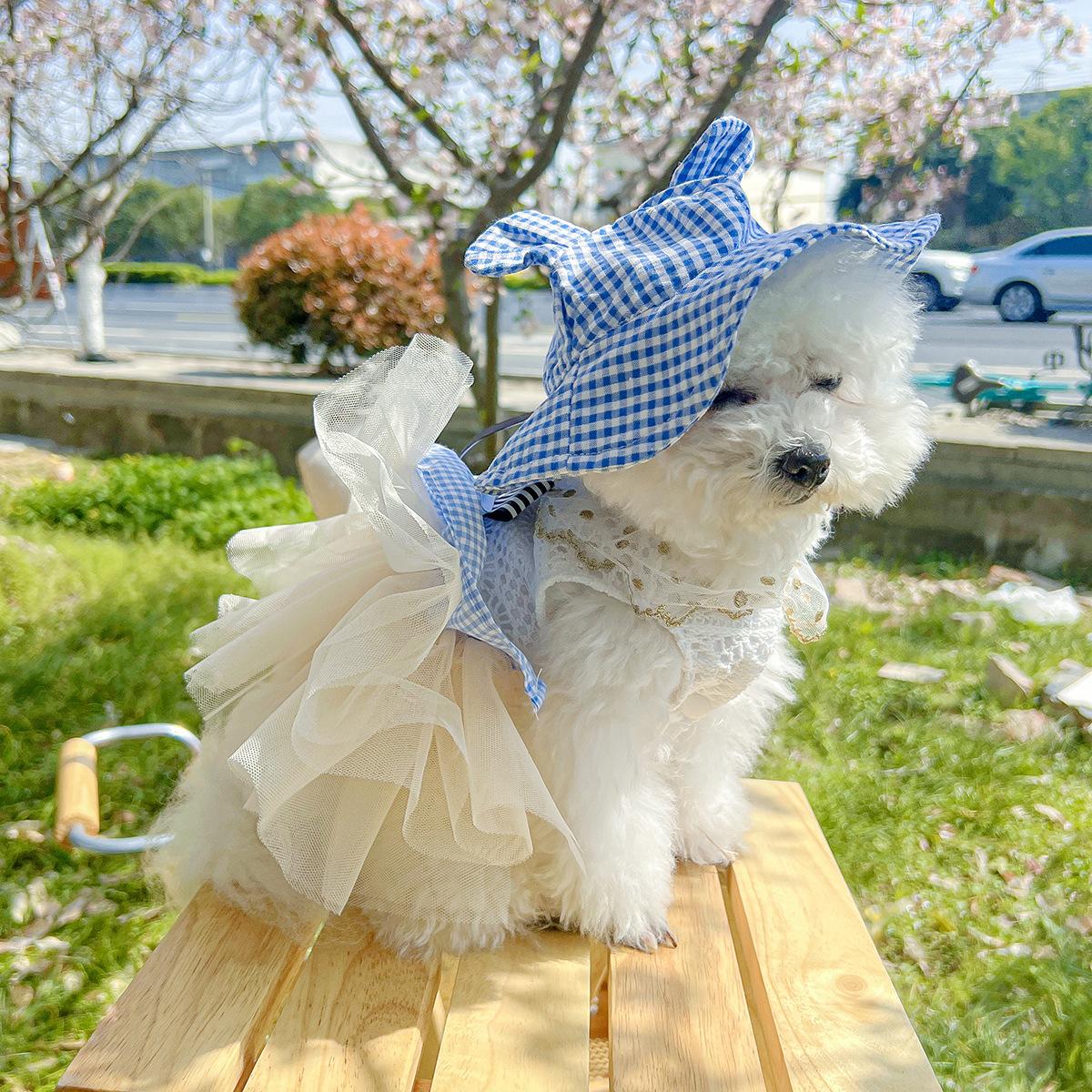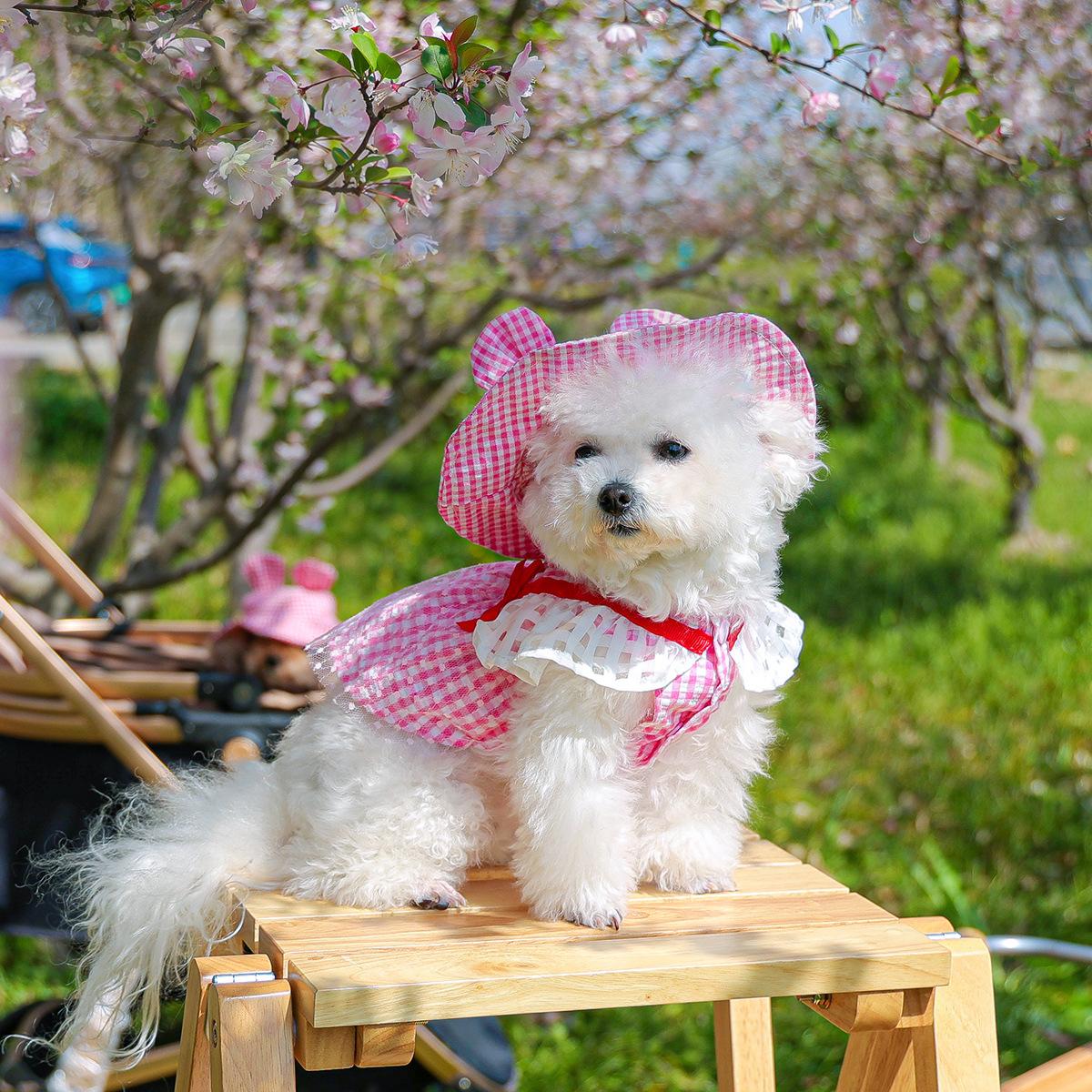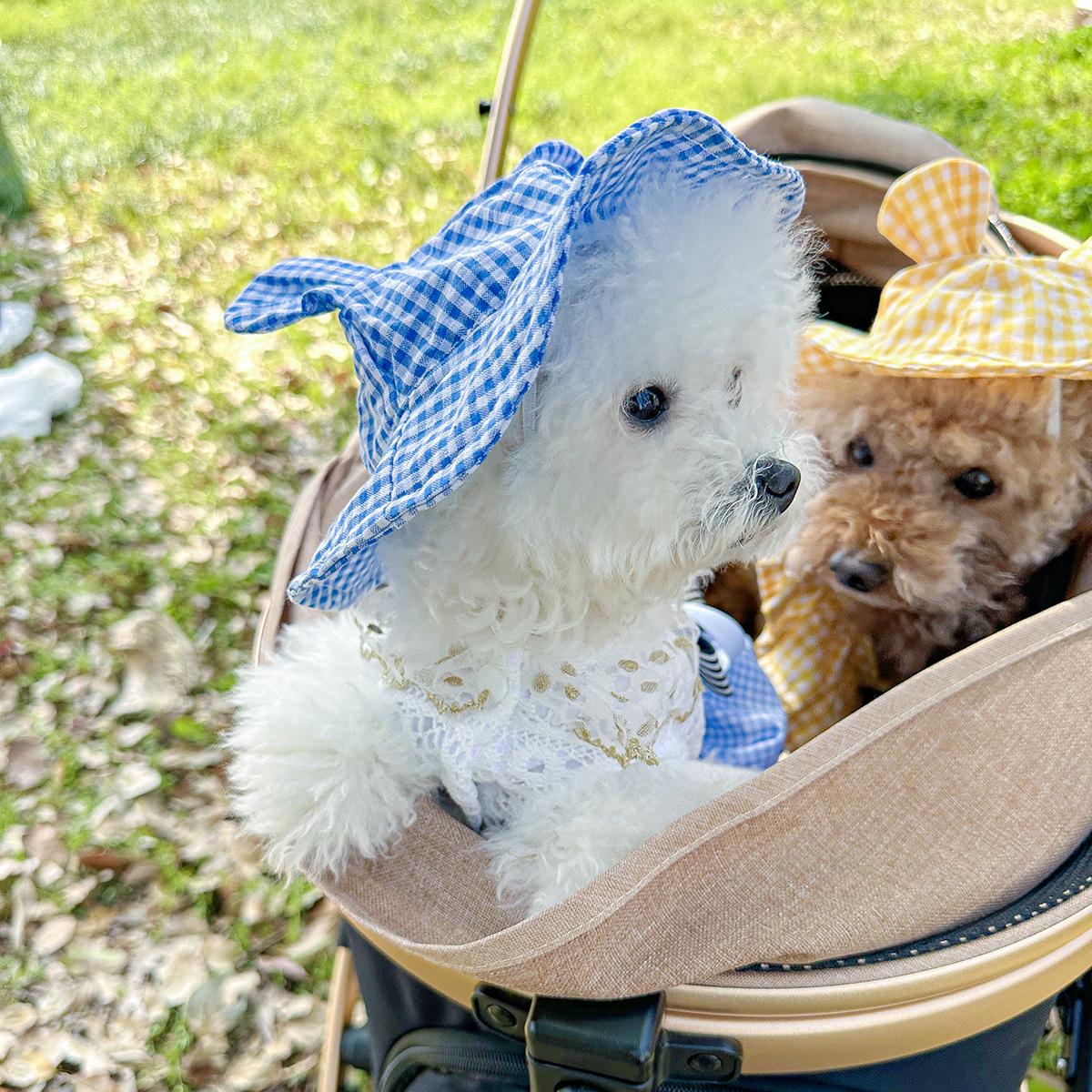 Roupas para animais de estimação Roupas para cães e gatos Roupas para cães pequenos para sair Bonito Moda casual Romântico Bonito Xadrez Chapéu de sol