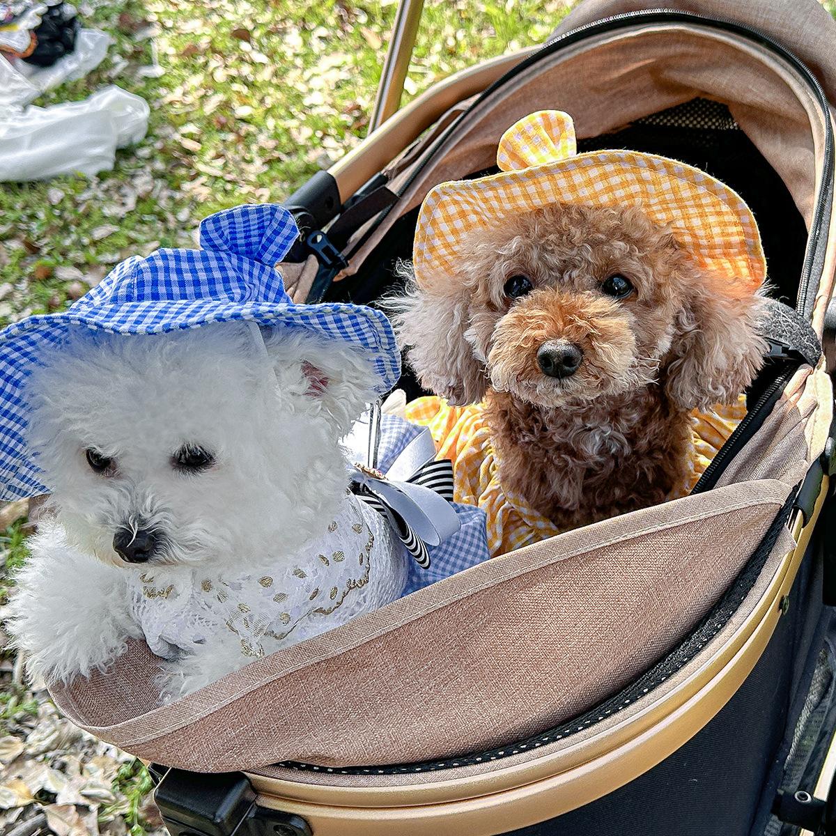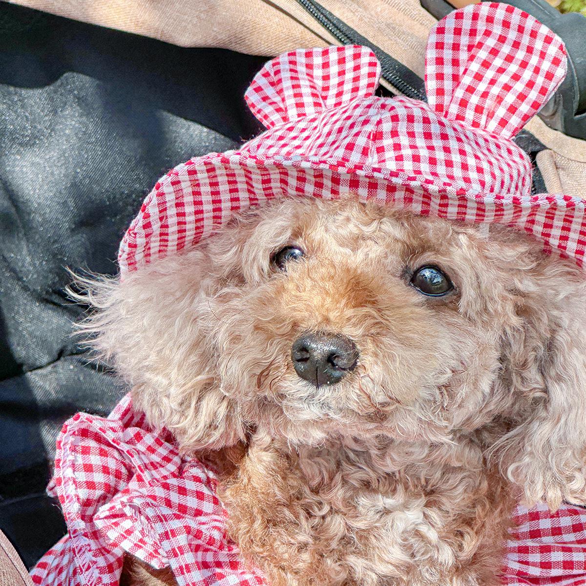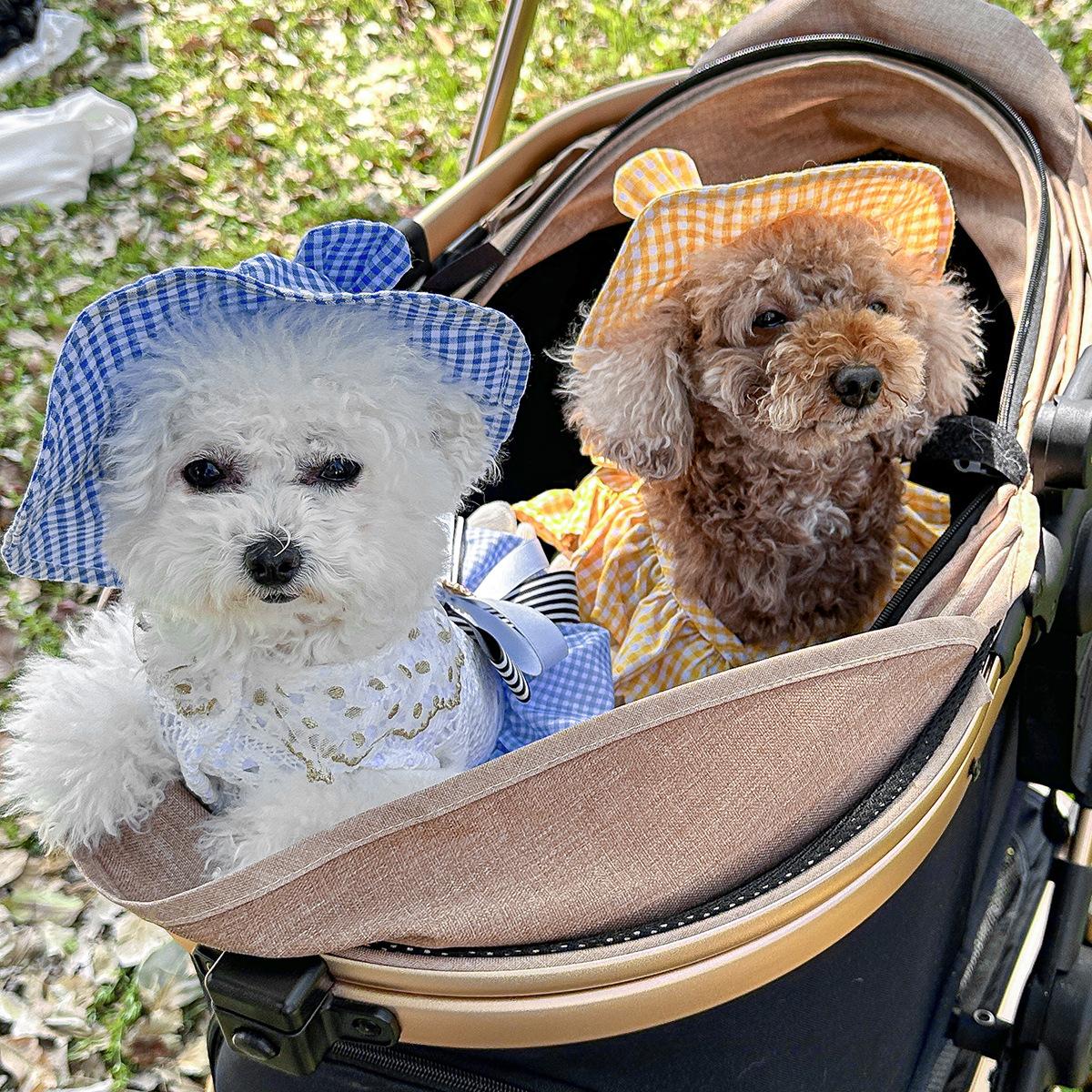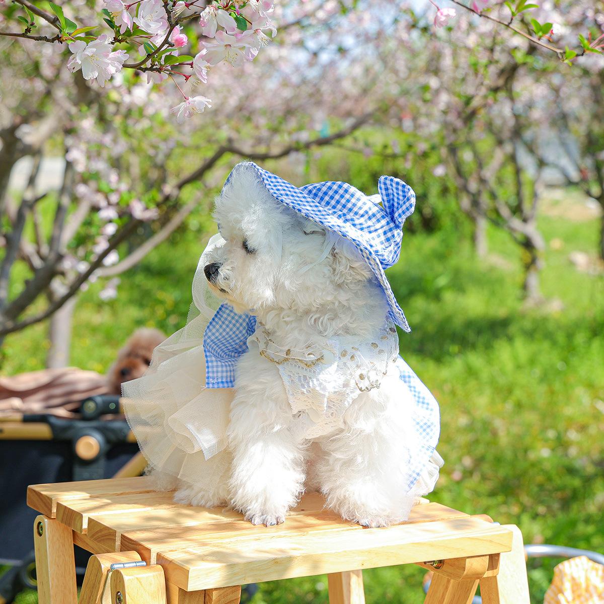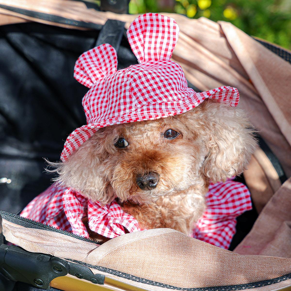 Roupas para animais de estimação Roupas para cães e gatos Roupas para cães pequenos para sair Bonito Moda casual Romântico Bonito Xadrez Chapéu de sol