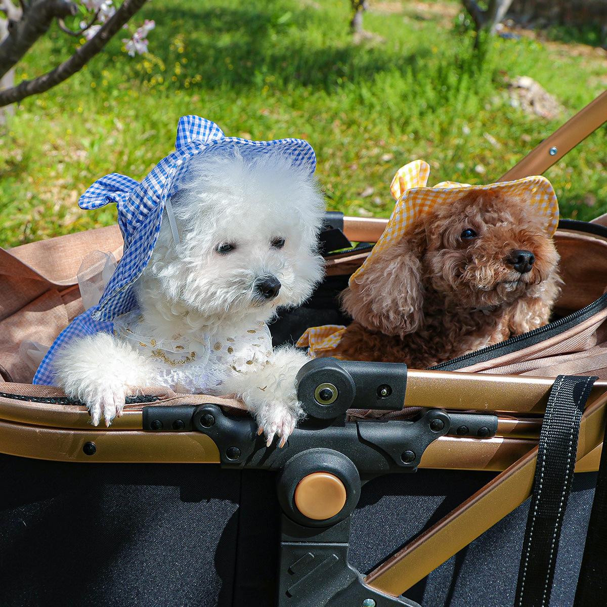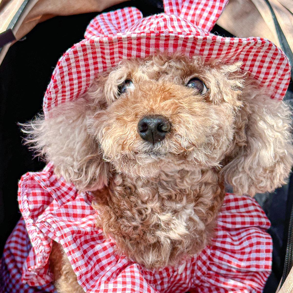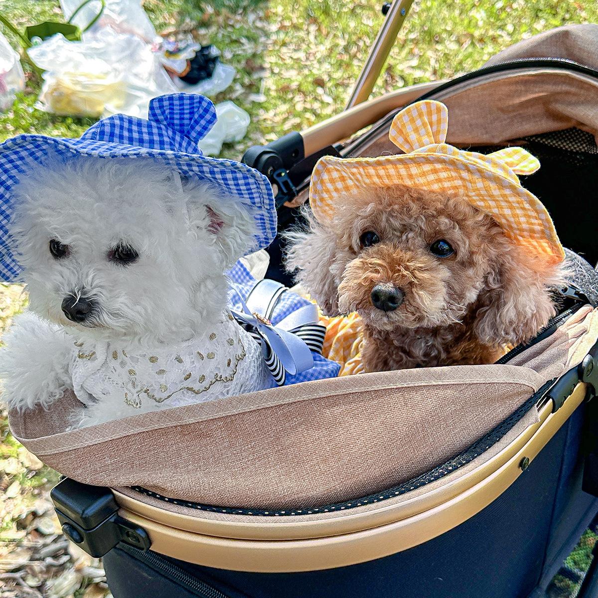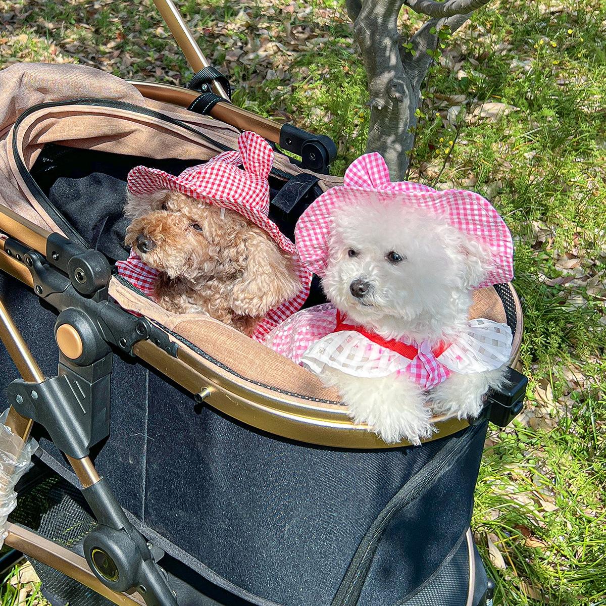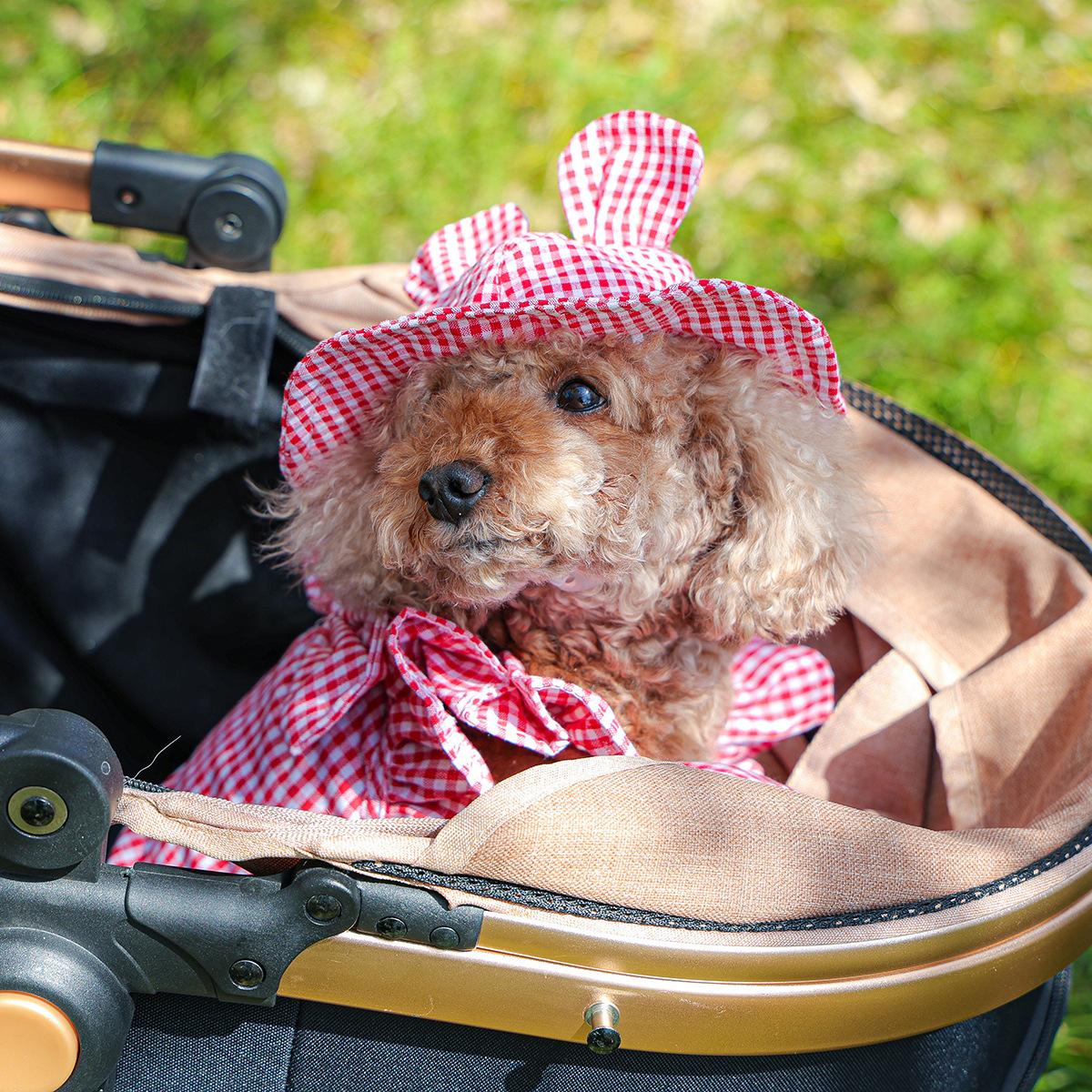 Roupas para animais de estimação Roupas para cães e gatos Roupas para cães pequenos para sair Bonito Moda casual Romântico Bonito Xadrez Chapéu de sol