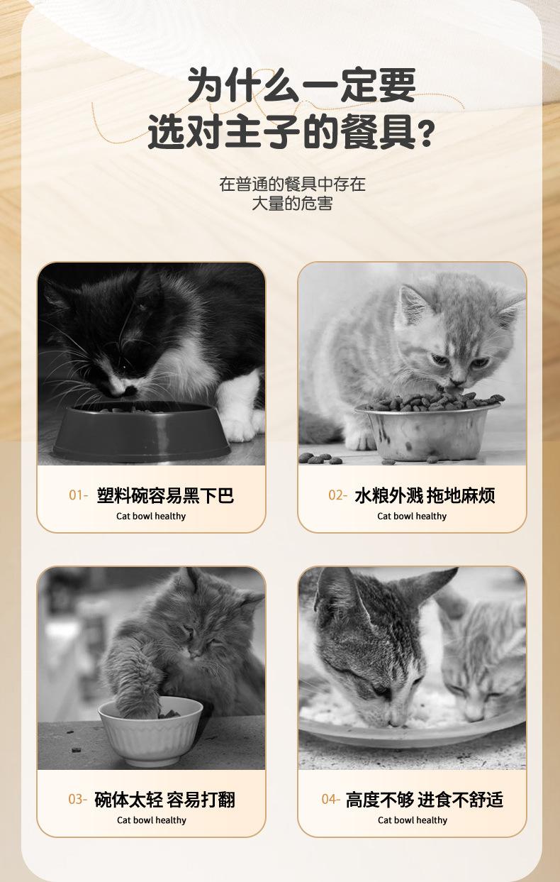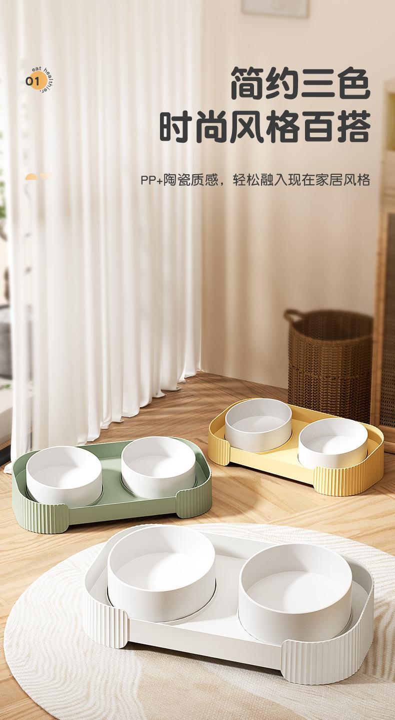 Tigela Simples para Animais de Estimação Transfronteiriça Tigela Dupla para Comida de Gato e Água Tigela de Cerâmica para Gato Antiderrapante Proteção para o Pescoço Tigela para Gato Atacado