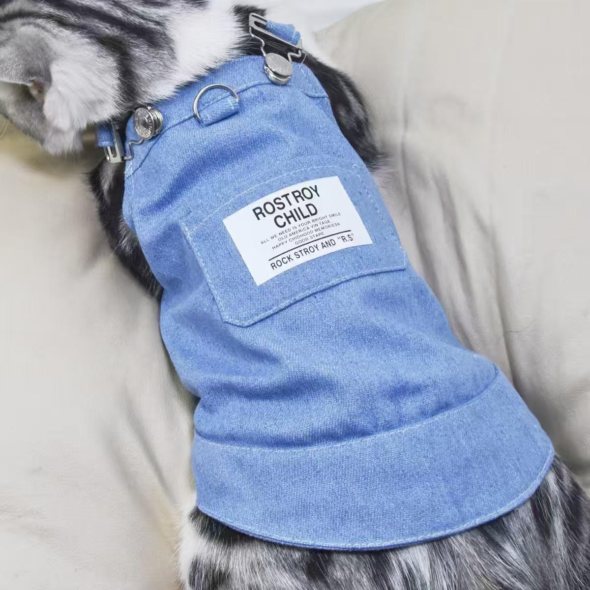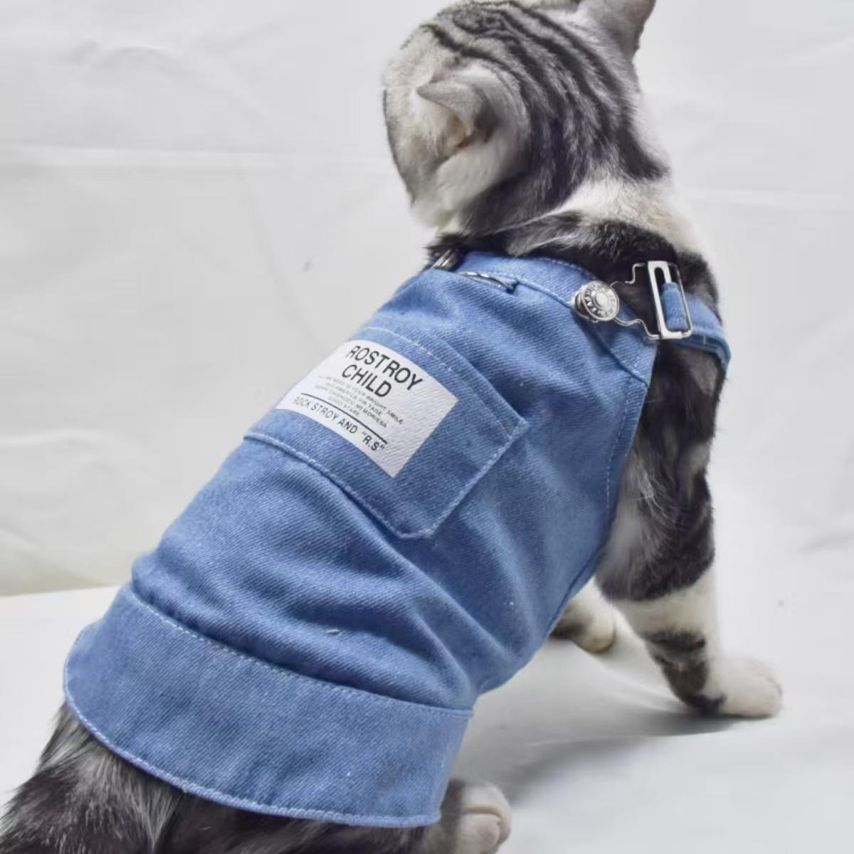 Camisola jeans para cães e gatos, primavera e outono, tração, pequeno, pelúcia, roupas Bixis