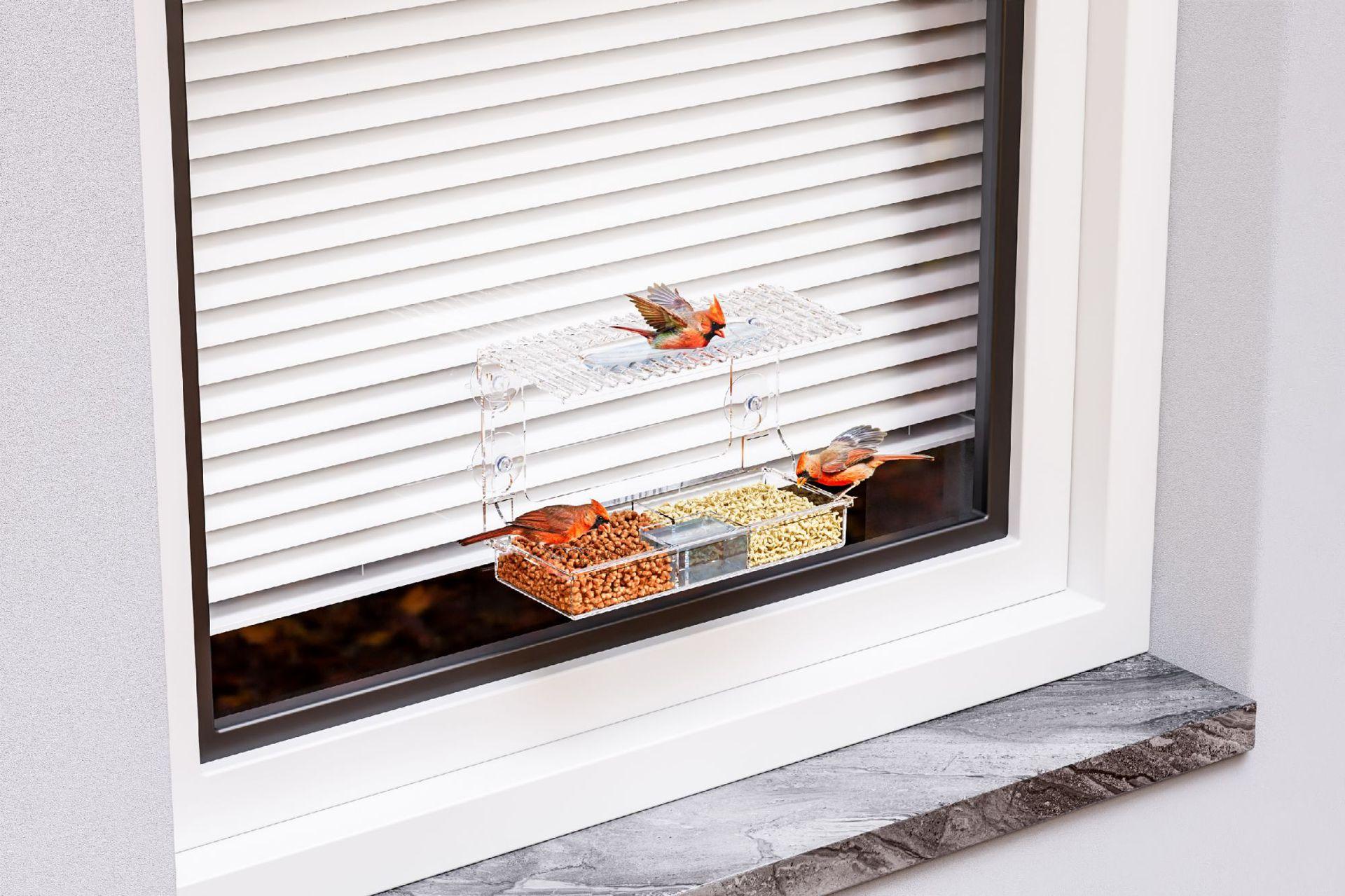 Gaiola Transfronteiriça para Pássaros de Estimação da Amazon, Alimentador de Pássaros de Janela ao Ar Livre, Casa de Pássaros de Plástico Transparente com Ventosa Forte