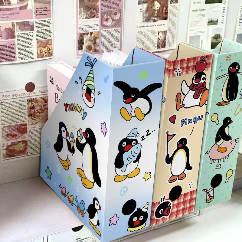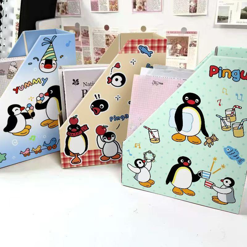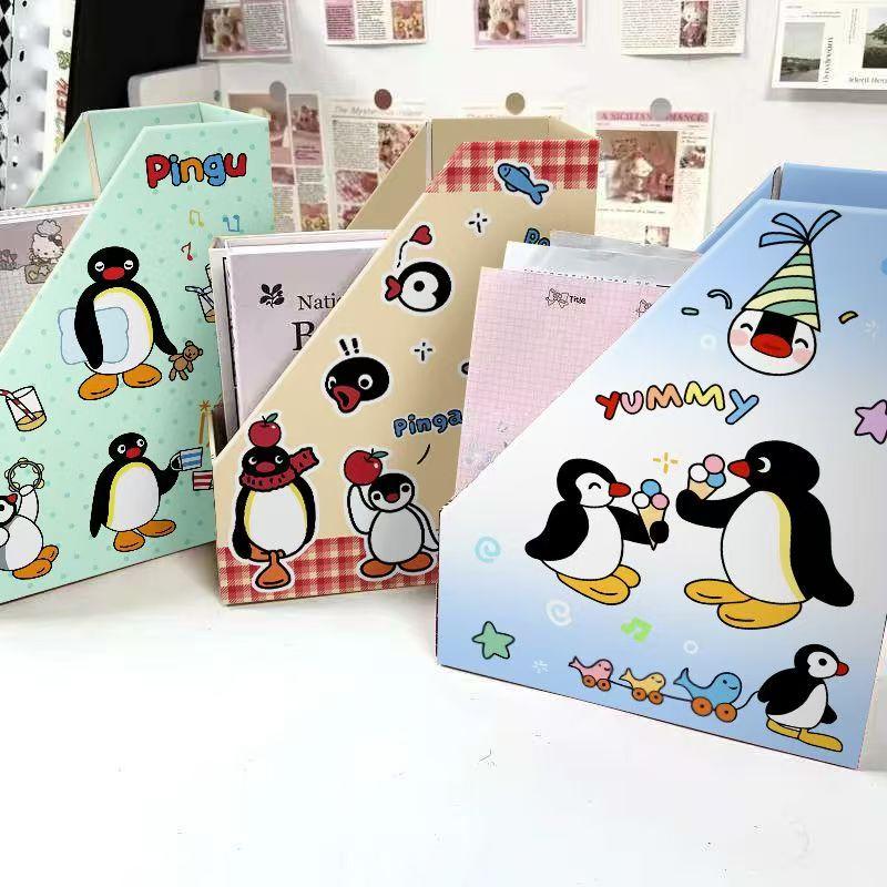 Pingu Série Suporte de Livros Ins Armazenamento Mesa Suporte de Livros de Papel Rack Pasta Desenho Animado Livro Organizador Rack de Exibição