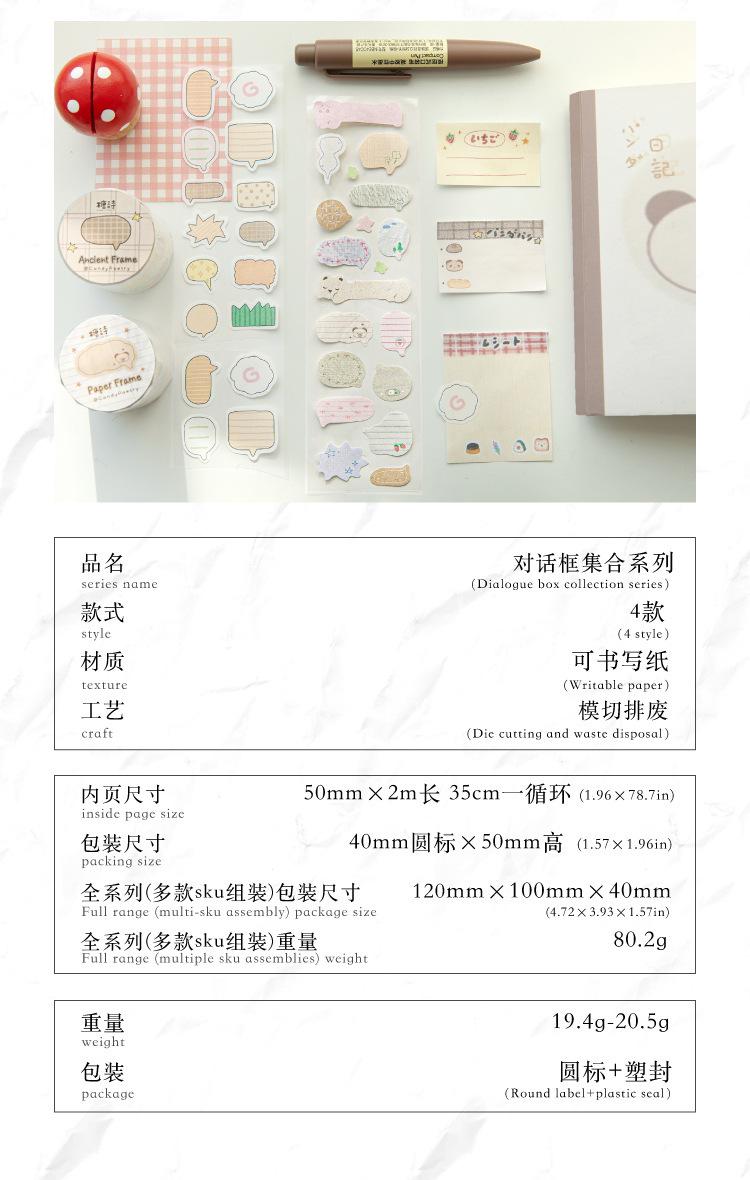 Coleção de caixa de diálogo de fita de recorte de poesia de açúcar, série básica, antiga, antiga, desenho animado, caixa de mão, conta, faça você mesmo, colagem, registro