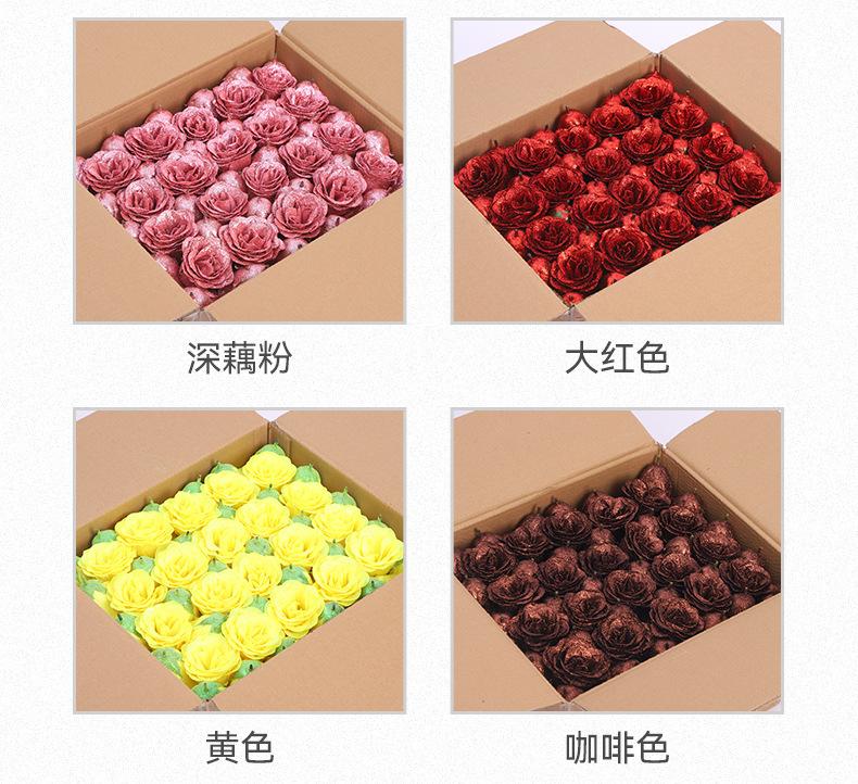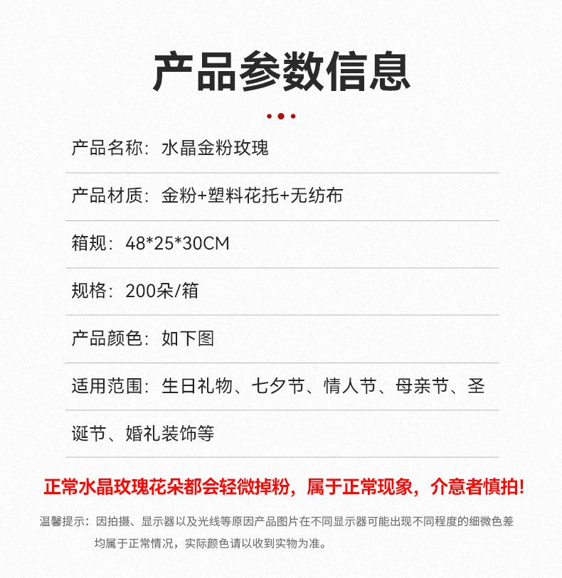 Rosa em pó de cristal dourado, feita à mão, com tamanho de flor sujeito a erros. O pó dourado pode cair, não é um problema de qualidade. Por favor, tenha cuidado se você se importar. Cooperação honesta, por favor, não perturbe se você não for sincero!