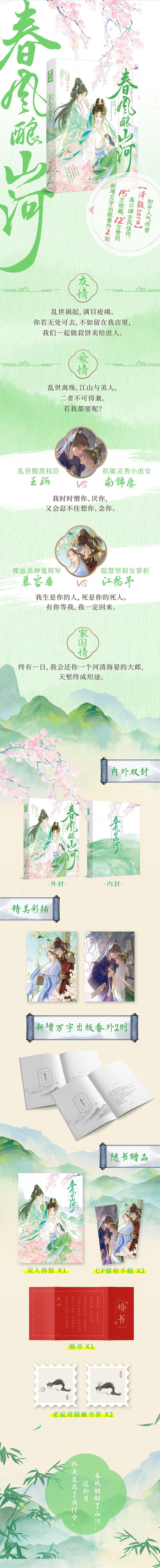 A história é dividida em dois volumes, "A Brisa da Primavera Prepara Montanhas e Rios" e "O Abismo Profundo é Infinito e Verde", que contam respectivamente as histórias de Nan Jinping e Jiang Chouyu buscando uma saída em tempos turbulentos. Para não ser vendida a um mestre nobre como concubina por sua madrasta, Nan Jinping tentou todos os meios para encontrar uma saída para si mesma, mas provocou Wang Yu, o chefe da família Wang, o chefe da nobreza. Aconteceu que Wang Yu foi assassinado. Nan Jinping atraiu o assassino e resgatou Wang Yu, buscando asilo com ele. Após experimentar a guerra, Wang Yu foi capturado. Nan Jinping sacrificou sua vida para ir à cidade dos Hu como uma informante, e cantou a mesma melodia com Wang Yu para confundir com sucesso os Hu e resgatar Wang Yu. Os dois confiaram um ao outro com vida e morte em tempos turbulentos, e Nan Jinping teve a oportunidade de exibir seus talentos e ambições. Jiang Chouyu foi divorciada por seu marido e intimidada por sua nova esposa. Ela argumentou com razão e não permitiu que eles se aproveitassem dela. O passado ficou para trás, ela volta sua atenção para o presente, usa o conhecimento médico que aprendeu para salvar o general Murong Chui e trabalha duro para administrar sua própria padaria. Quando a guerra eclode, ela aprimora a receita da padaria, faz bolos de panela e bolos de gergelim e os envia para a linha de frente para fornecer rações militares. Eventualmente, ela recebe o título de senhora de um condado e tem sua própria terra. As duas mulheres lendárias ajudam-se mutuamente em tempos turbulentos e lutam juntas contra a injustiça e a agitação do mundo.
